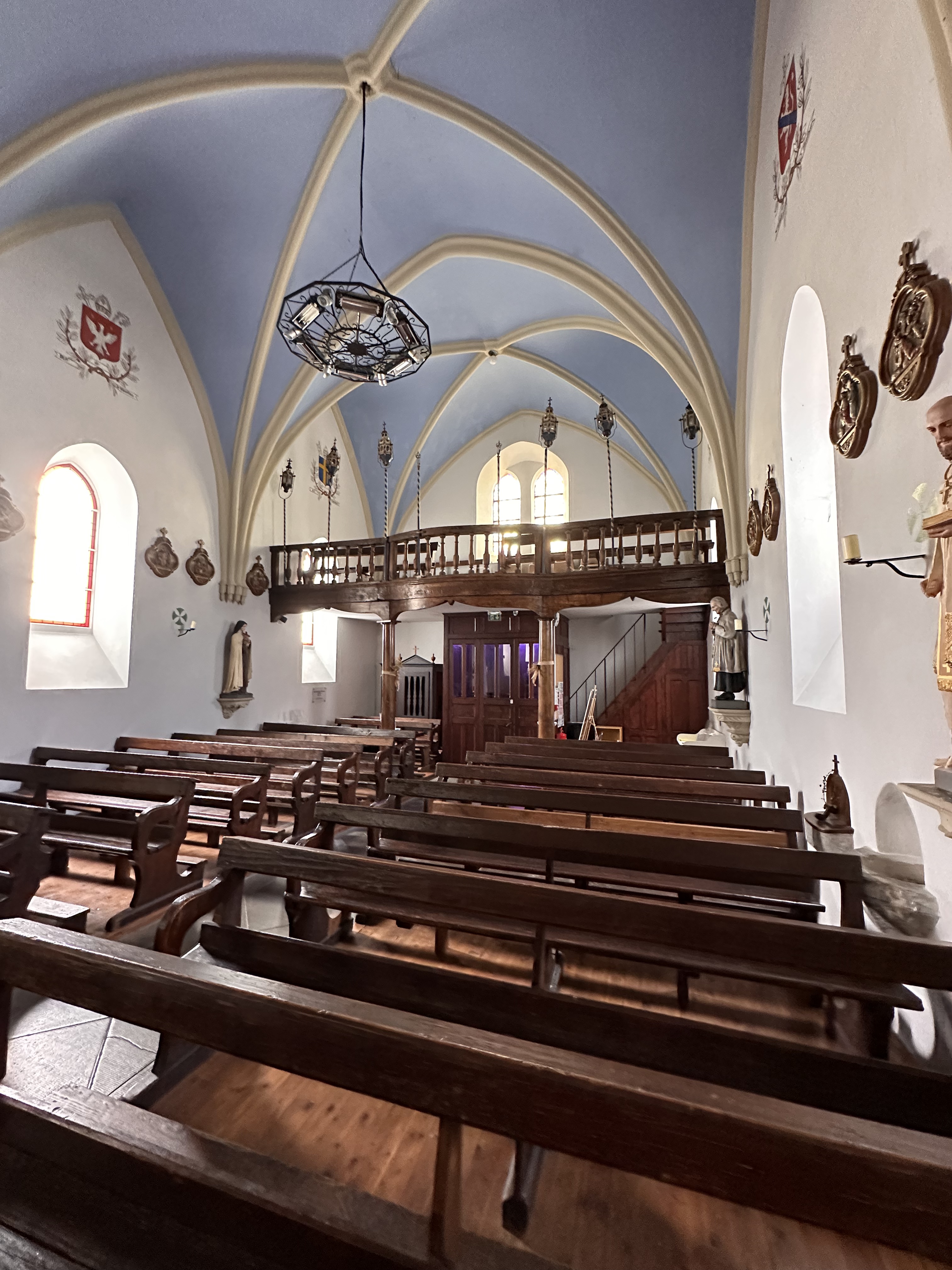 Petite église en parfait état, pleine de charme et propice au recueillement ,vue magistrale en sortant sur le lac....