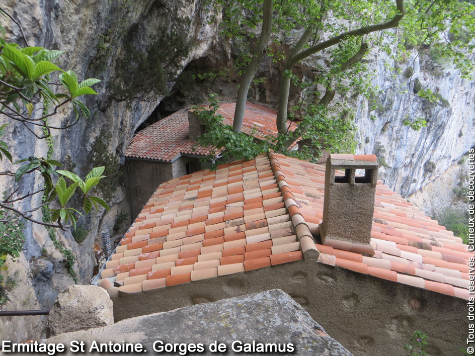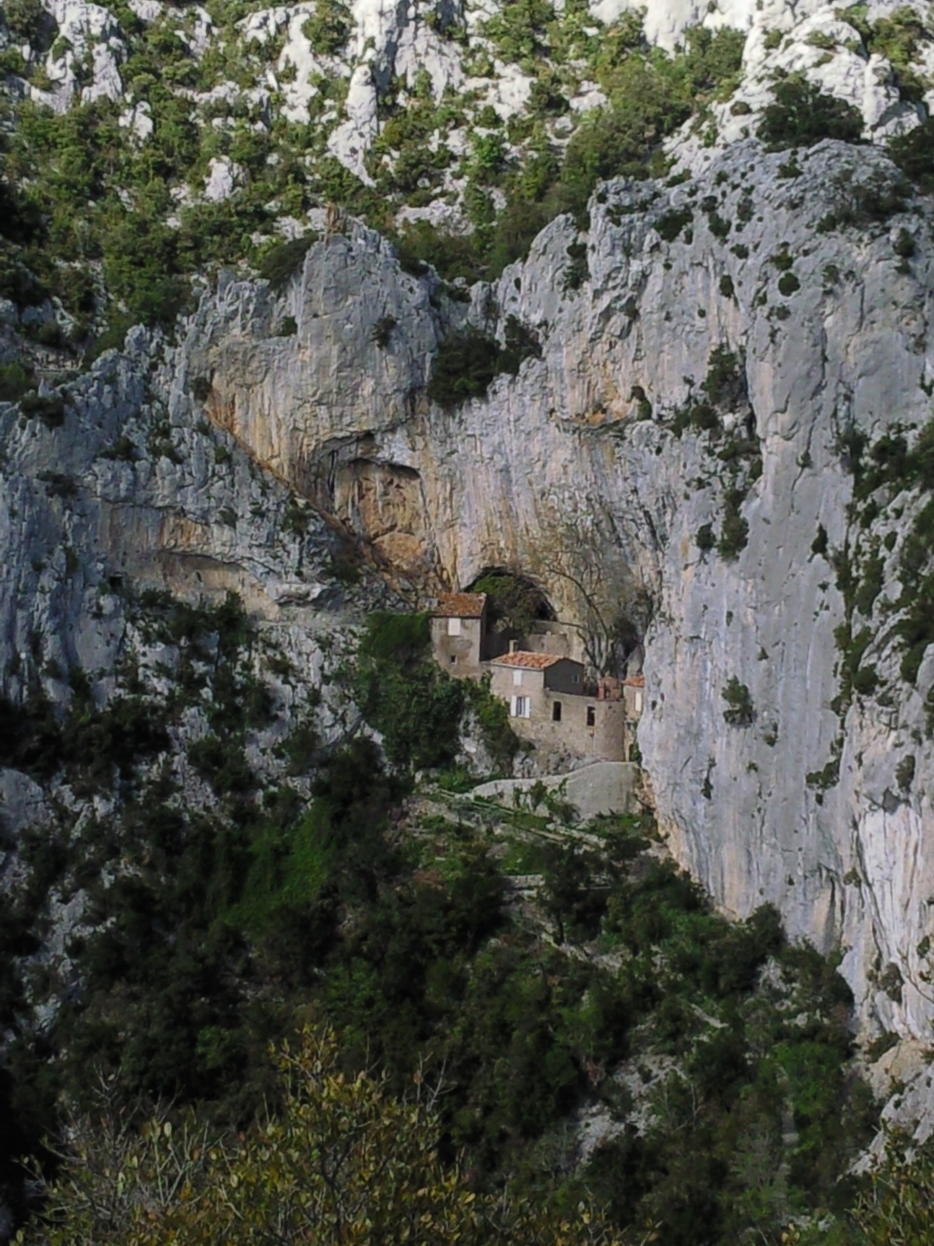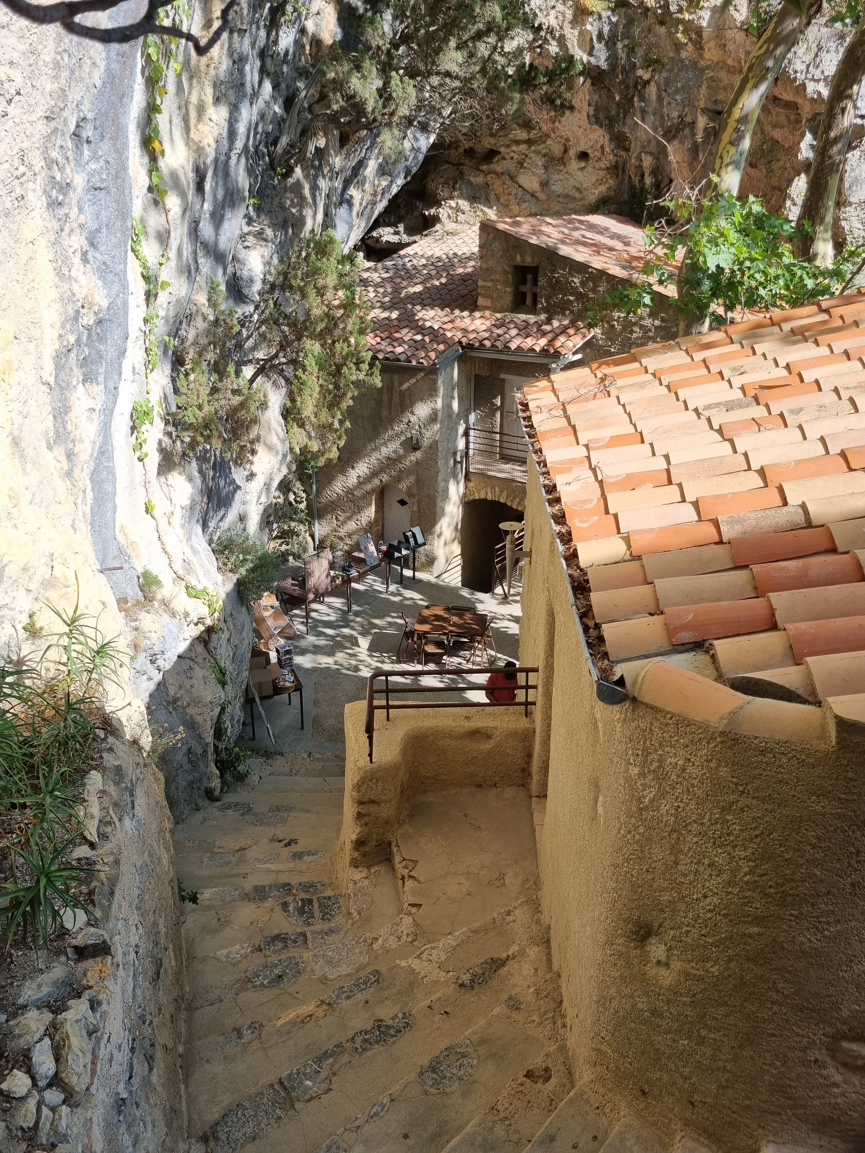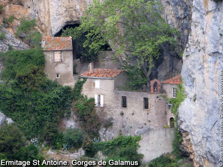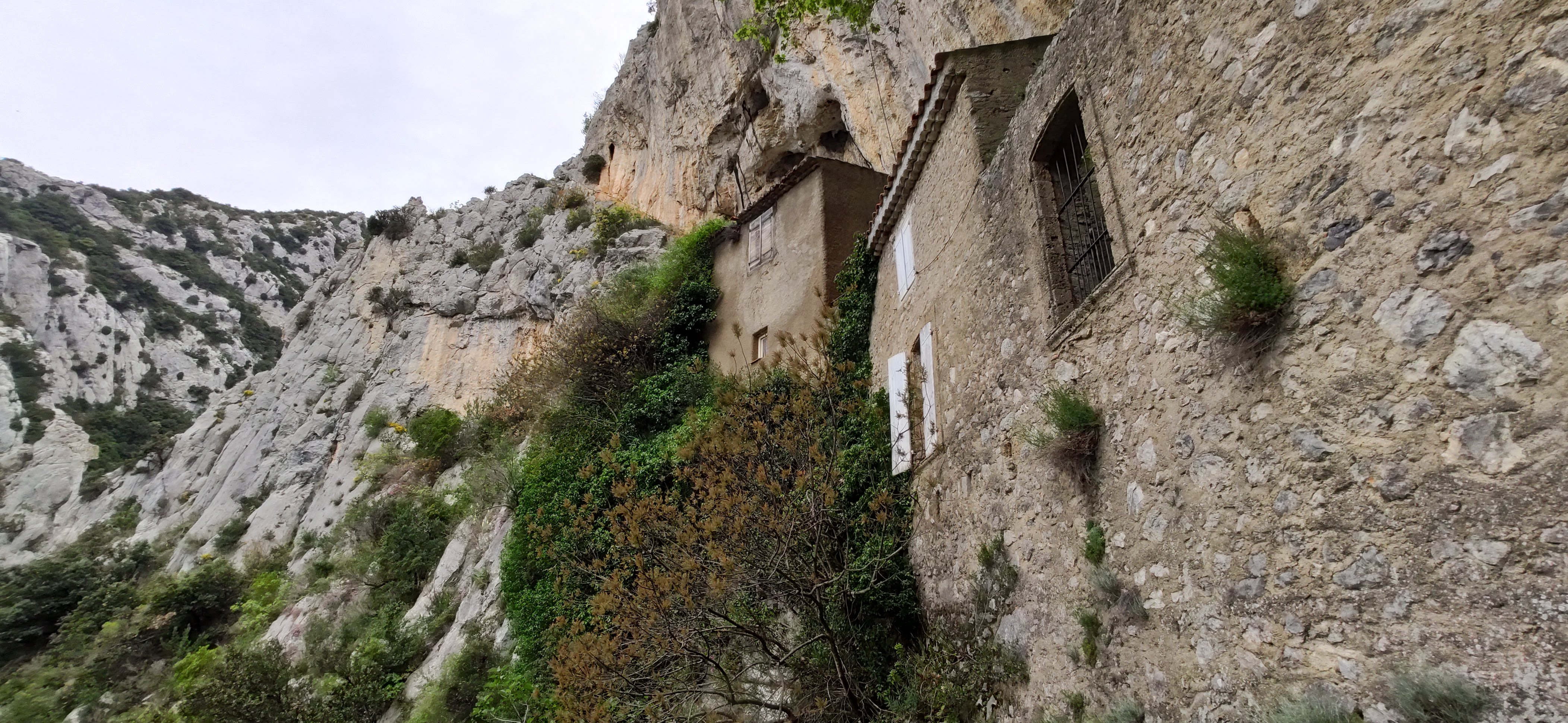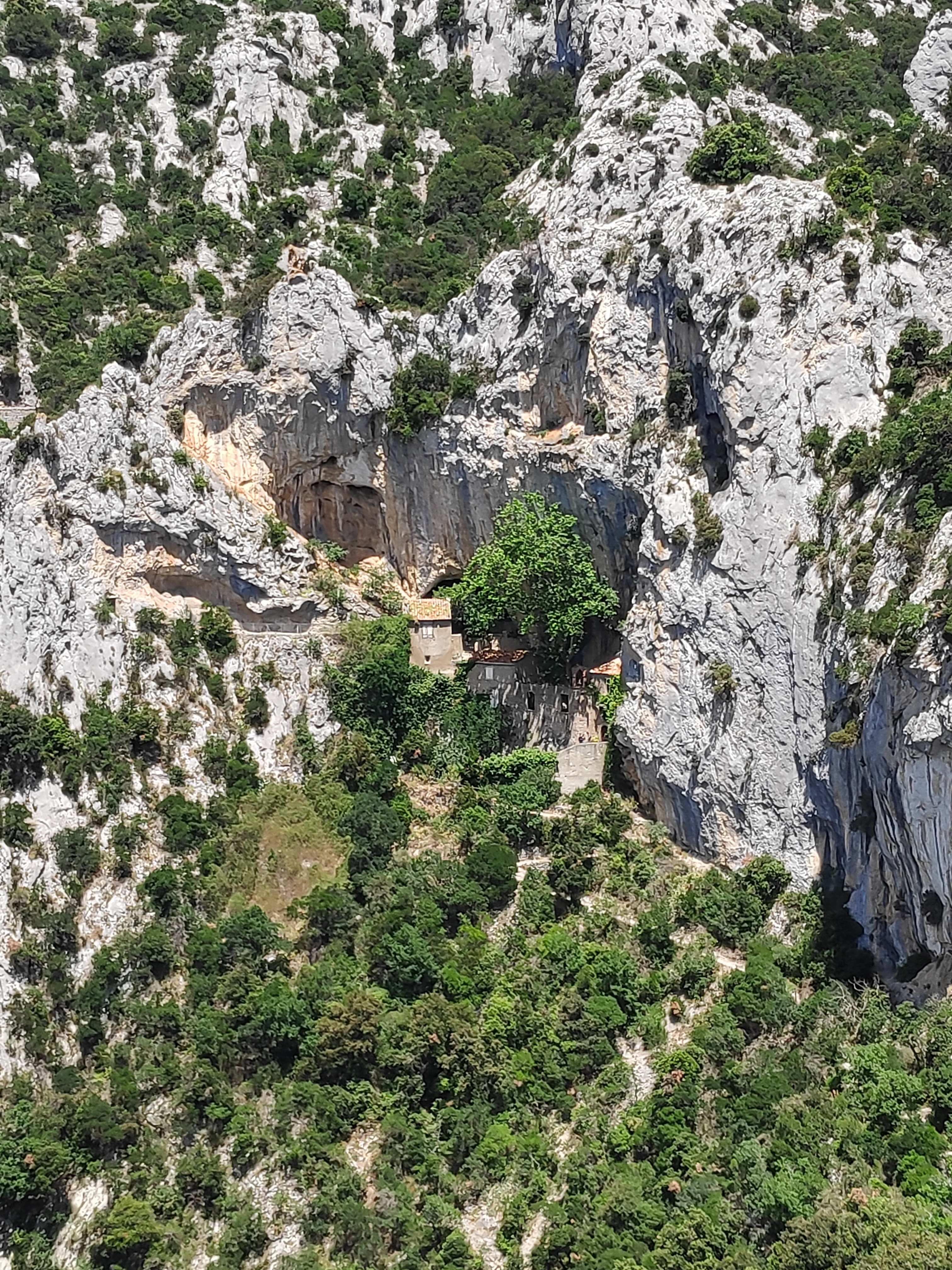 Magnifique l’ermitage : une petite église dans la grotte et des petites maisons . Et aussi la vue de la gorge