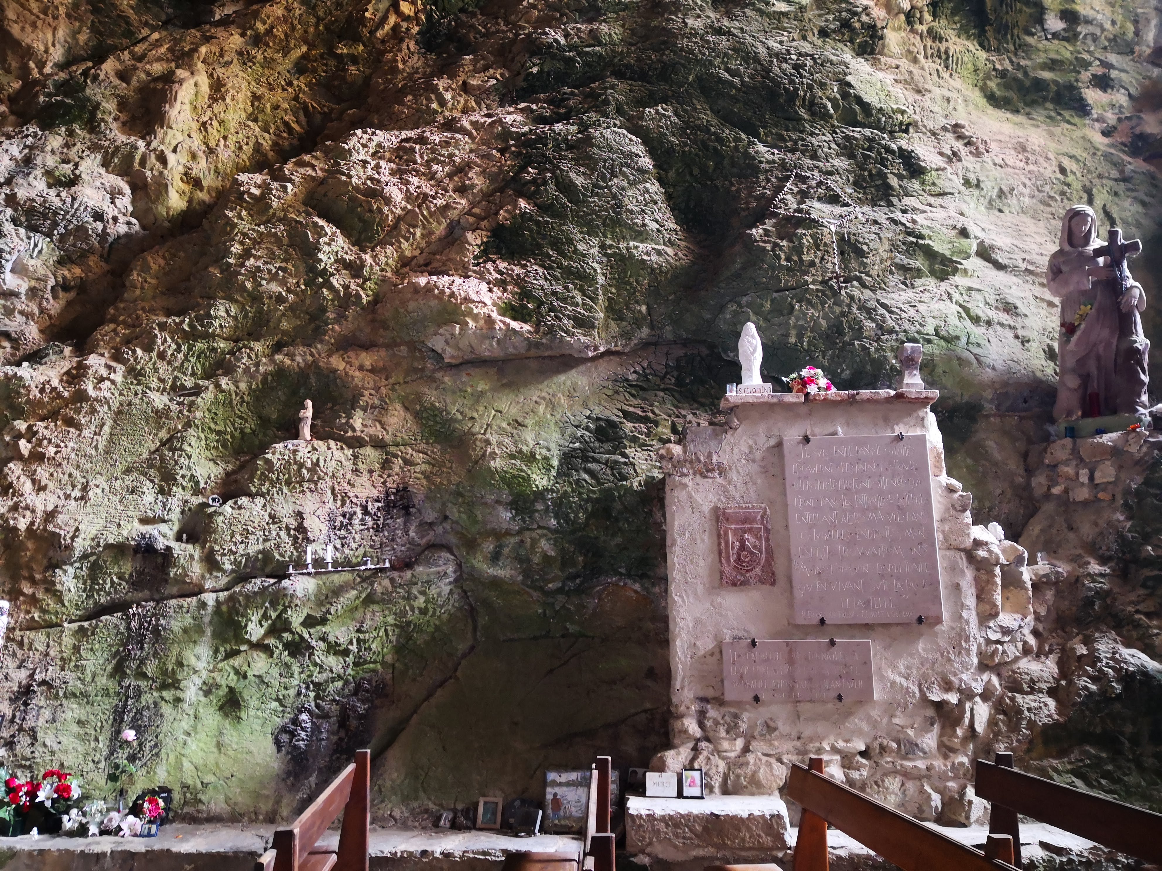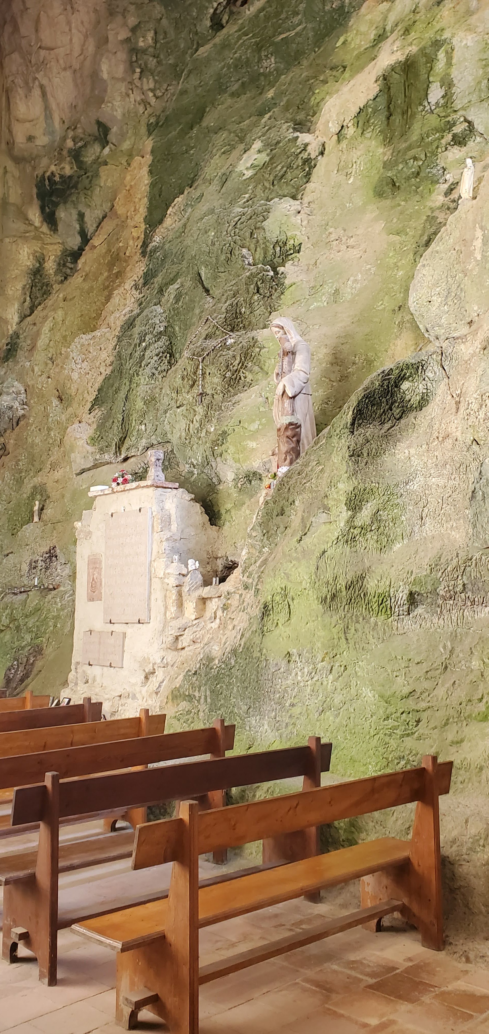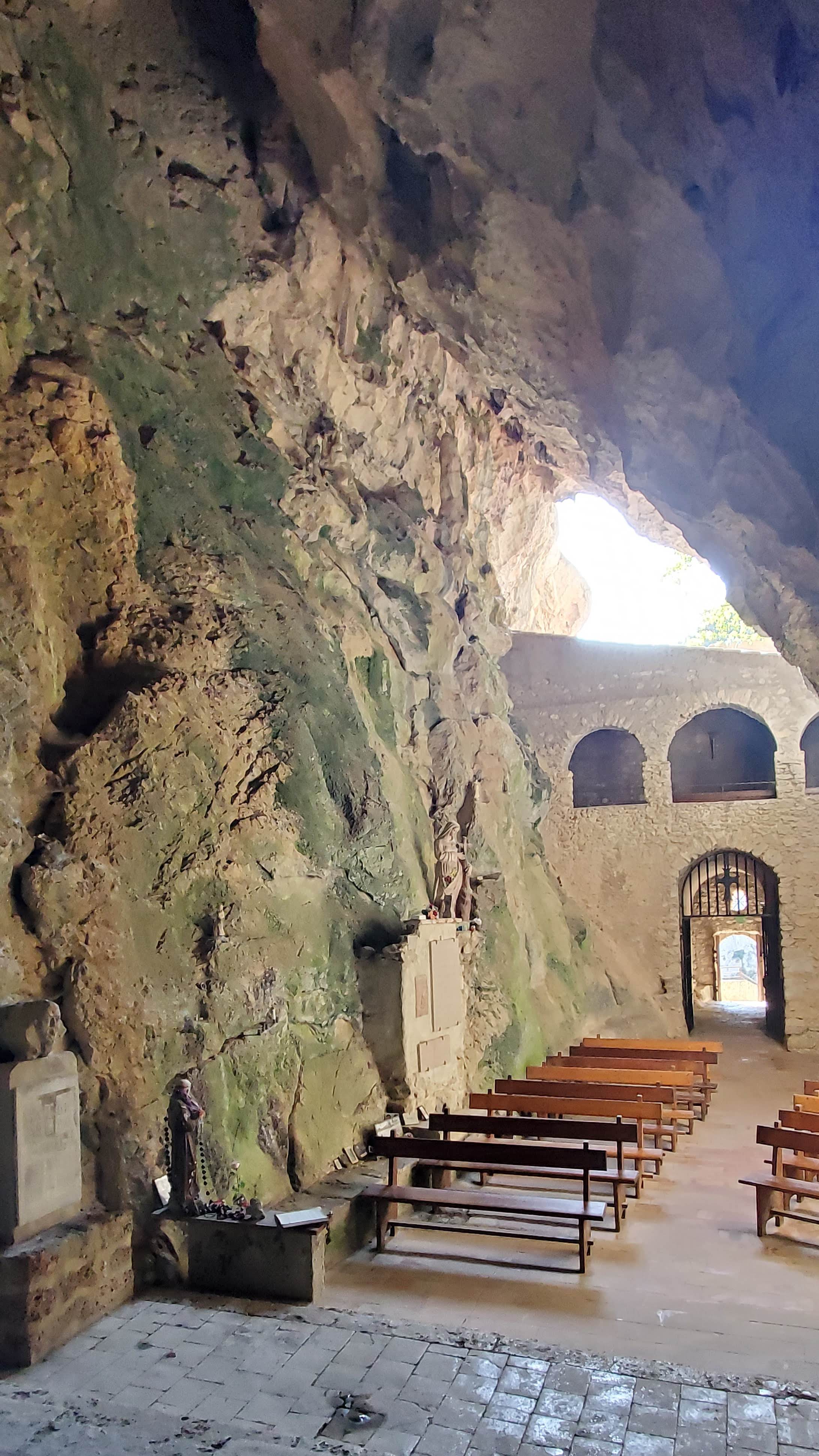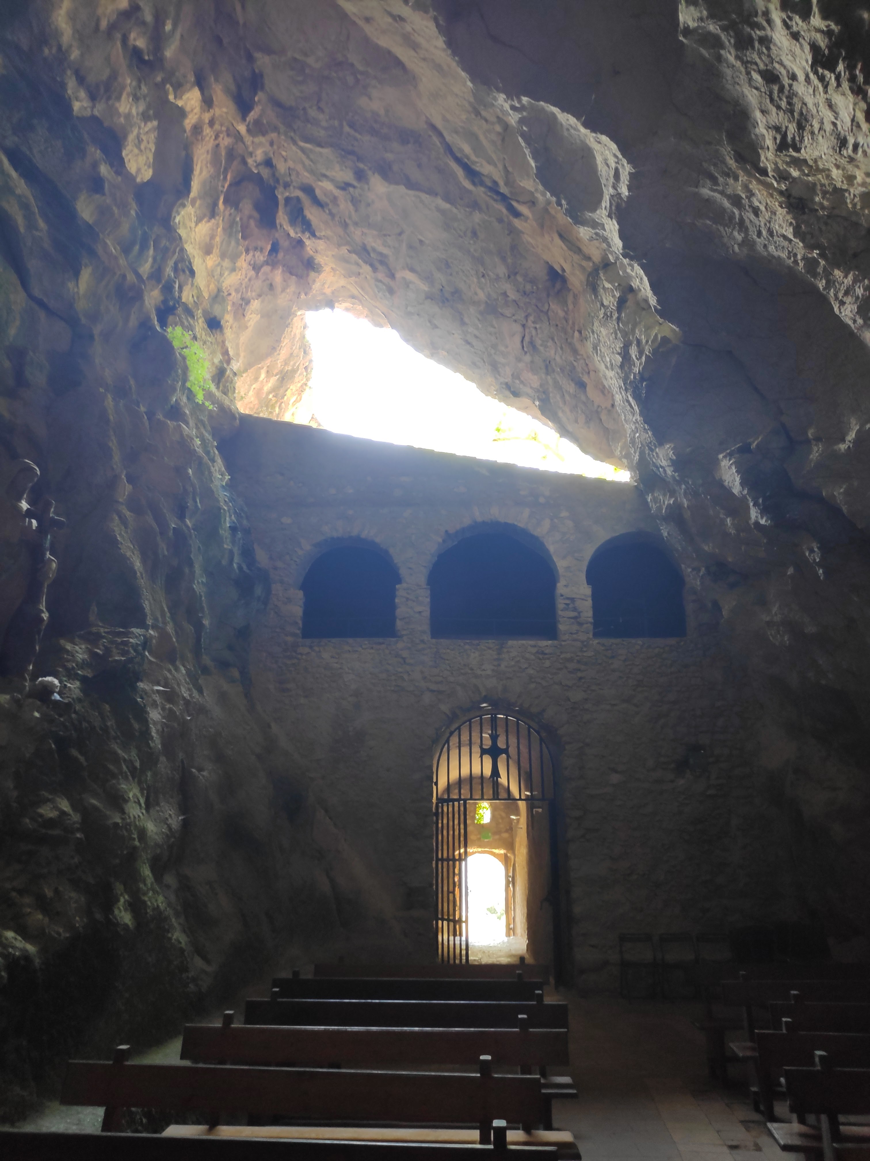 Une petite église au fond d'une grotte accrochée à la falaise. Il devait être têtu et téméraire, l'ermite ! Magnifique endroit qui se mérite.