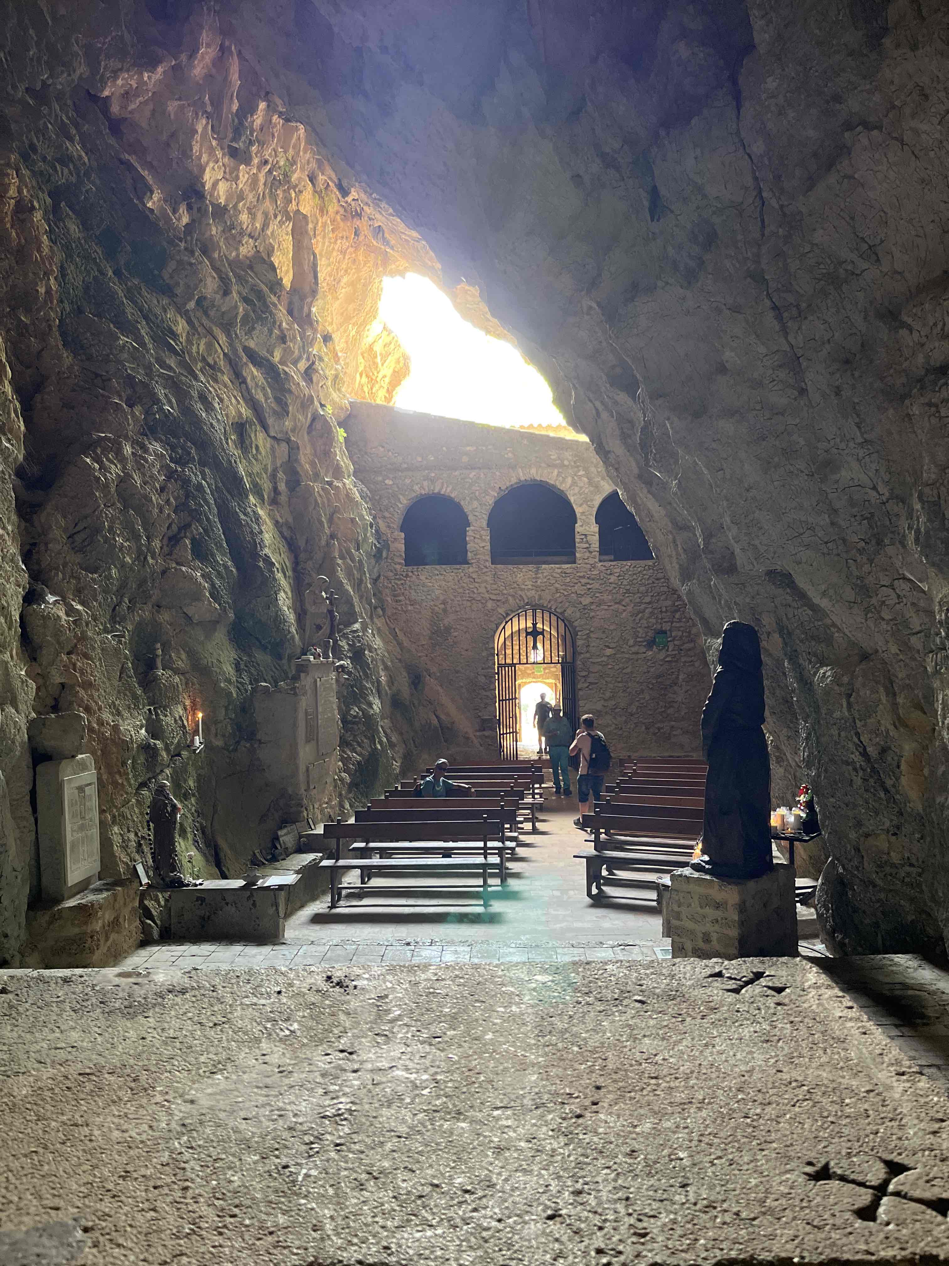 Elle est aujourd'hui « christianisée », mais c'est un lieu de culte chargé d'énergie depuis l'Antiquité. Si vous aimez la pierre, les montagnes, les lieux « curieux » et ésotériques, n'hésitez pas à le visiter. Bien sûr, la route pour y arriver en voiture ne convient pas aux âmes sensibles. Route très étroite avec des murs de protection très bas d'un côté et des roches excavées de l'autre. Falaises spectaculaires. Le simple fait d'arriver est une expérience.