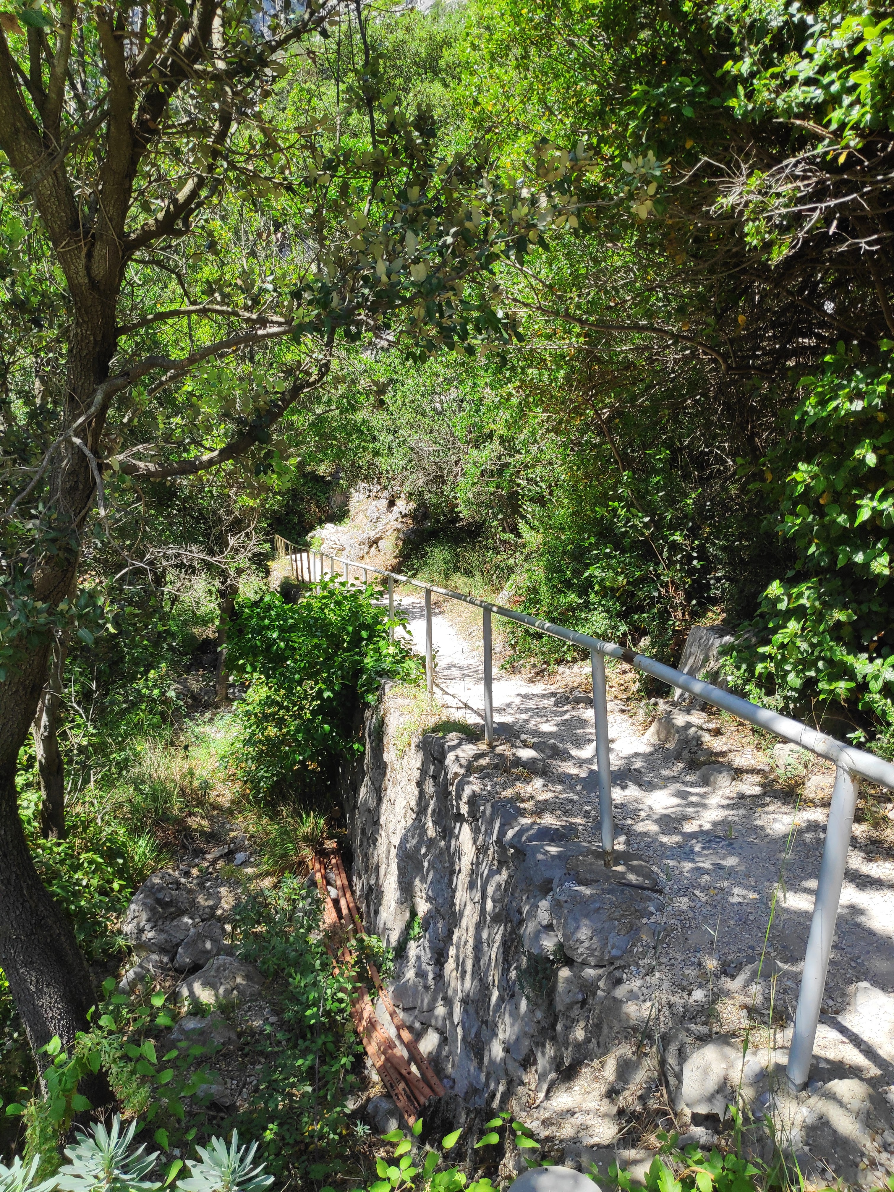 Beau sentier dans les gorges de galamus pour atteindre l'ermitage