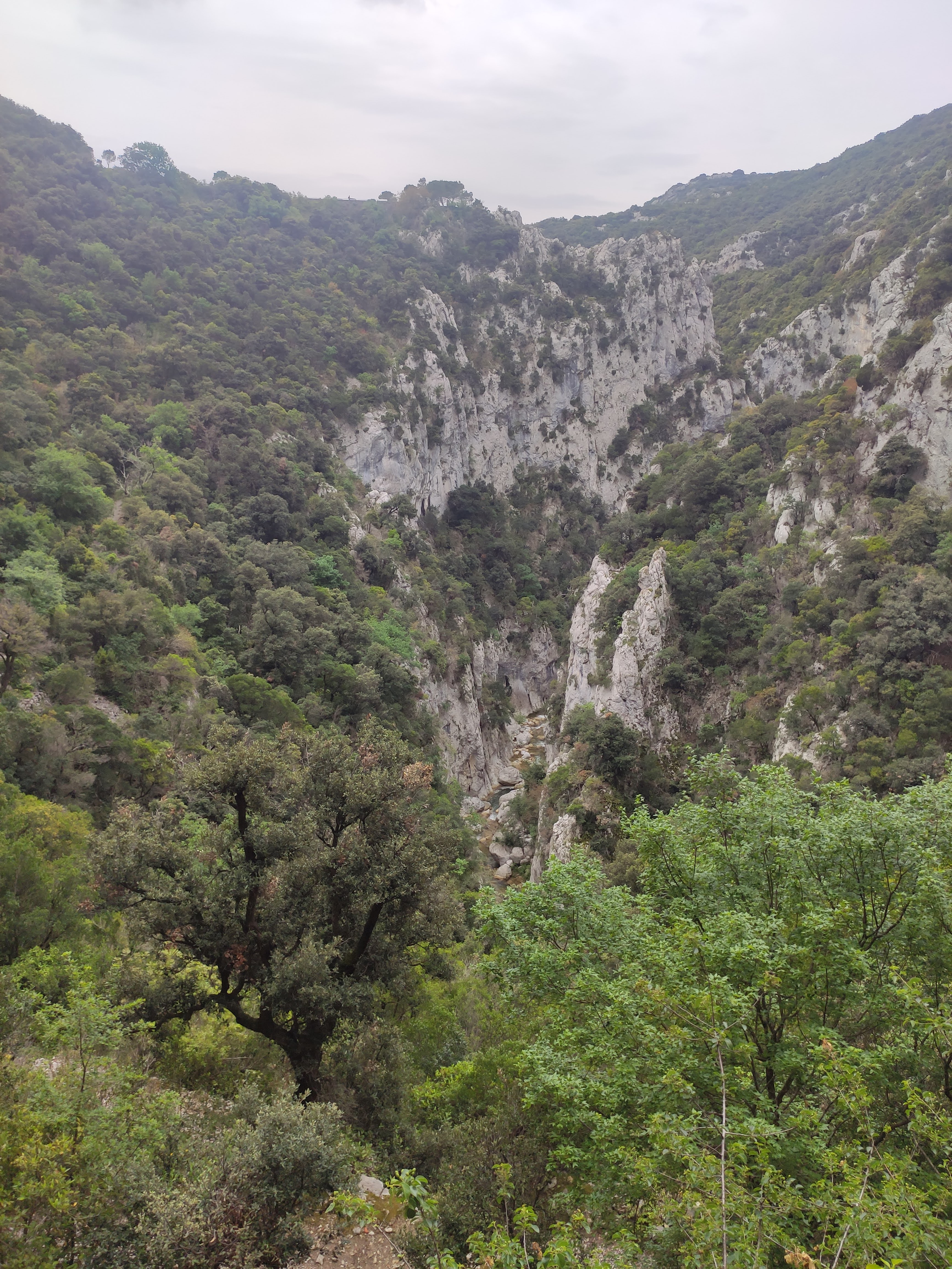 Profitant de la Bauma, l'ermitage de Sant Antoni de Galamús fut construit. Sans trop de piquant, un bon lieu de culte. Des vues spectaculaires. Ermitage suspendu aux gorges. Santé! 🎗