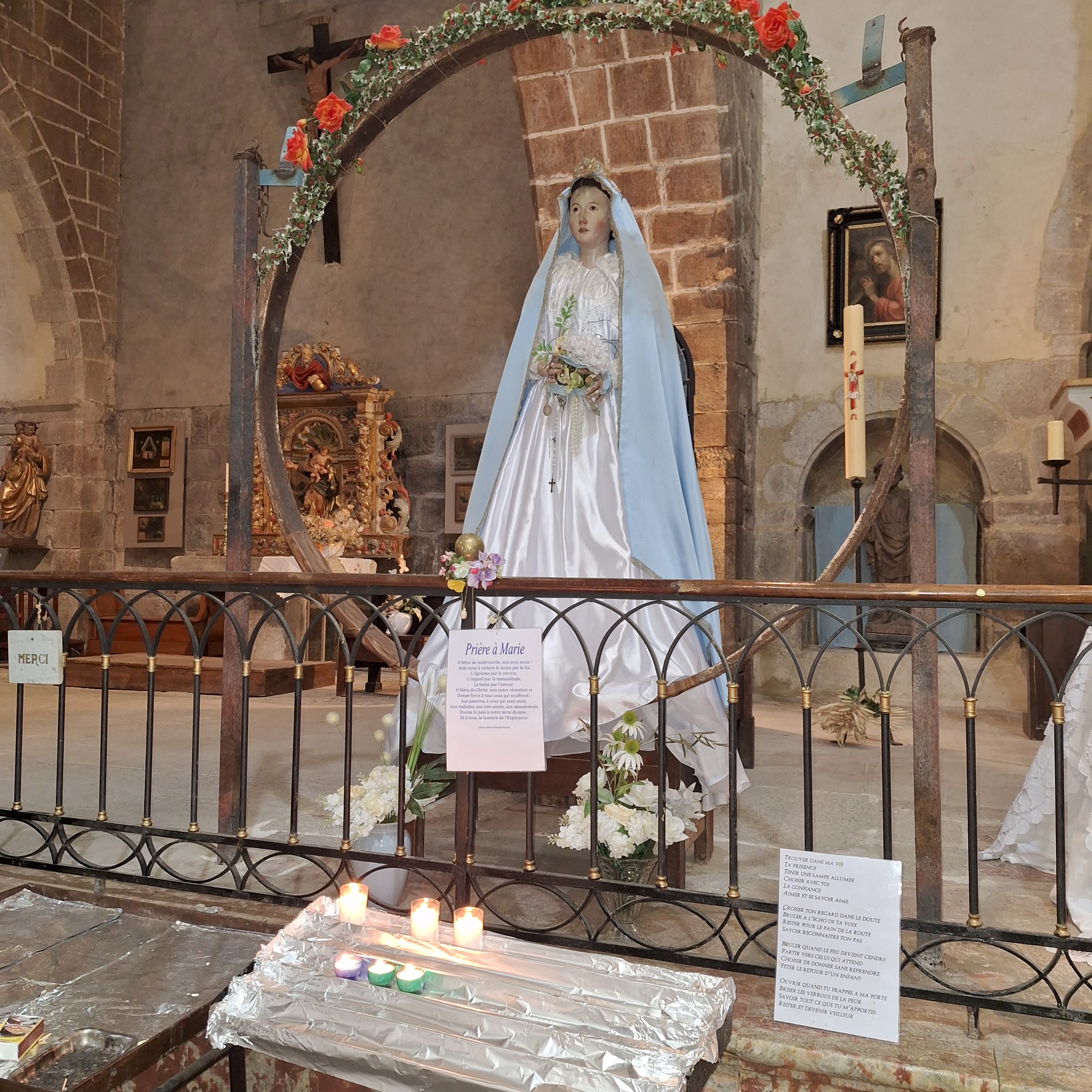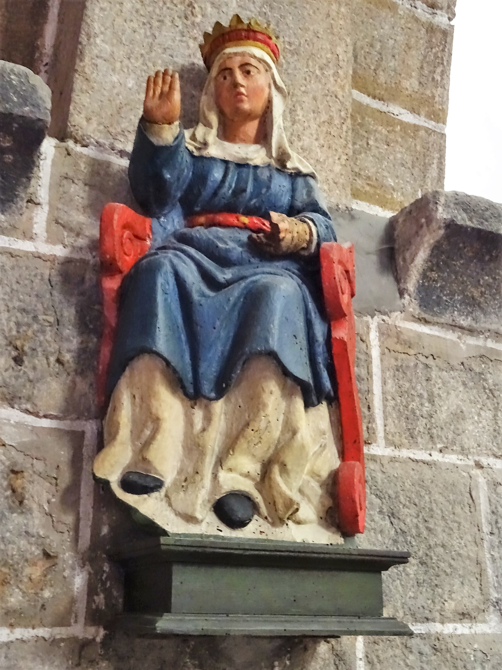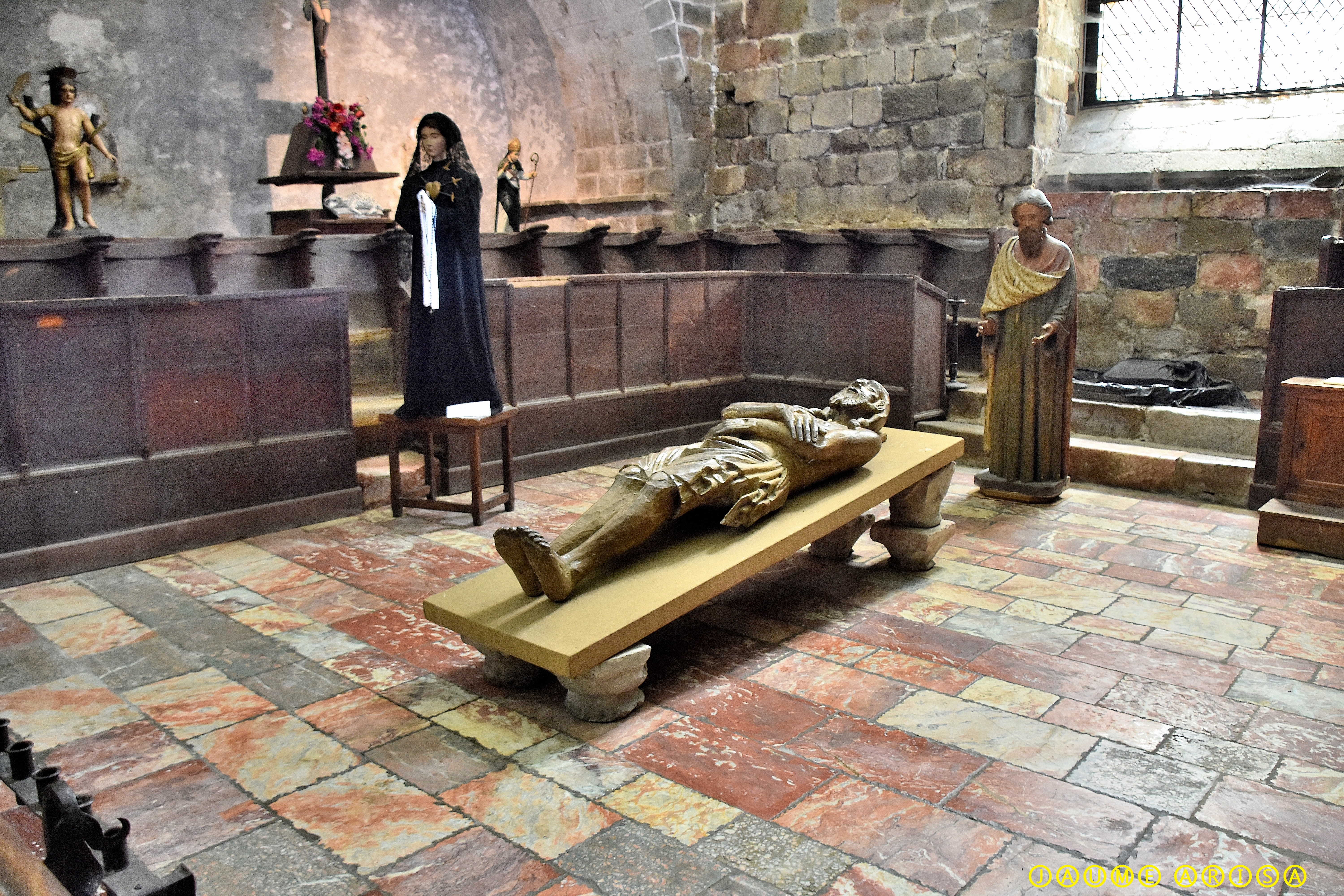On descend quelques marches en entrant dans l'église. Elle possède une belle collection de statues anciennes à ne pas manquer !