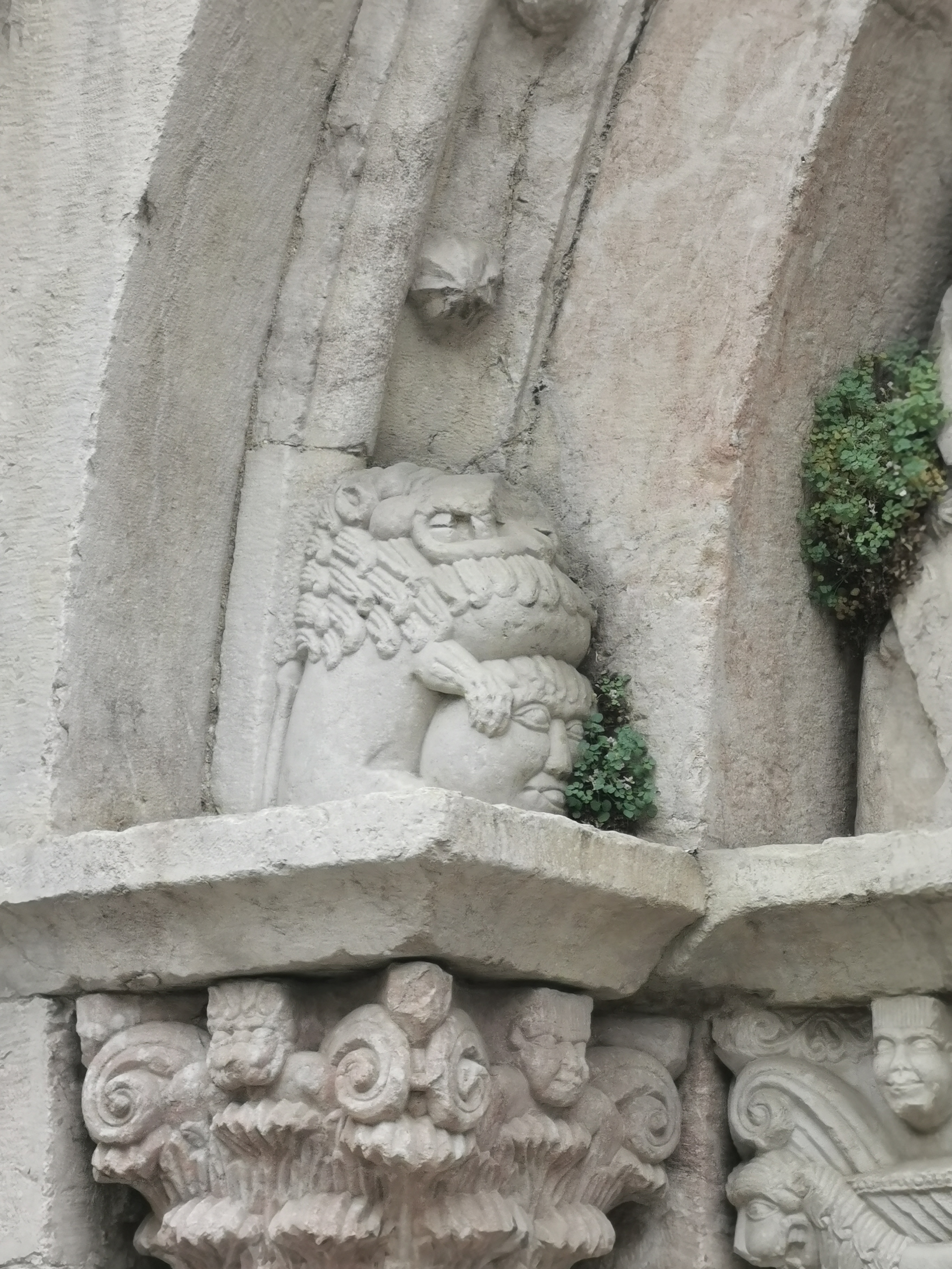 Intéressant à visiter. Portails ornés de chapiteaux en marbre rose.