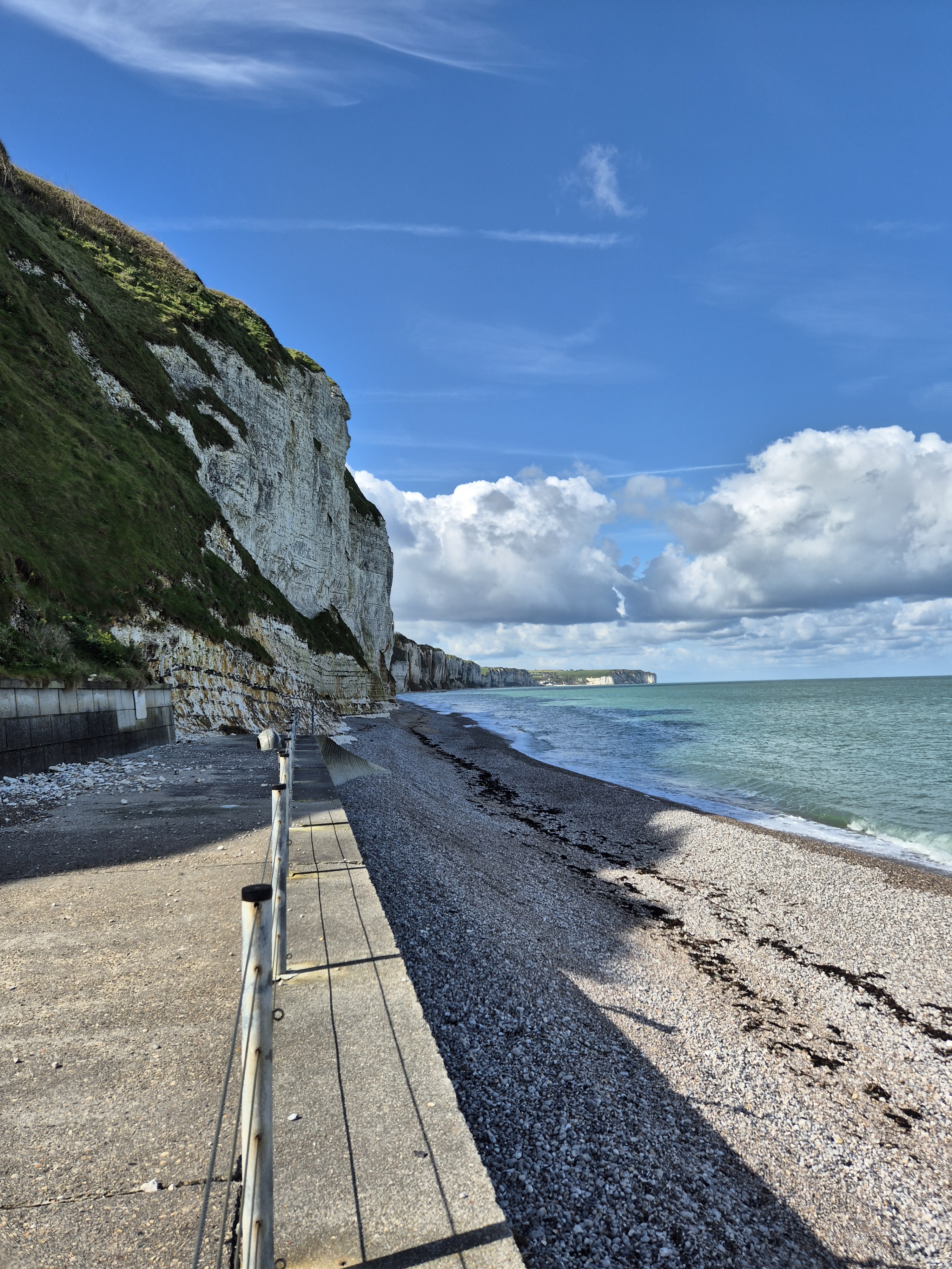 Joli Impressionnant ces galets sur la promenade après la tempête