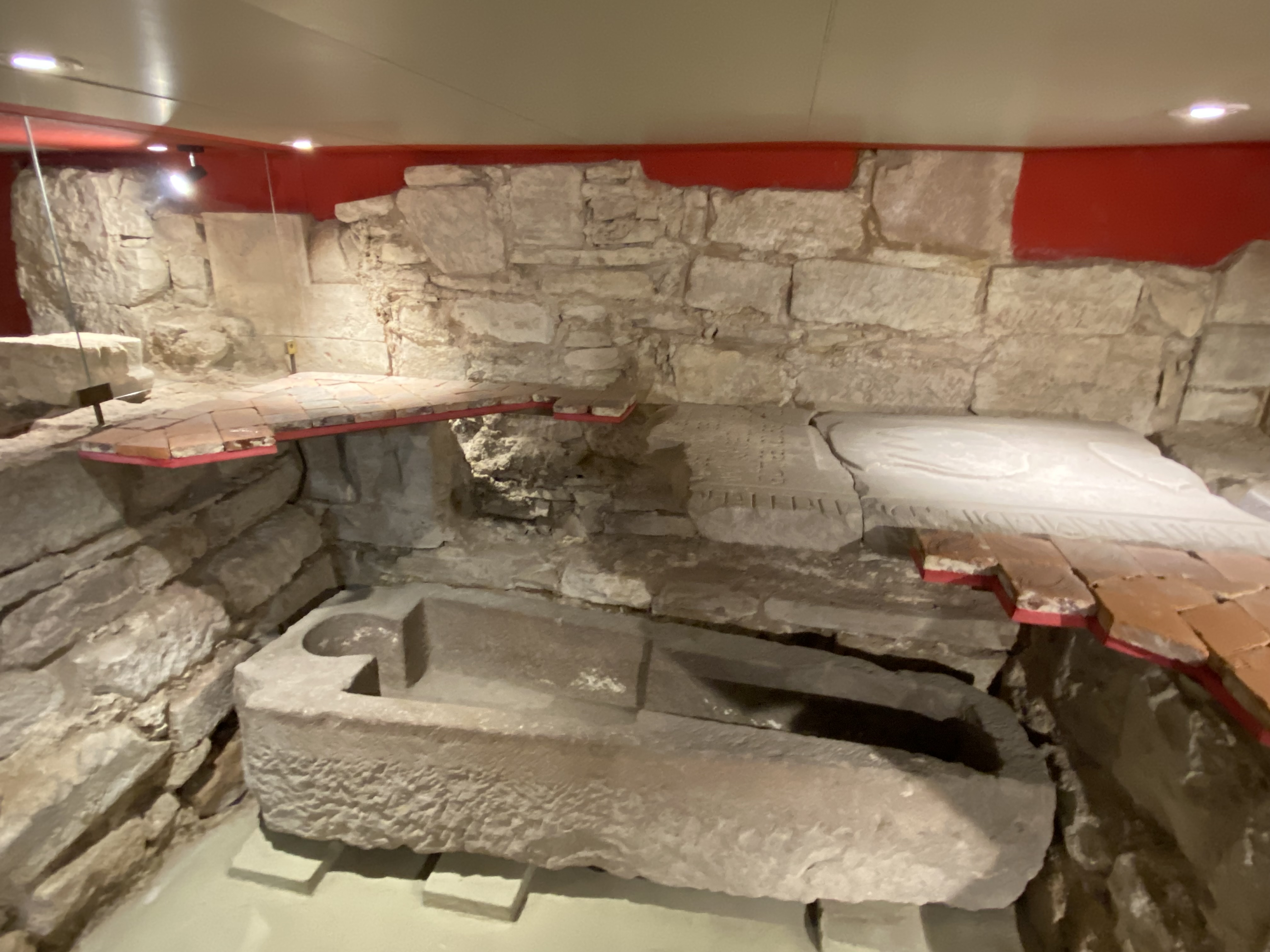 La plus grande surprise se trouve sous terre : les fouilles sous la crypte montrent les origines de l'église remontant à 740 !