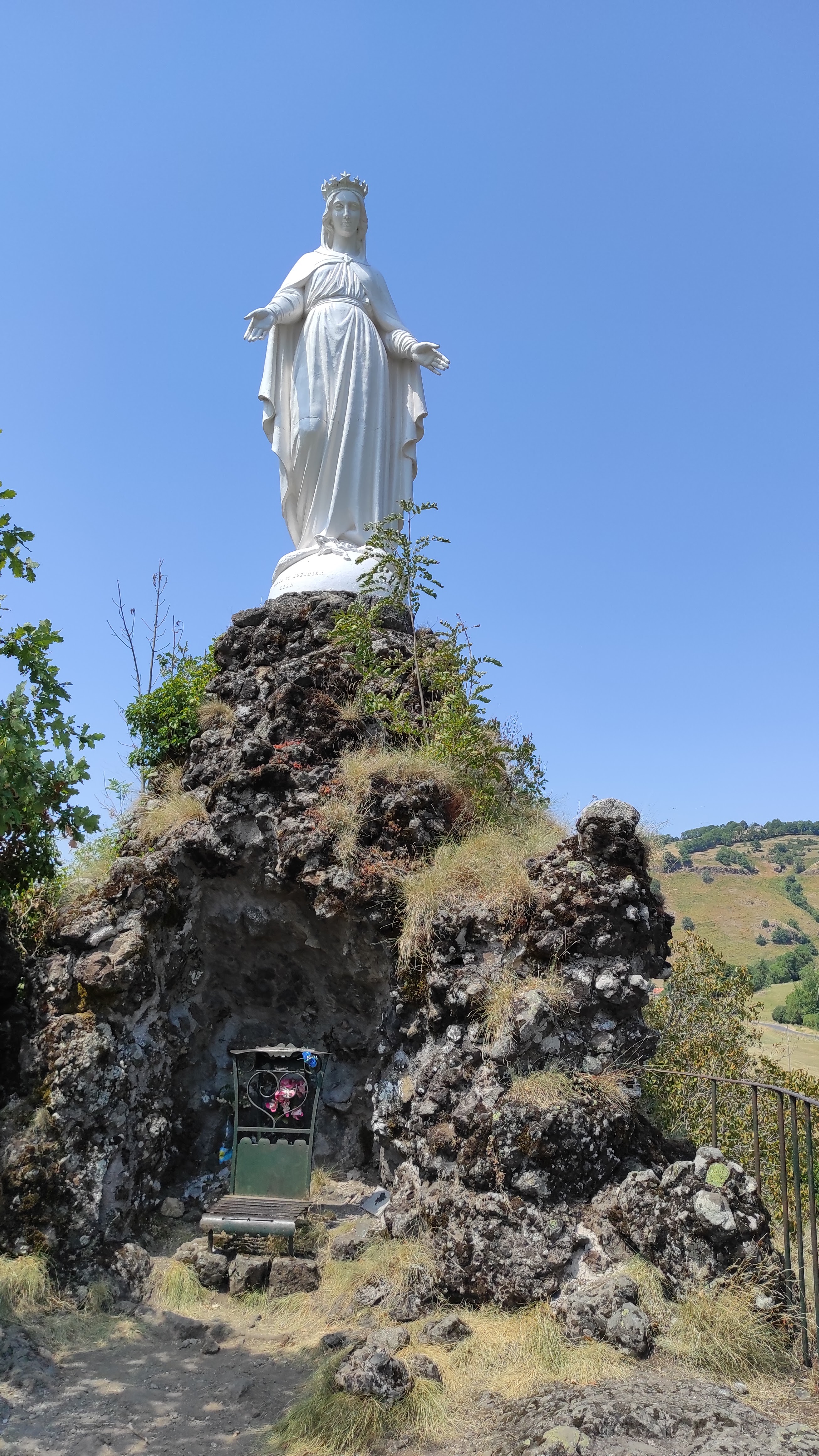 Magnifique Chapelle originale taillée dans un monolithe du village de Fontanges. La vue au pied de la vierge vous offrira une belle vue sur la vallée verte et le village.