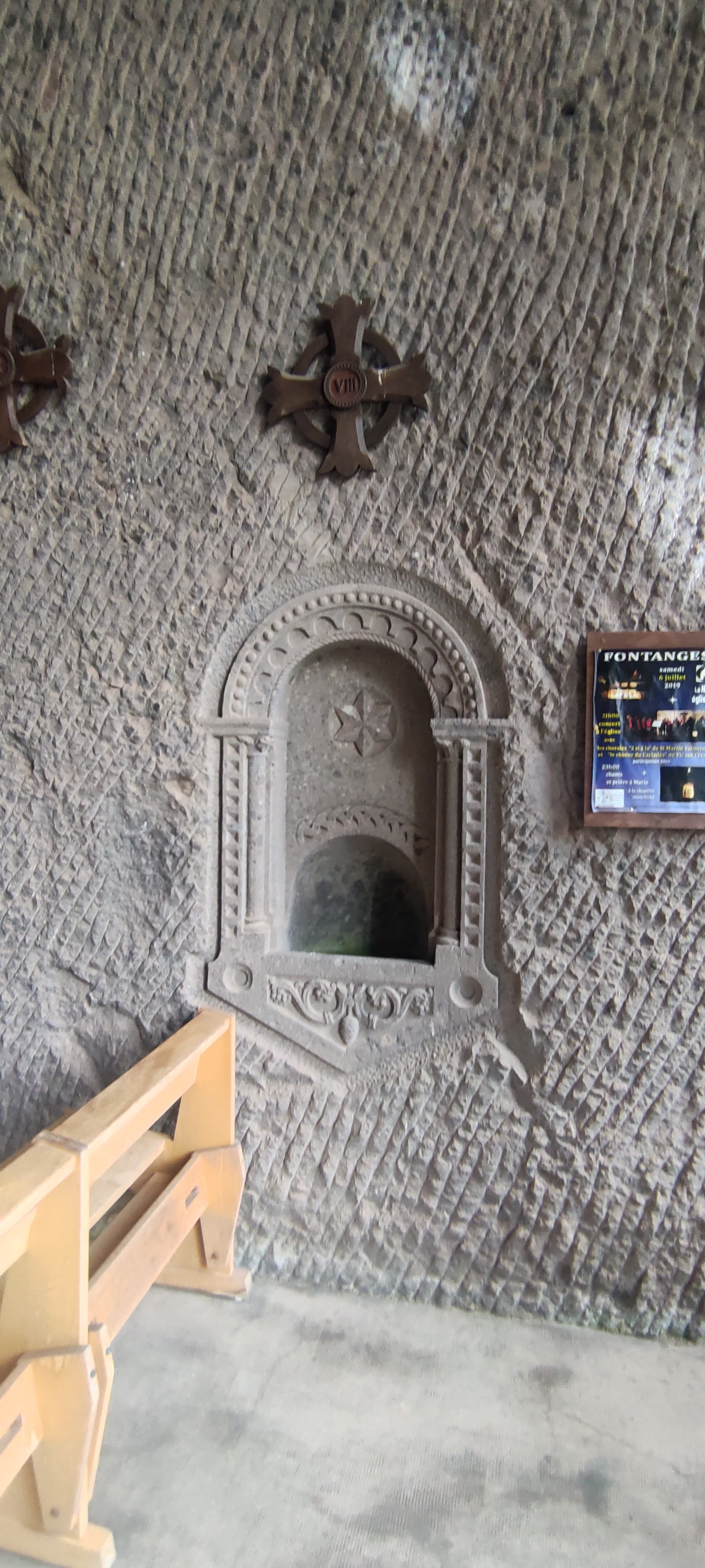 Une chapelle étonnante, très originale car elle a été entièrement creusée au début du siècle dernier dans un énorme rocher posé dans la vallée. L’appellation « monolithe » signifie qu’elle a été taillée dans un seul rocher 😀 On imagine le travail que cela représente ! Le tympan du portail d'entrée, de style roman, a été finement sculpté par un artiste local. A voir sans hésiter ! Visite libre et gratuite.