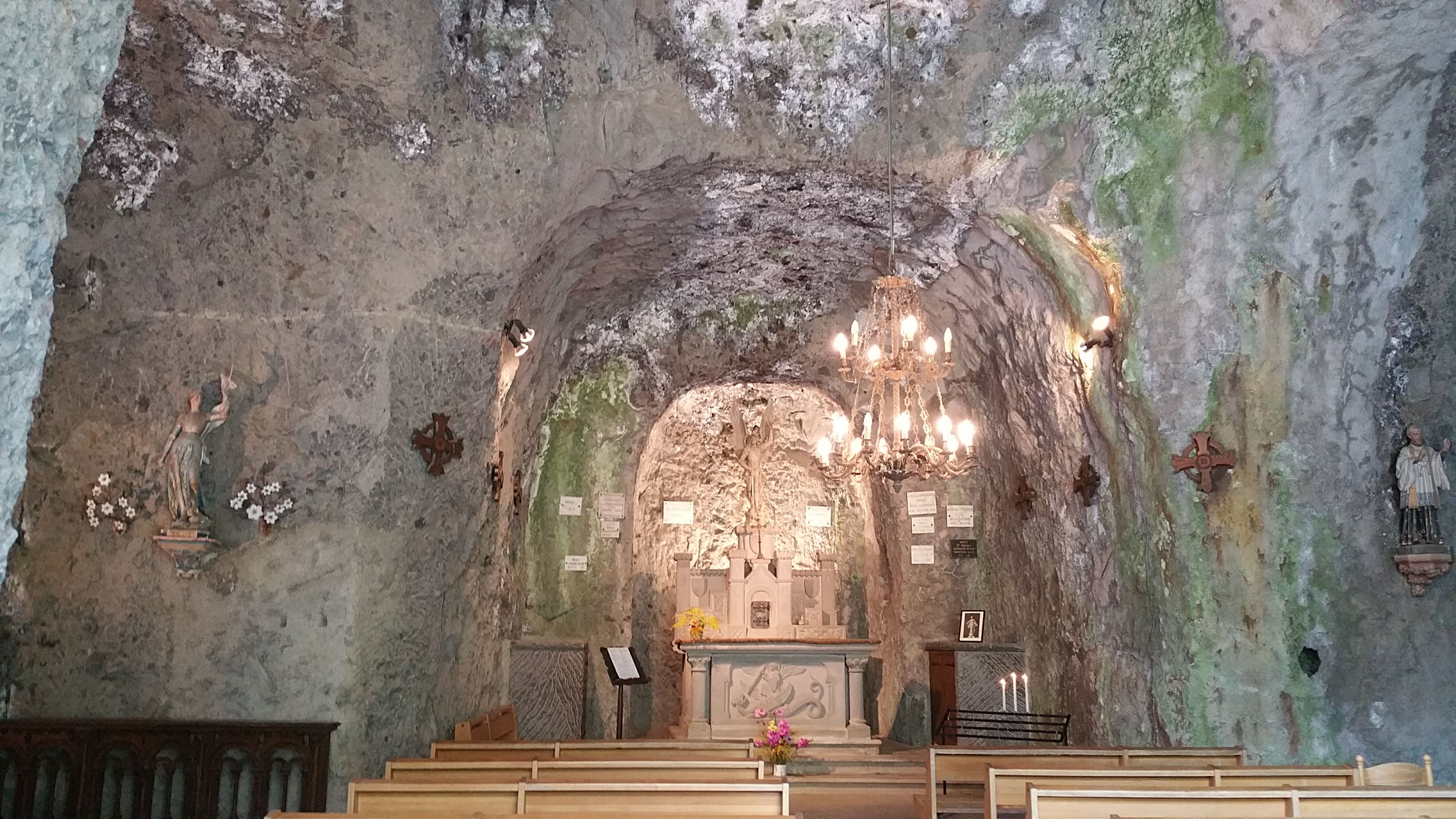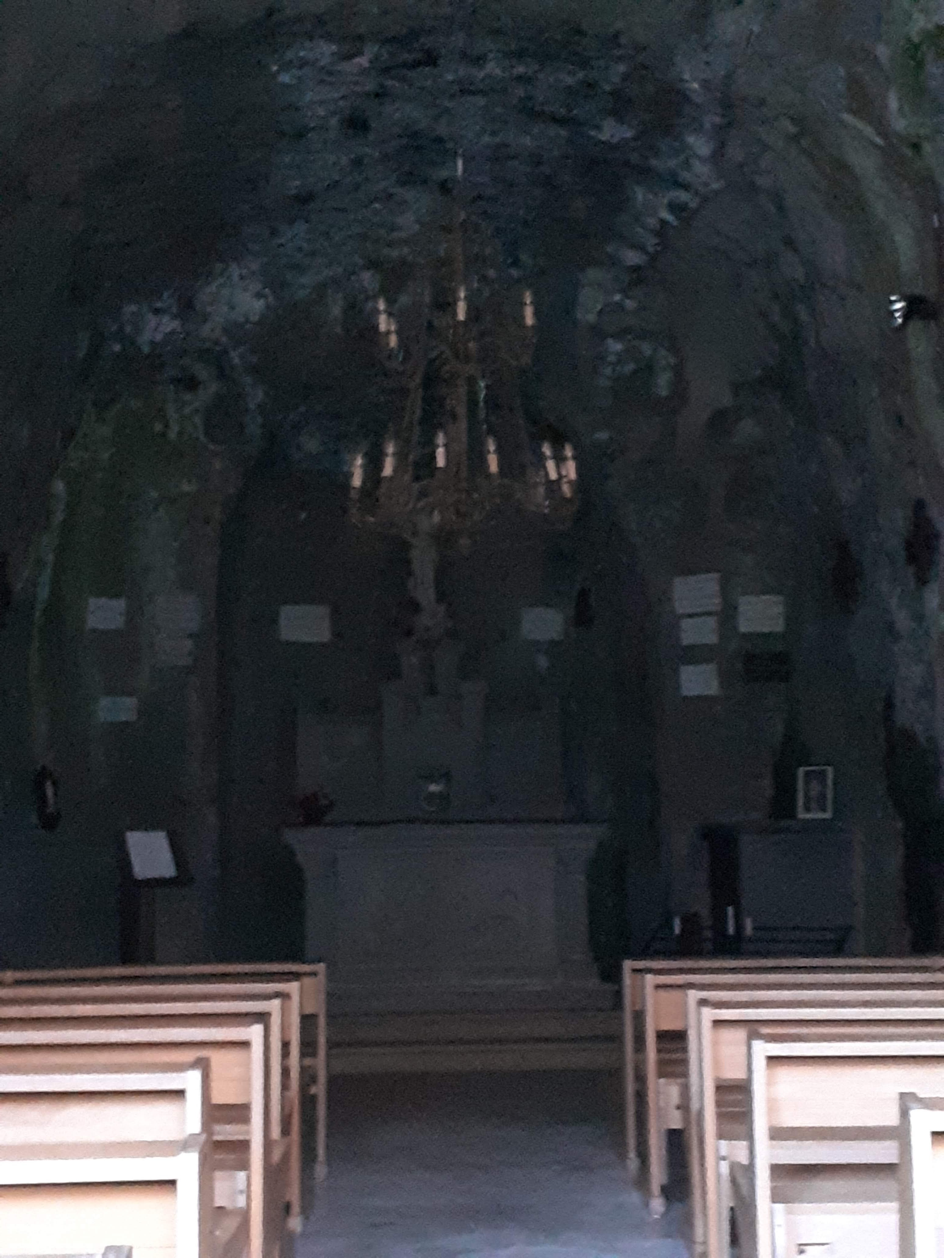 Creusé dans la roche, cette chapelle vaut le détour. La vue est superbe (voir la vidéo).