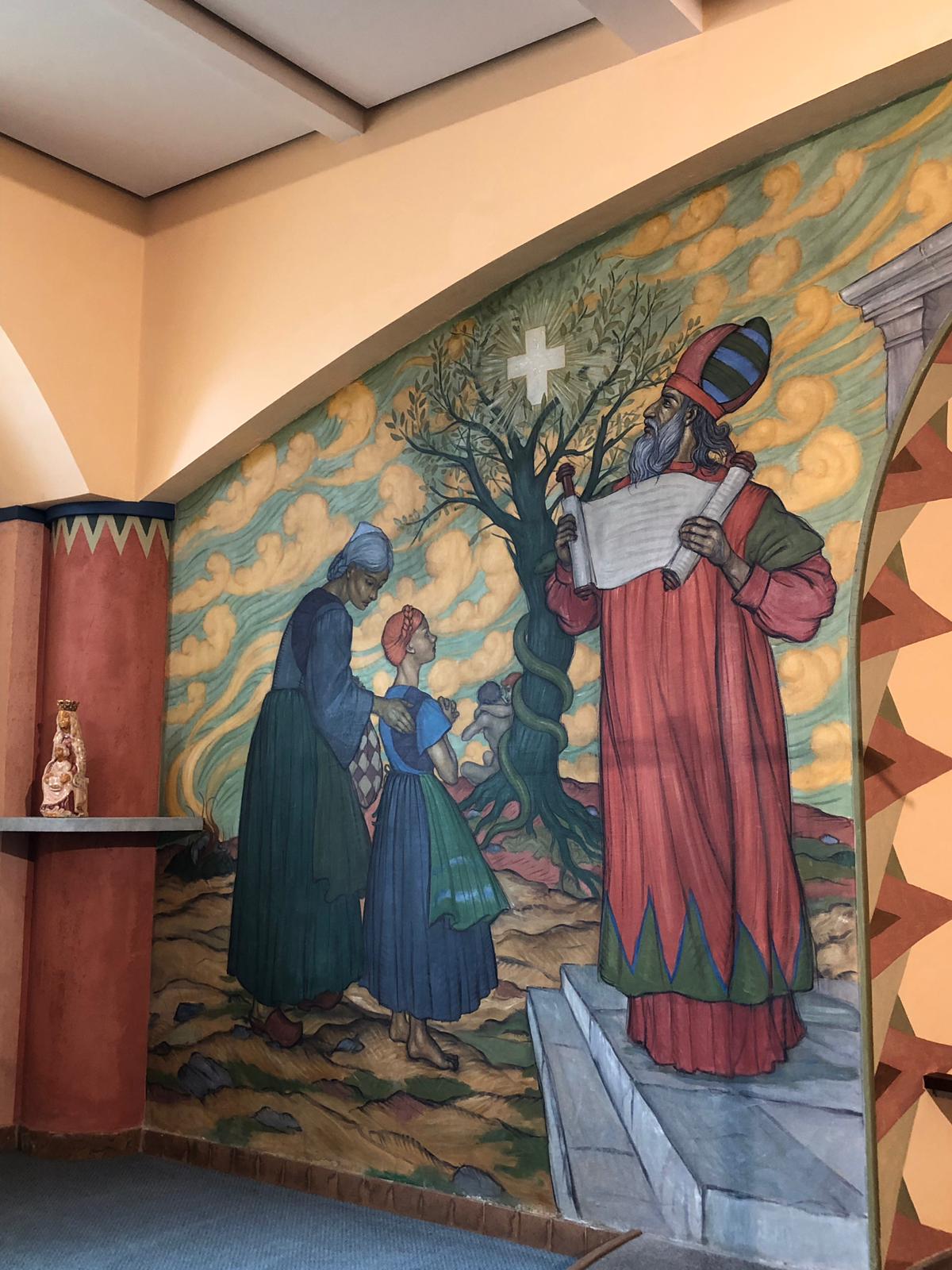 La chapelle Saint-Yves est absolument unique : un bijou de l'art déco en Bretagne avec ses suberbes mosaïques Odorico et ses fresques monumentales de X L'anglais.