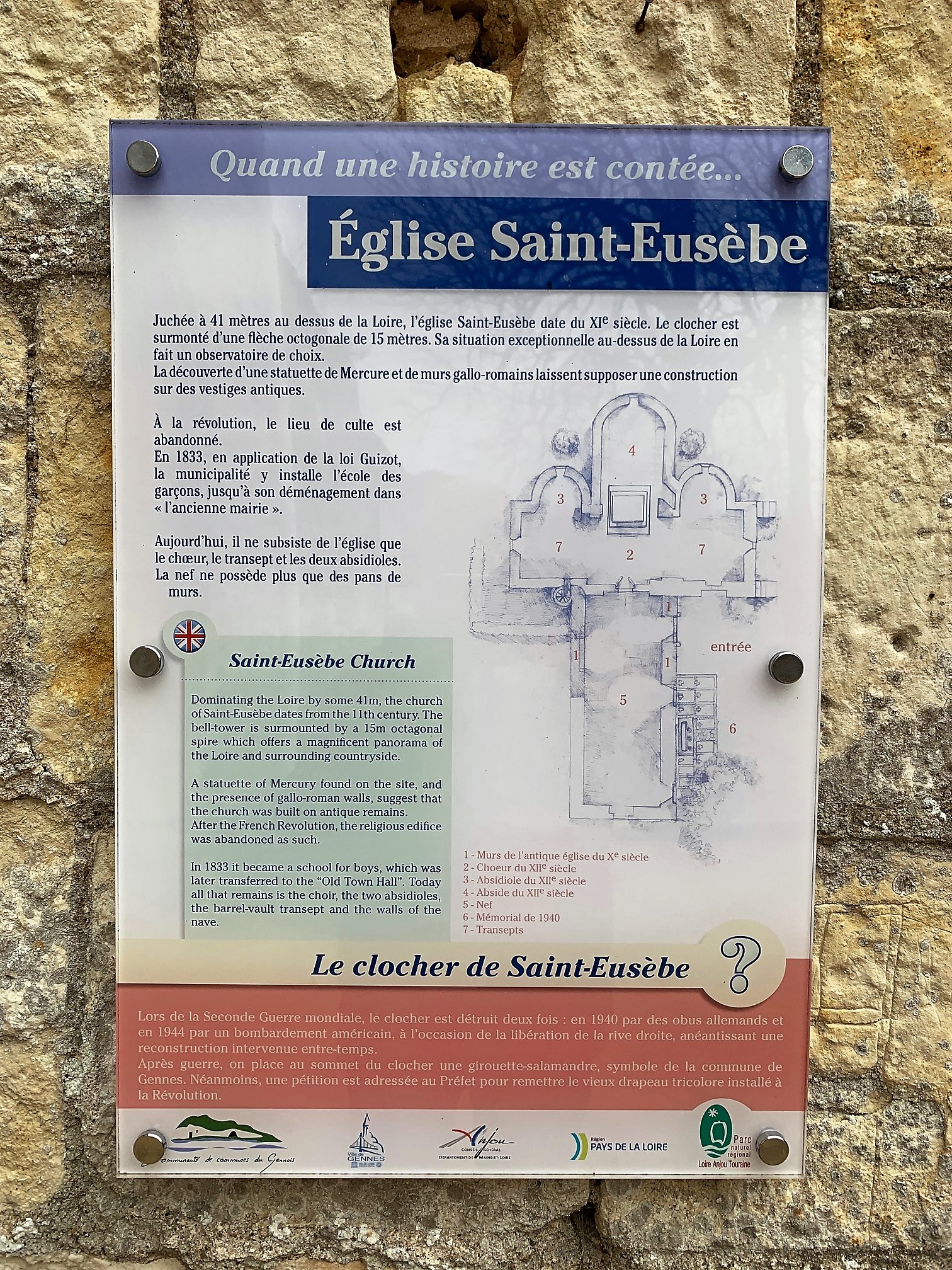 Voici toutes les informations sur le Église Mémorial et église saint Eusèbe qui ce trouve au 20 Rue du Mémorial, 49350 Gennes-Val-de-Loire (49). Sur cette fiche vous trouverez les photos, l'adresse, les horaires d'ouverture, le numero de téléphone et les avis clients.Vous pouvez églement rédiger un avis si vous le souhaitez en bas de page.