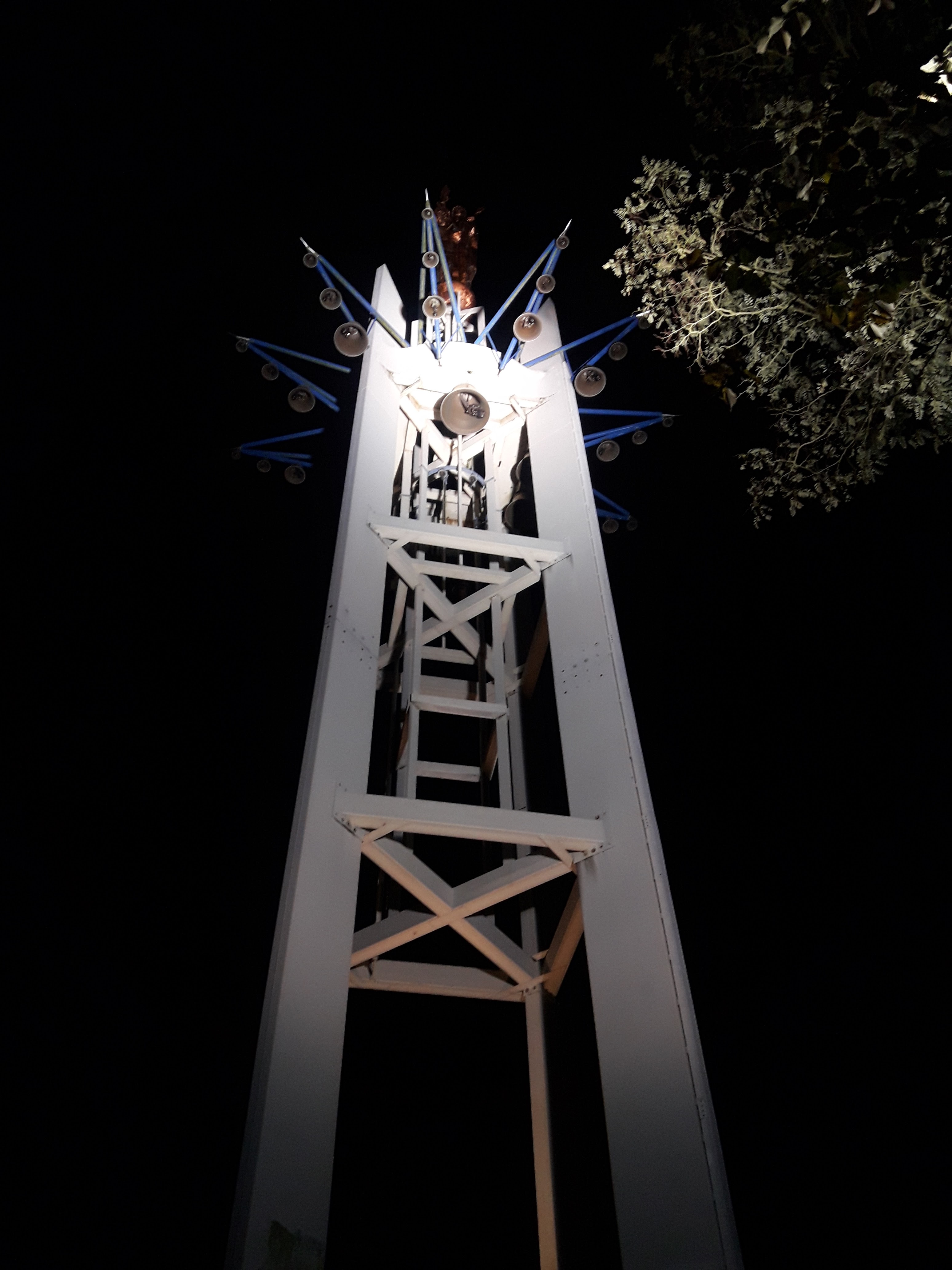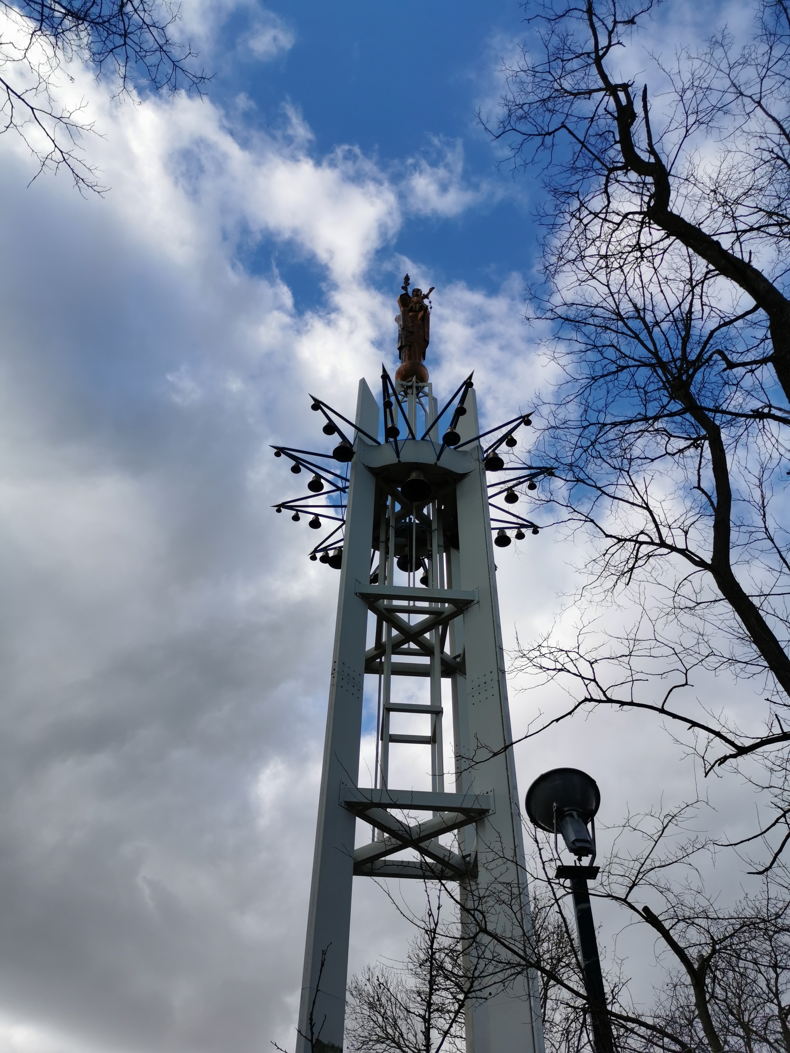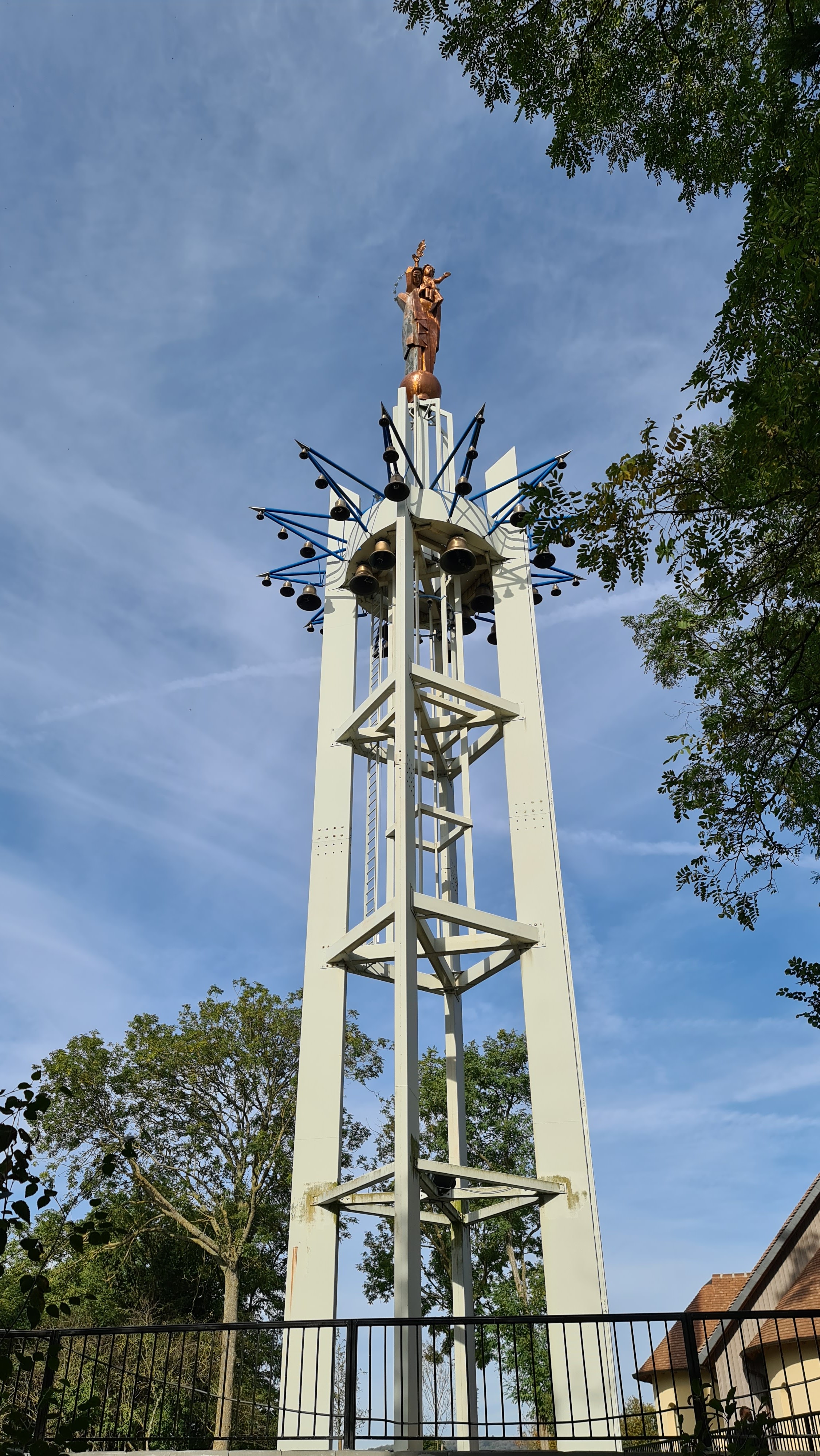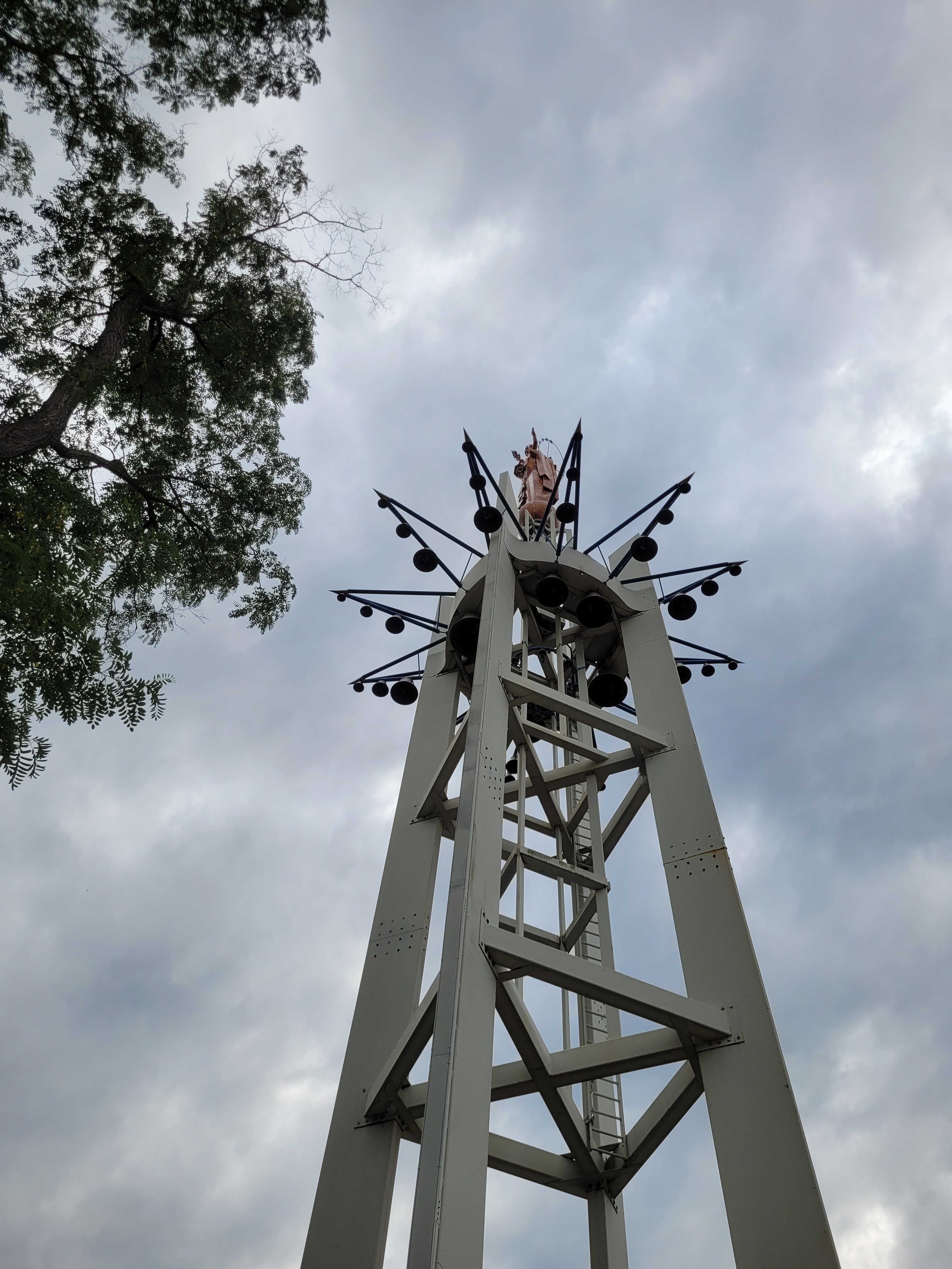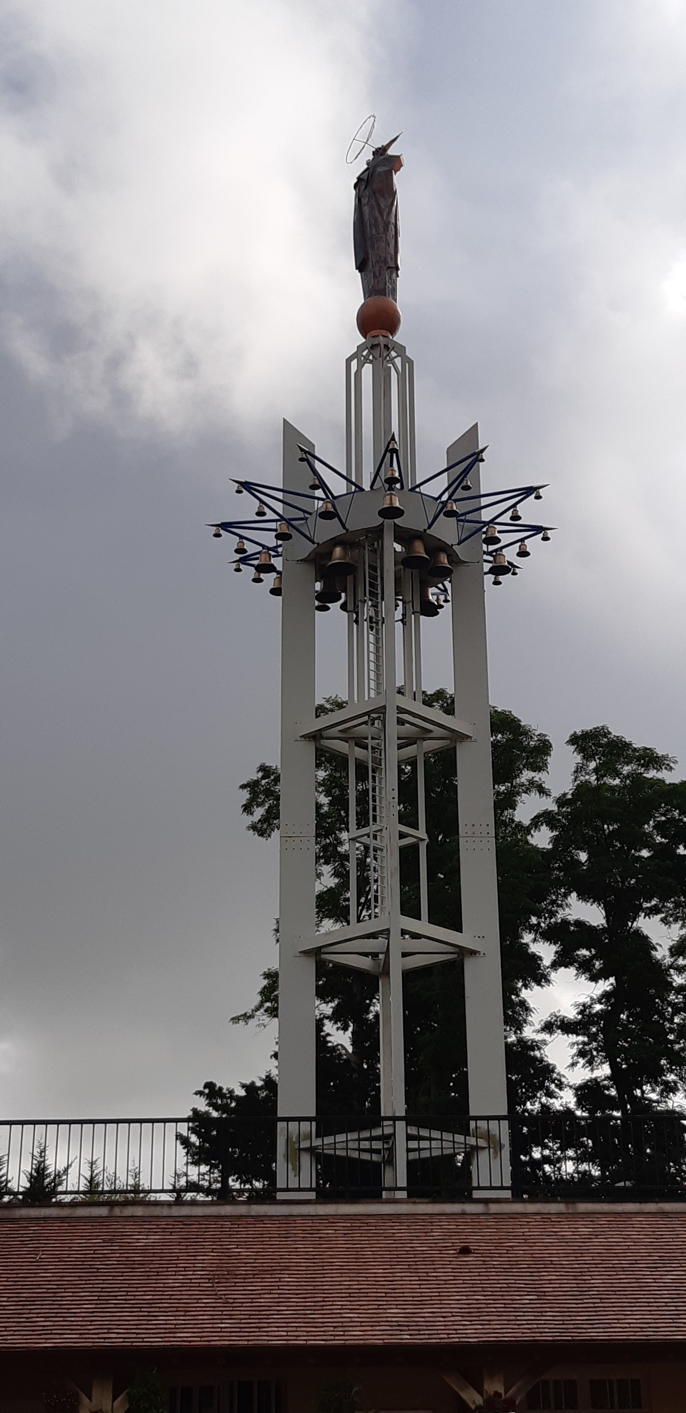 La statue de 7m de hauteur au sommet de la structure provient du papillon pontifical de l'exposition universelle de 1937. Bel endroit récemment rénové a la suite d'un incendie ou vous pourrez peut-être entendre les 50 cloches et carillons sonnés.