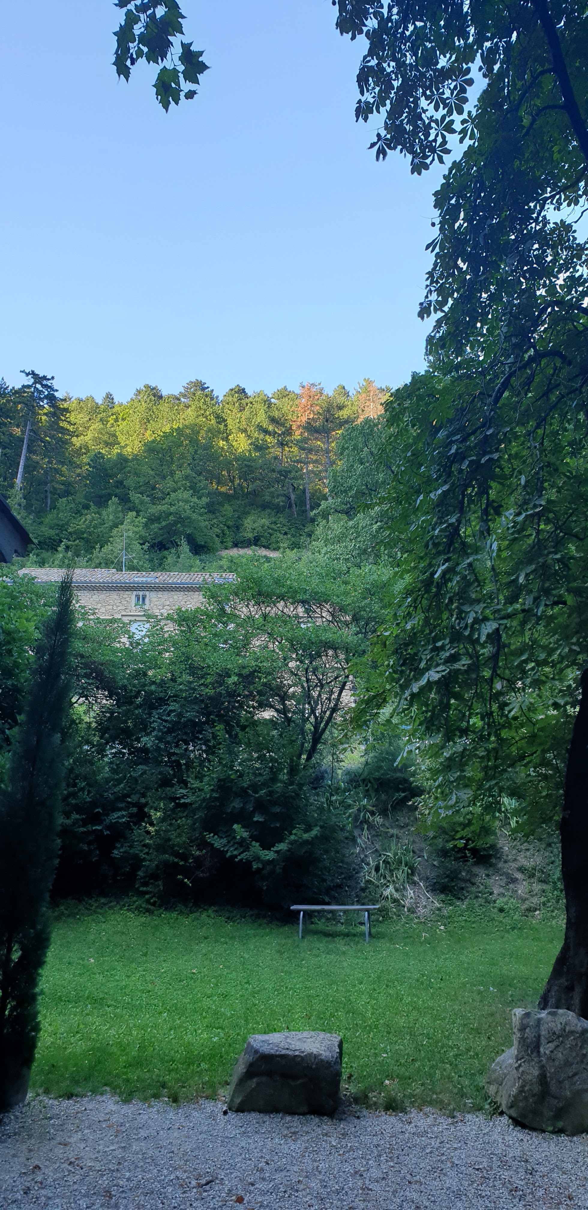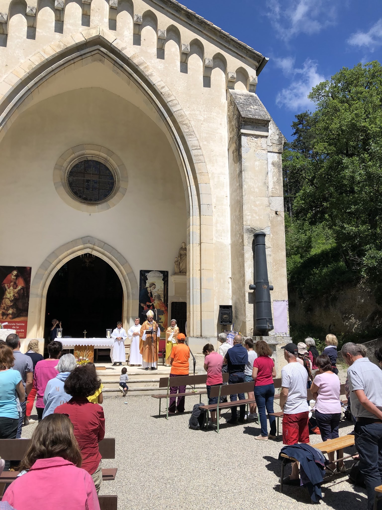 au milieu de la superbe forêt, à qq centaines de mètres du charmant village de Marsanne, ce lieu de paix et de quiétude, avec un centre d'accueil diocésain pour retraites spirituelles. La chapelle est étonnante, dans son style 19ème siècle, avec les canons pris à Sébastopol lors de la guerre de Crimée.