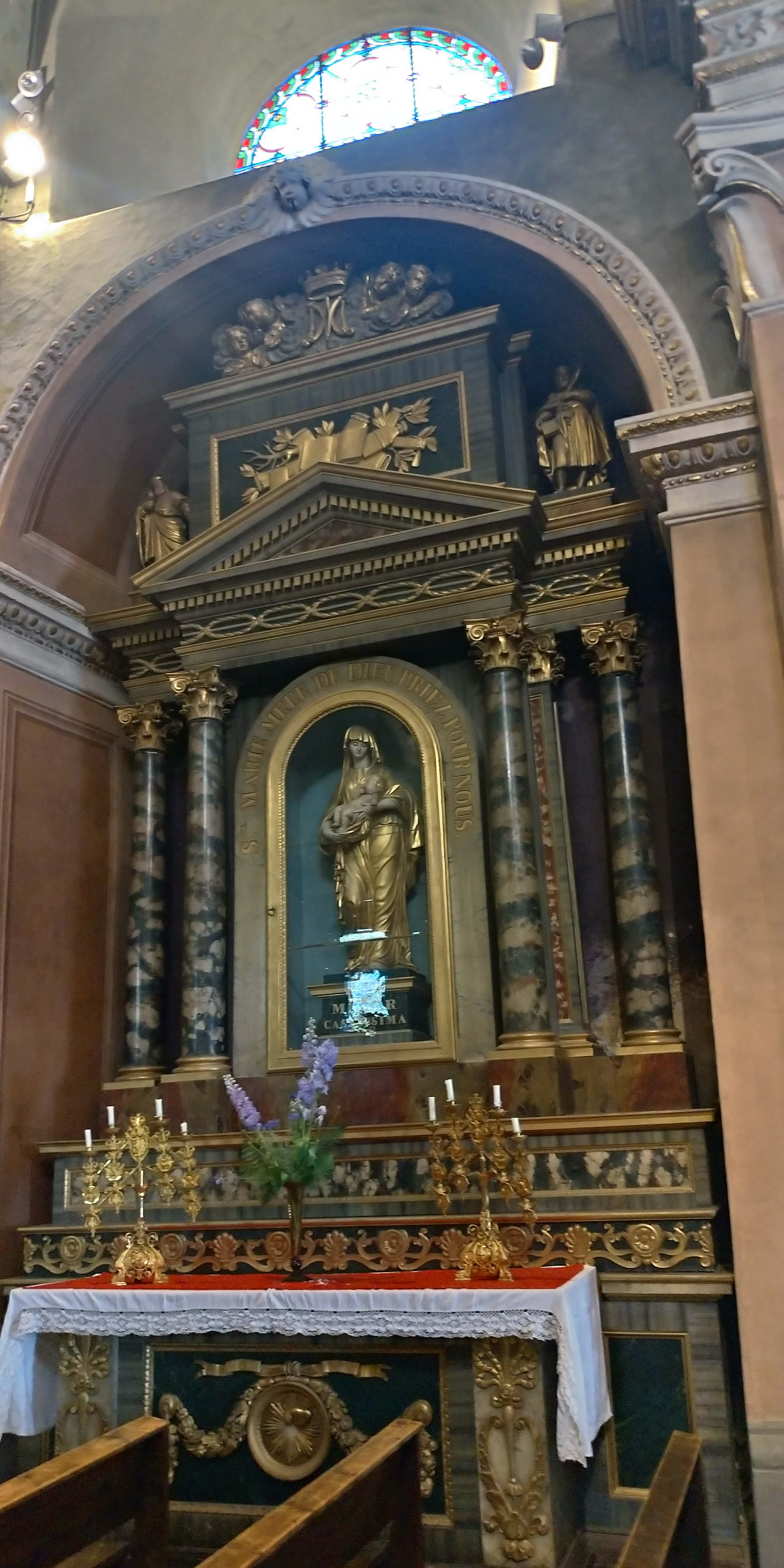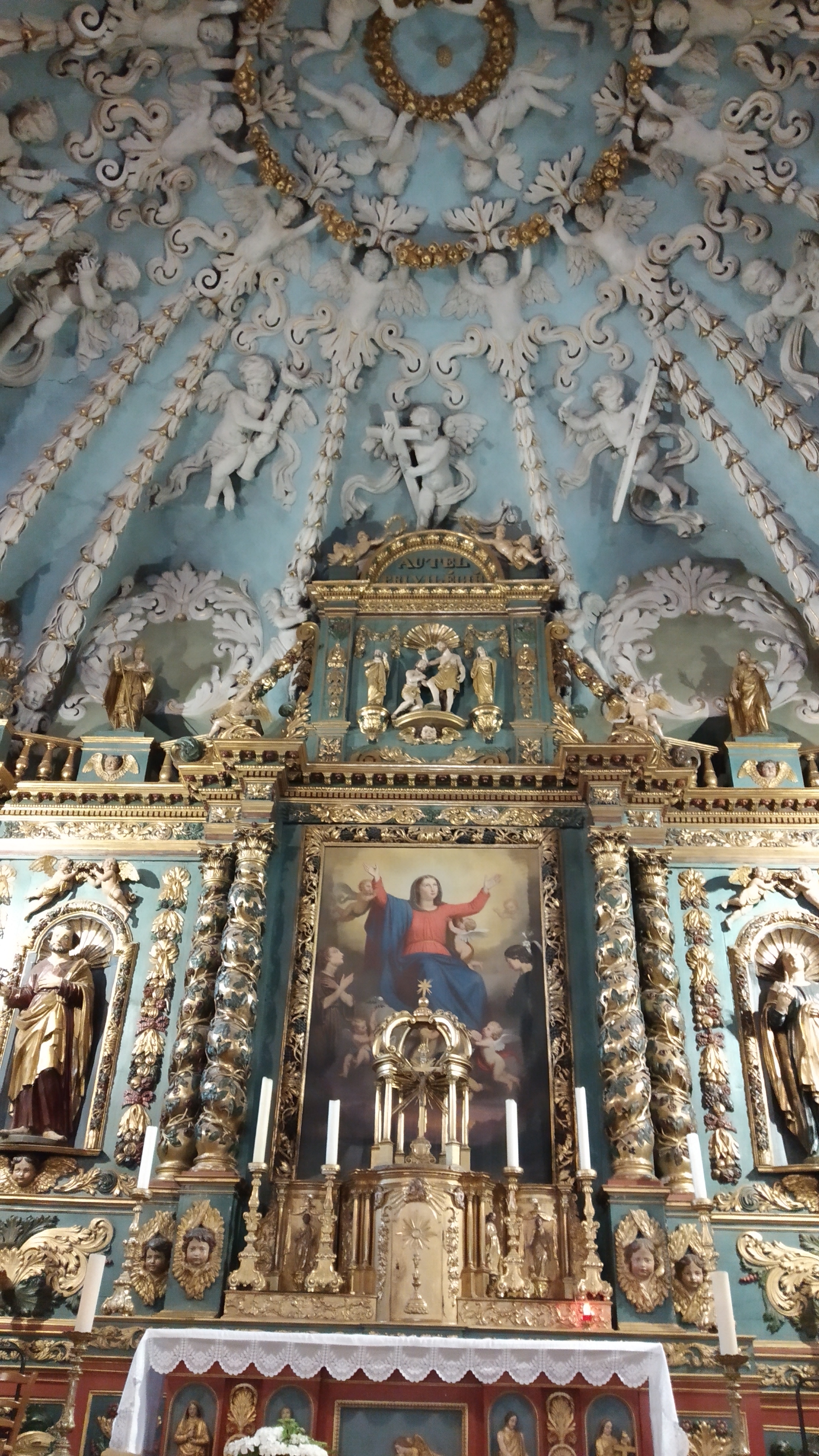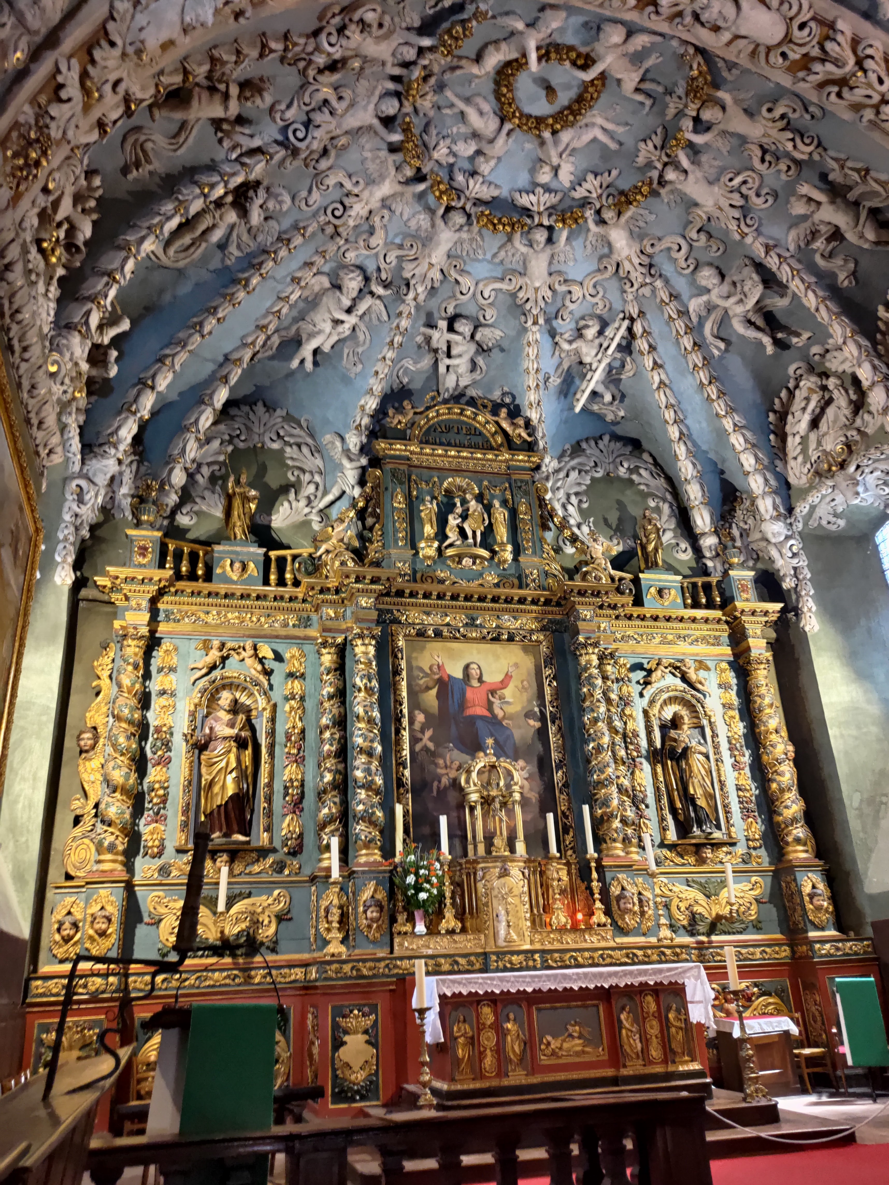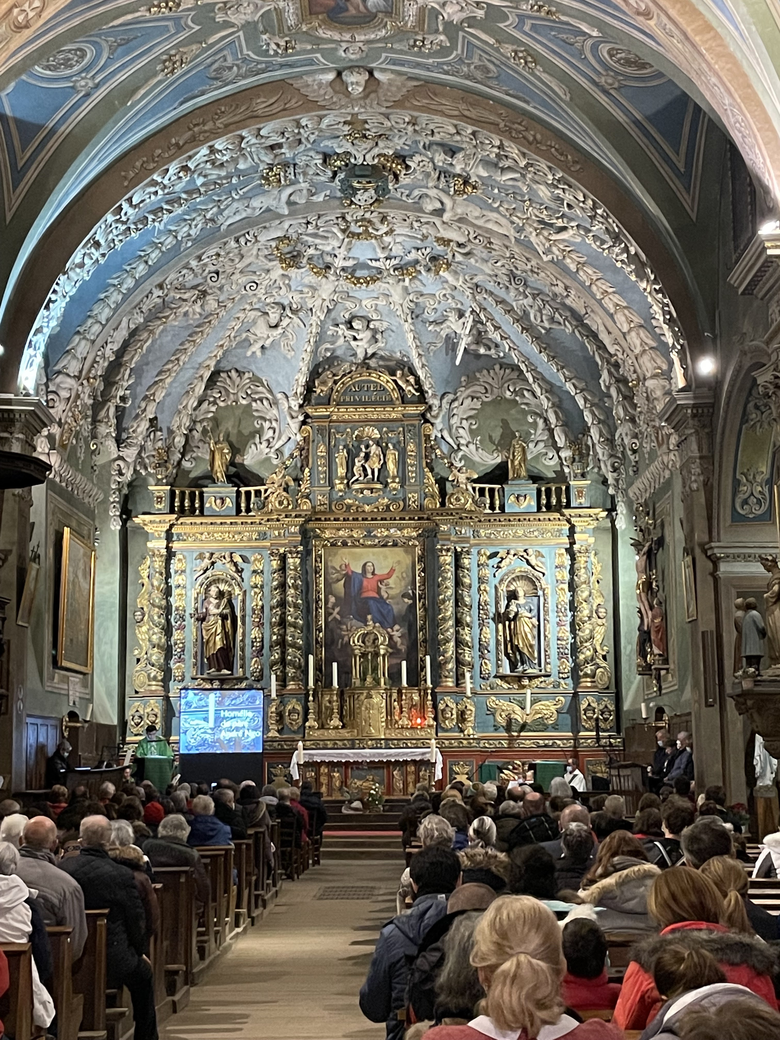 L'église nous accueillait pour les obsèques d'une grande amie. Le lieu est somptueux et baroque.