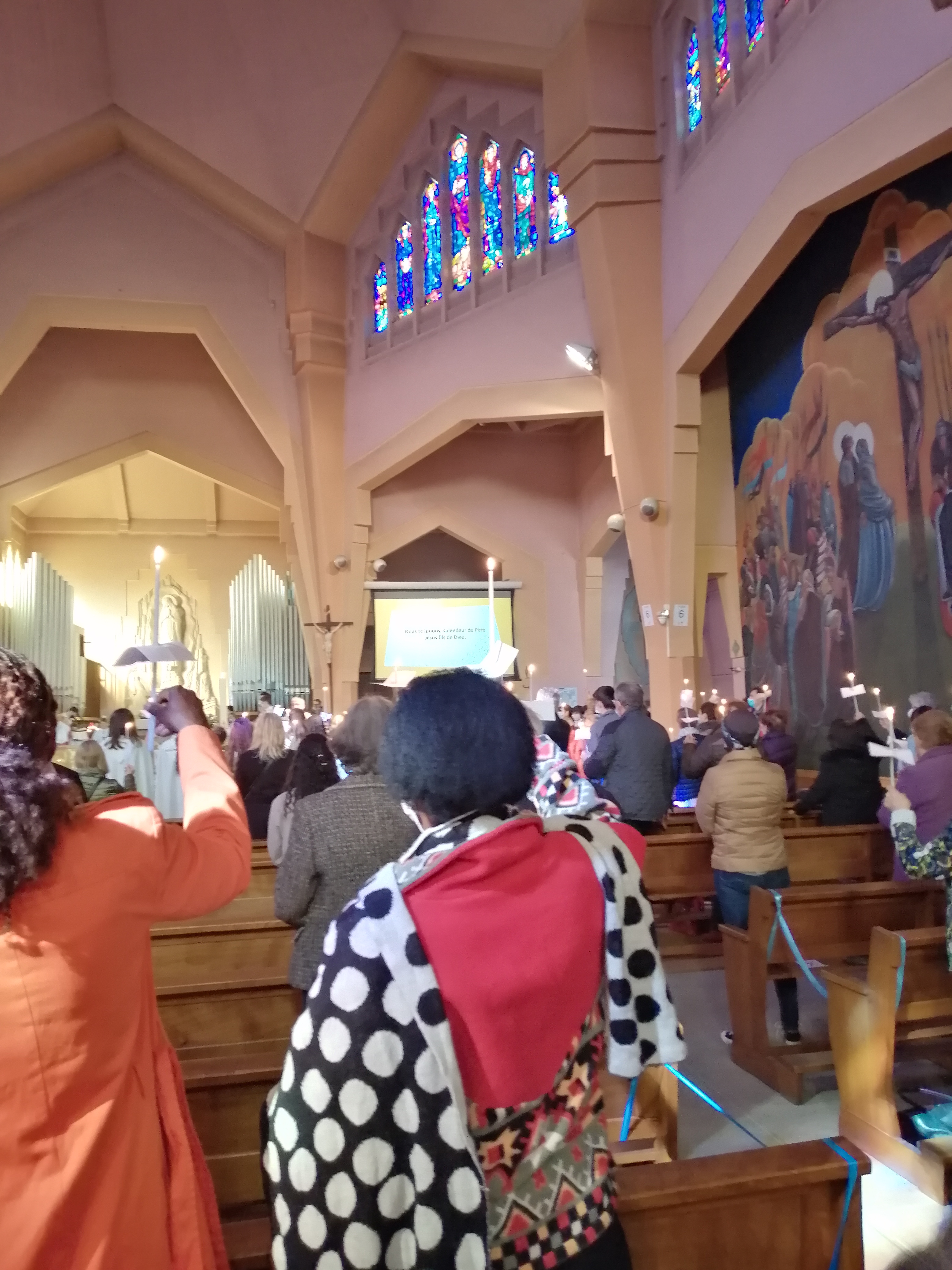 L Eglise notre dame de Lourdes à Romans sur Isère est très belle. Nous y étions pour la messe de funérailles du Père Pierre Legendre. Eglise comble. Nous étions à la tribune.. tout était très bien organisé. Au top l' organisation avec de nombreux bénévoles . Dommage que les hauts parleurs ne fonctionnaient pas très bien en tribune.