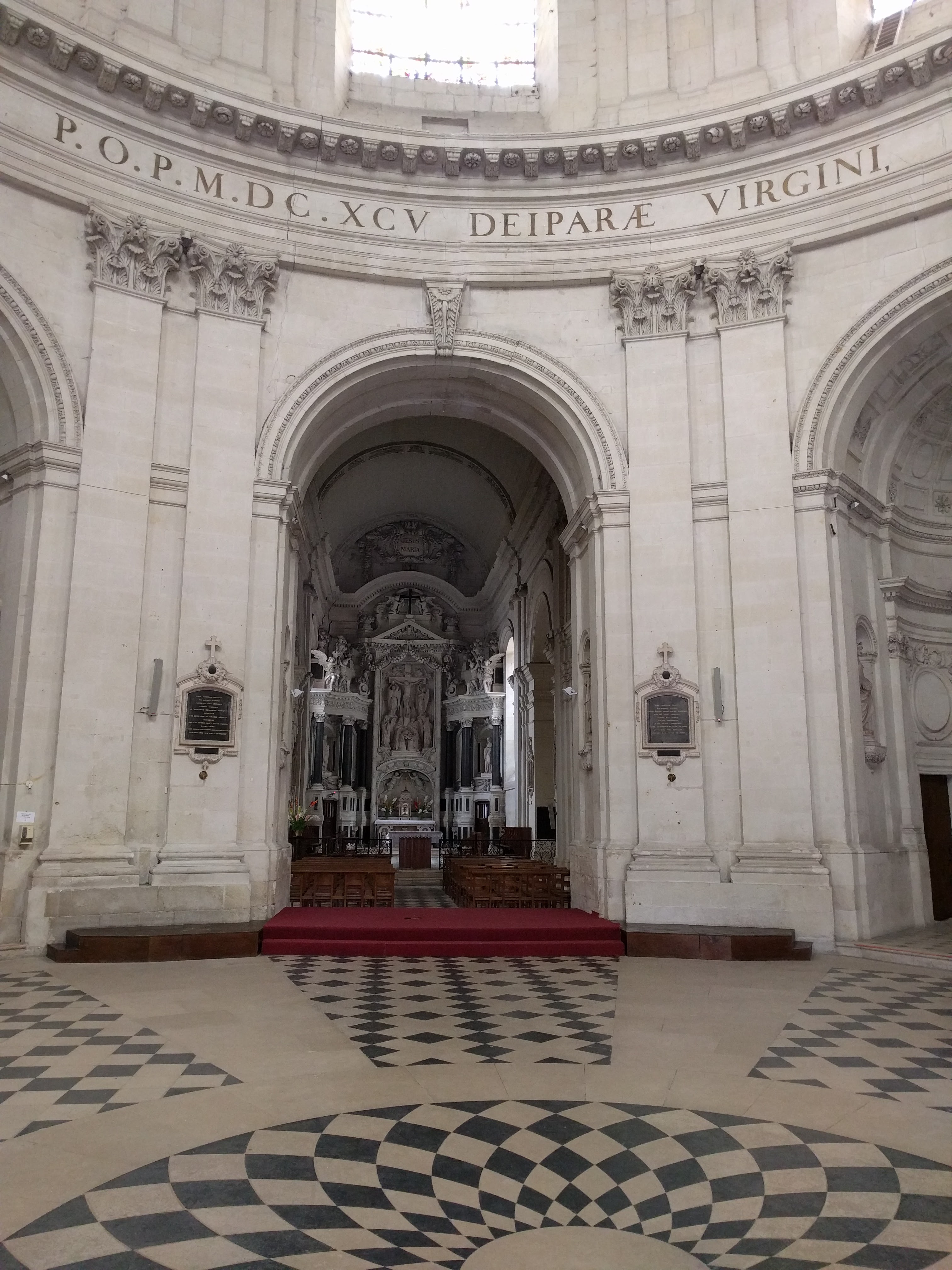 C'est une très belle église. Il possède des colonnes du plus haut niveau, un sol en céramique, des fenêtres peintes, de hauts plafonds, une rotonde avec une coupole décorée, des voûtes et des treillis sculptés, des murs, des encadrements de fenêtres, des cadres de peintures et des statues. Il est très élégant avec ses excellentes proportions.