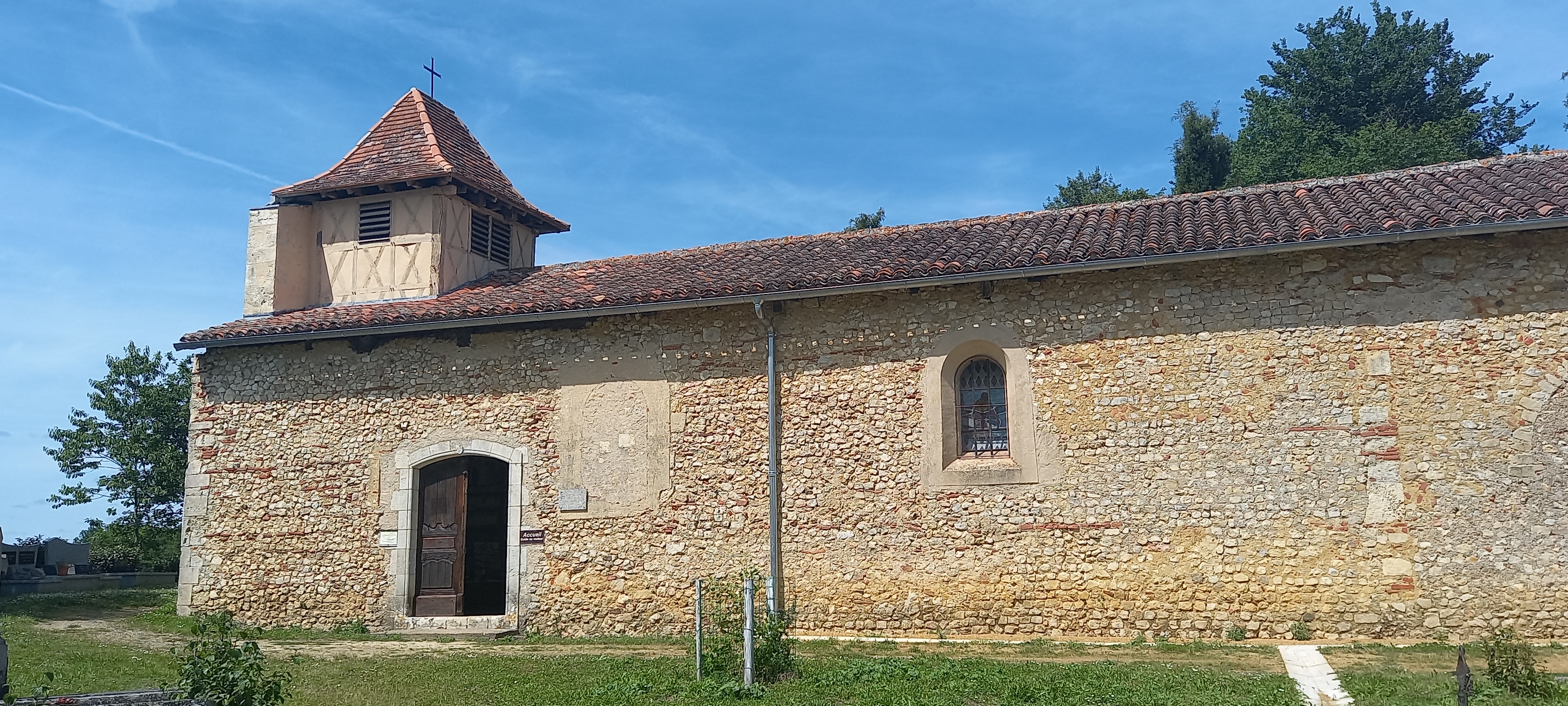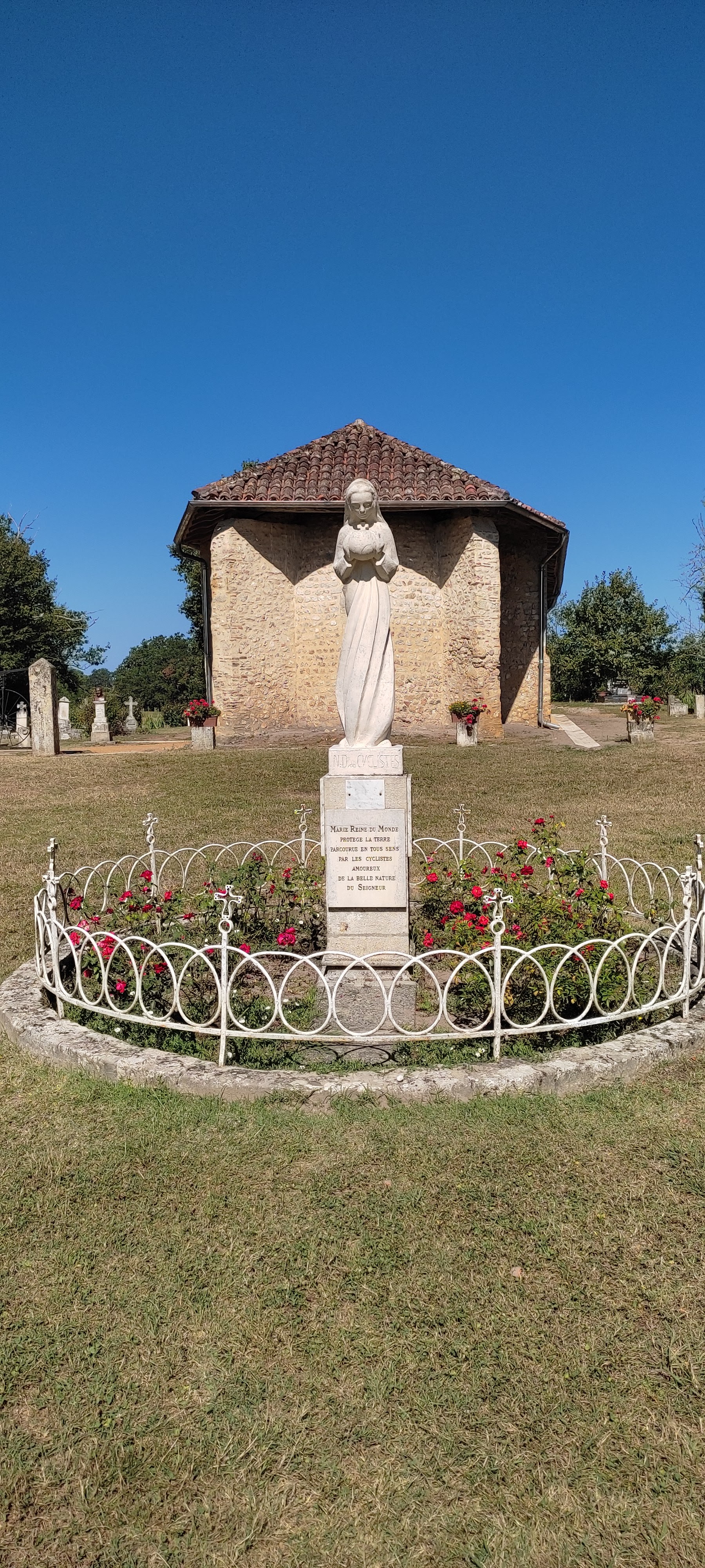 Sur le chemin de nos vacances, une halte en pleine campagne dans cette petite chapelle à la frontière entre l'Occitanie et la Nouvelle Aquitaine. Déjà visitée une après midi car ouverte à partir de 15h par des bénévoles très sympathiques. Petit parking fleuri bien aménagé pour se poser en vélo ou en véhicules avec abri et toilettes. Une exposition de maillots des plus grands cyclistes accumulée au fil du temps, des vélos qui tiennent trop de place...Bon endroit pour pique-niquer bien tranquillement. Poubelles dernier cri au bord du chemin d'accès. Bravo à l' association qui gère ce lieu pour passionnés de la petite reine. 🚲🚲🚲