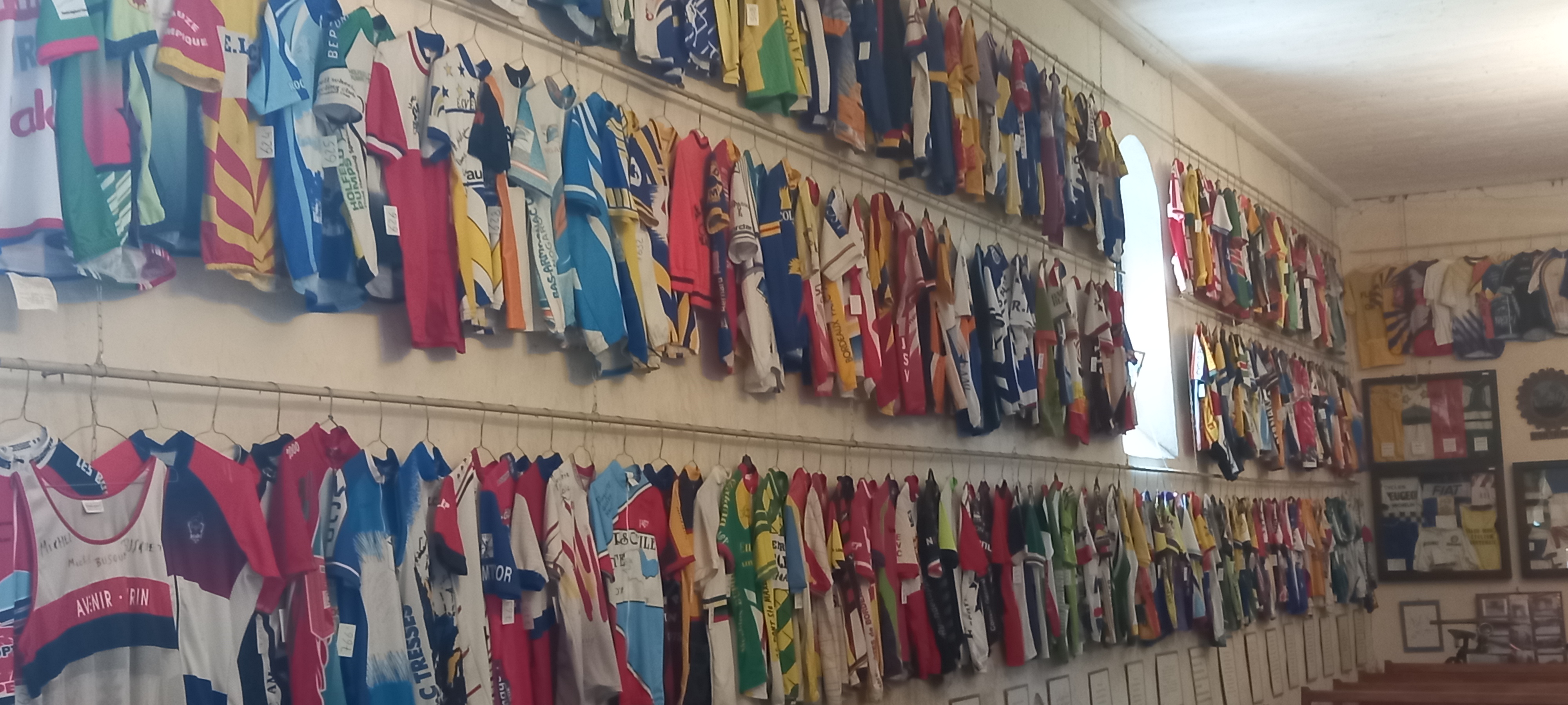Magnifique collection de maillots y compris ceux des plus grands champions.