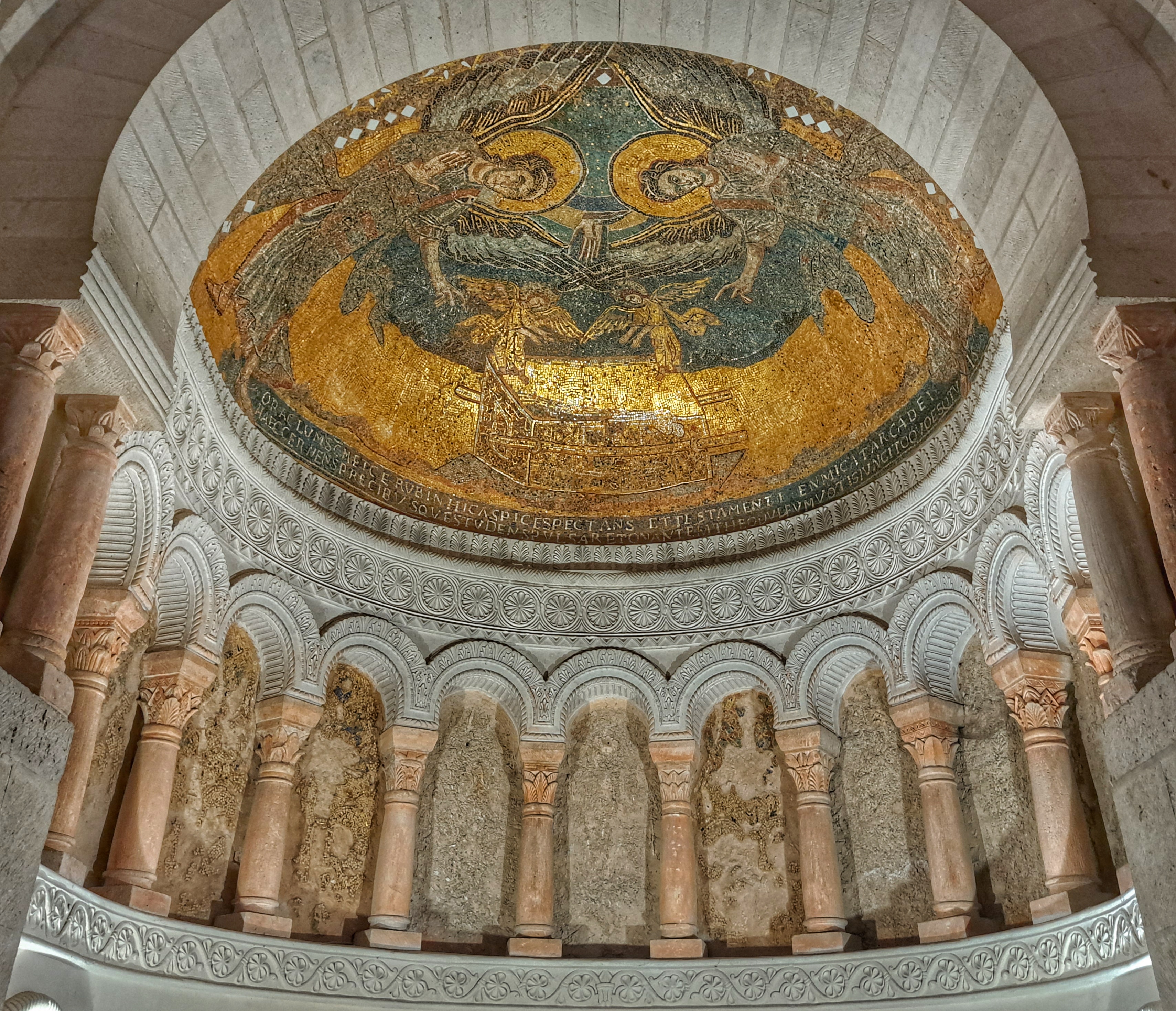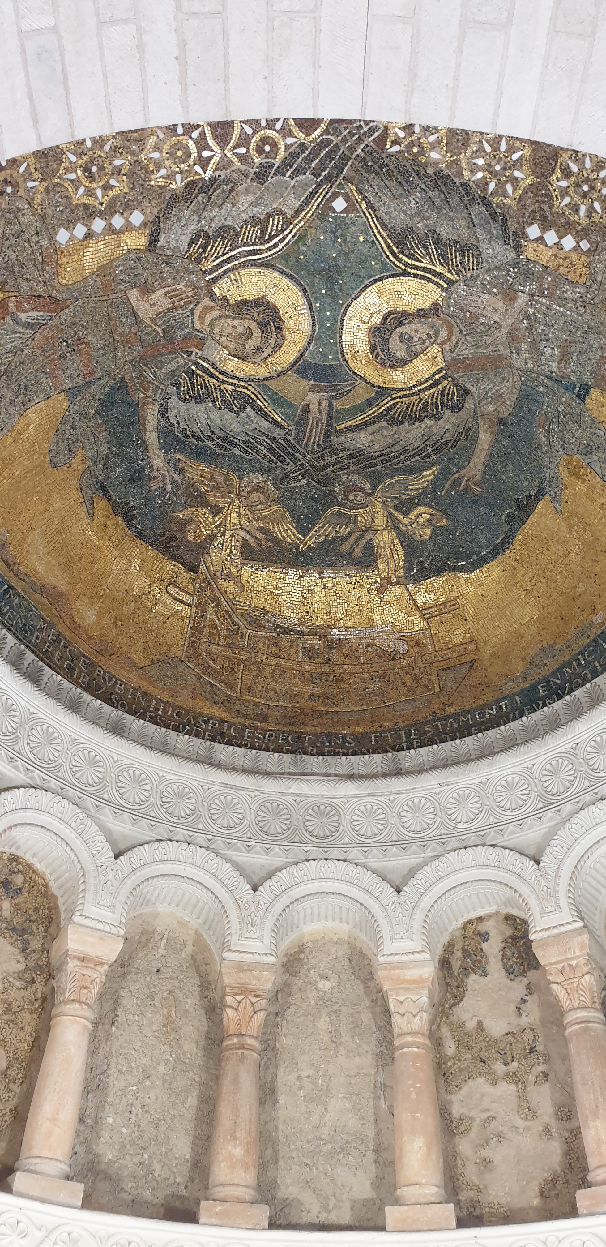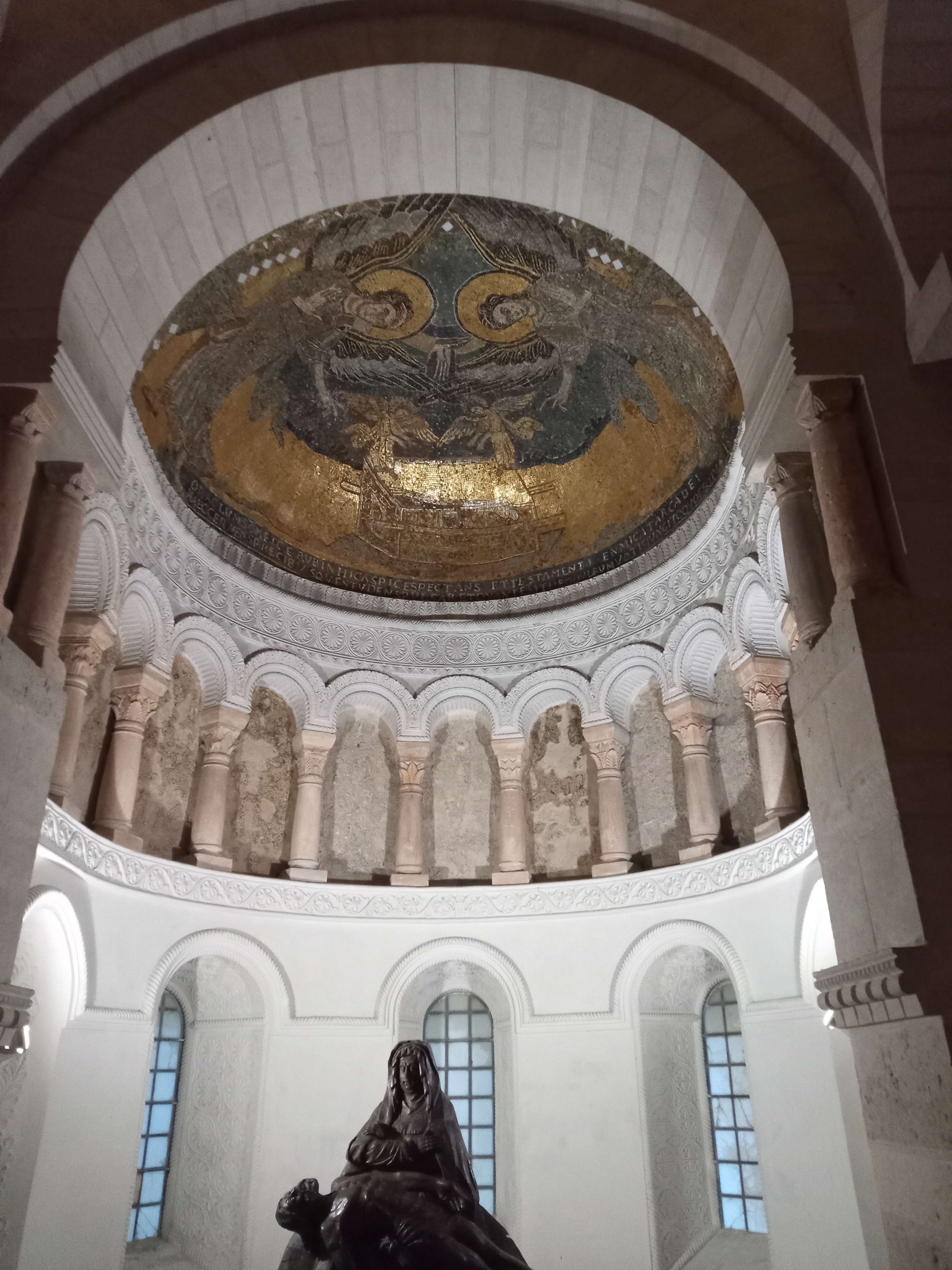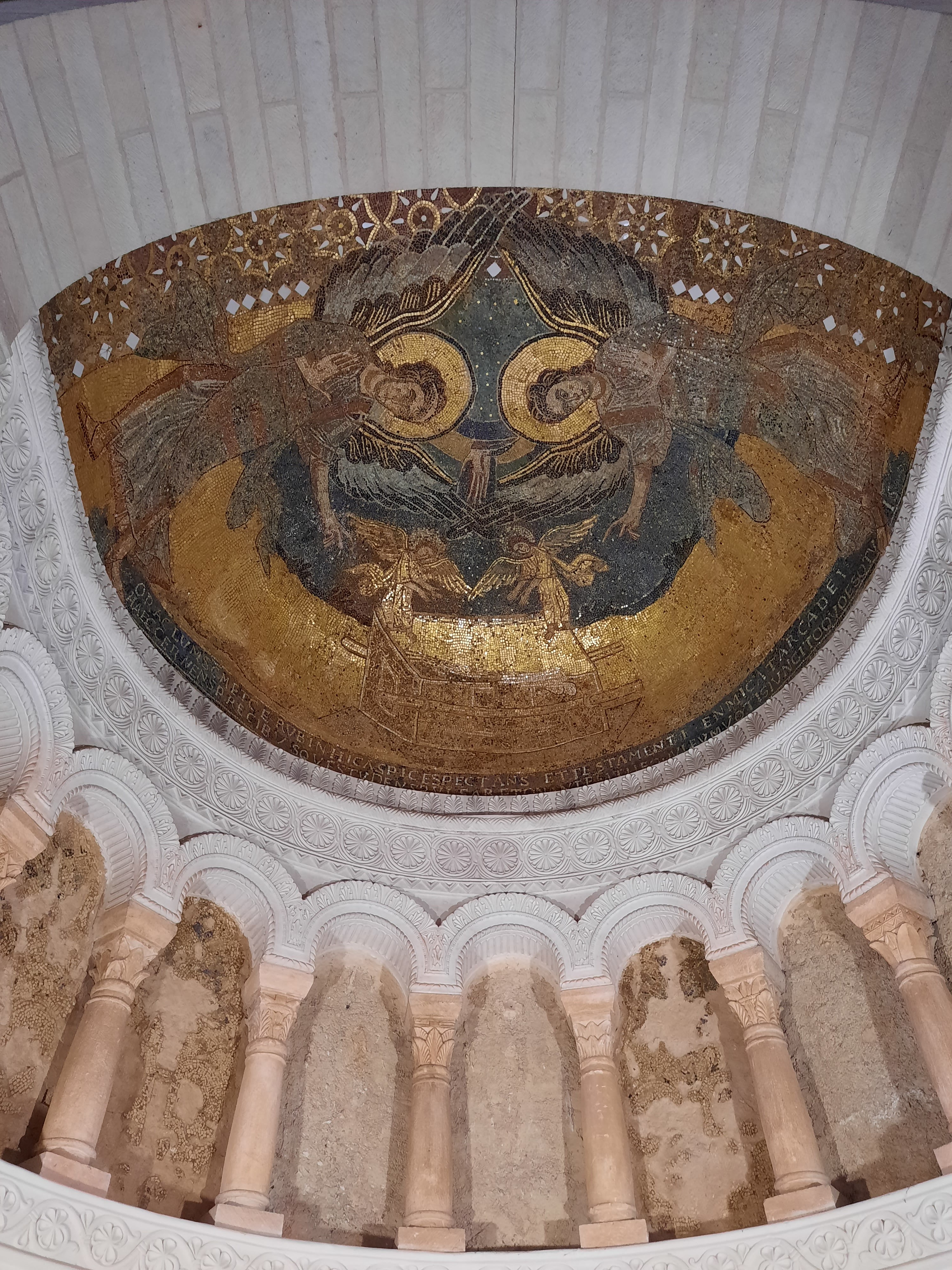 Très belle église. La mosaïque est vraiment étonnante. On voit rarement l'arche d'alliance sur une représentation religieuse. Le cadre nous ramène un peu à Indiana Jones😉