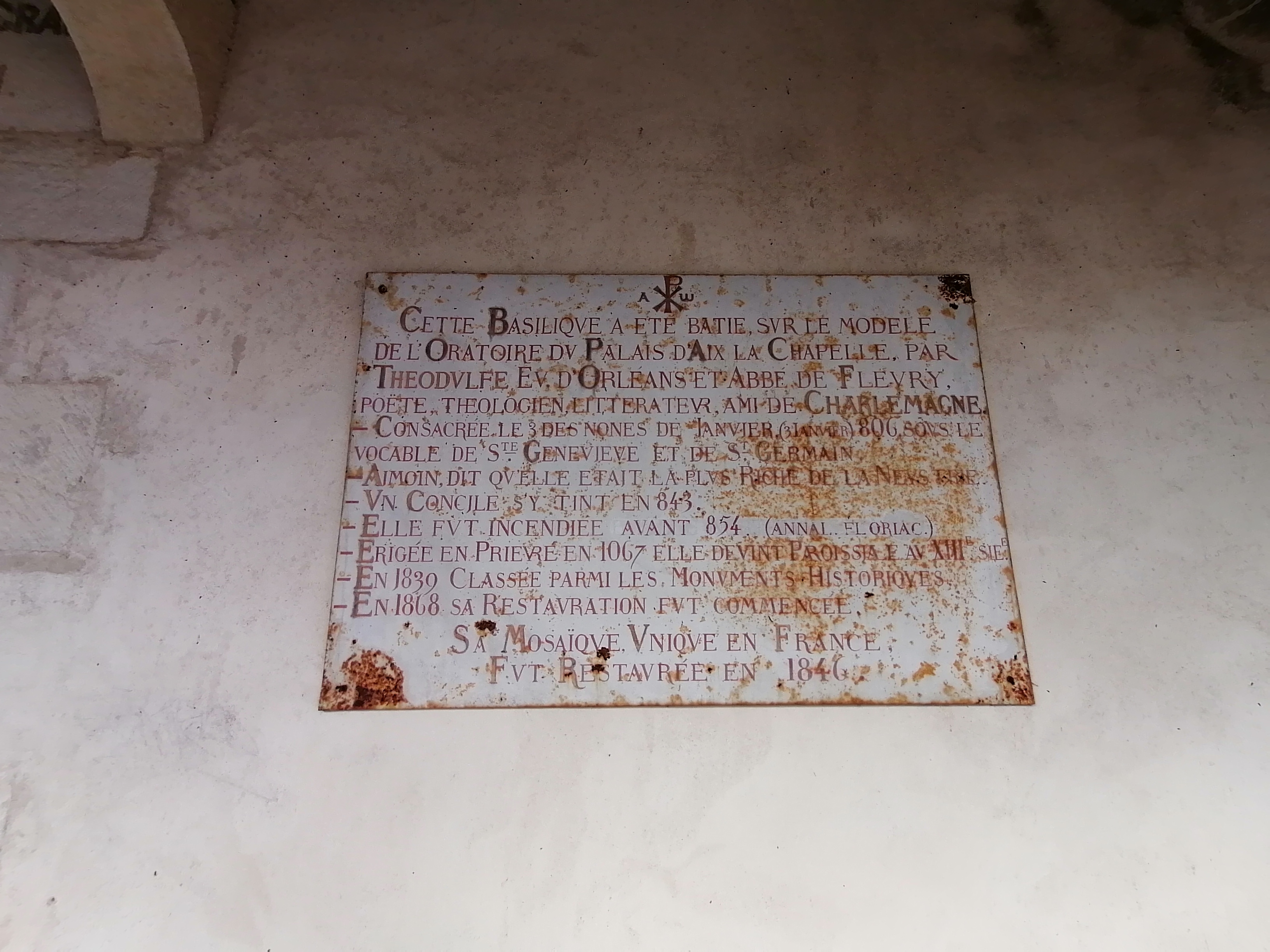 Une des plus vieilles églises de France, la mosaïque cachée durant la Révolution et redécouverte relativement récemment vaut le détour. Merci Théodulphe!