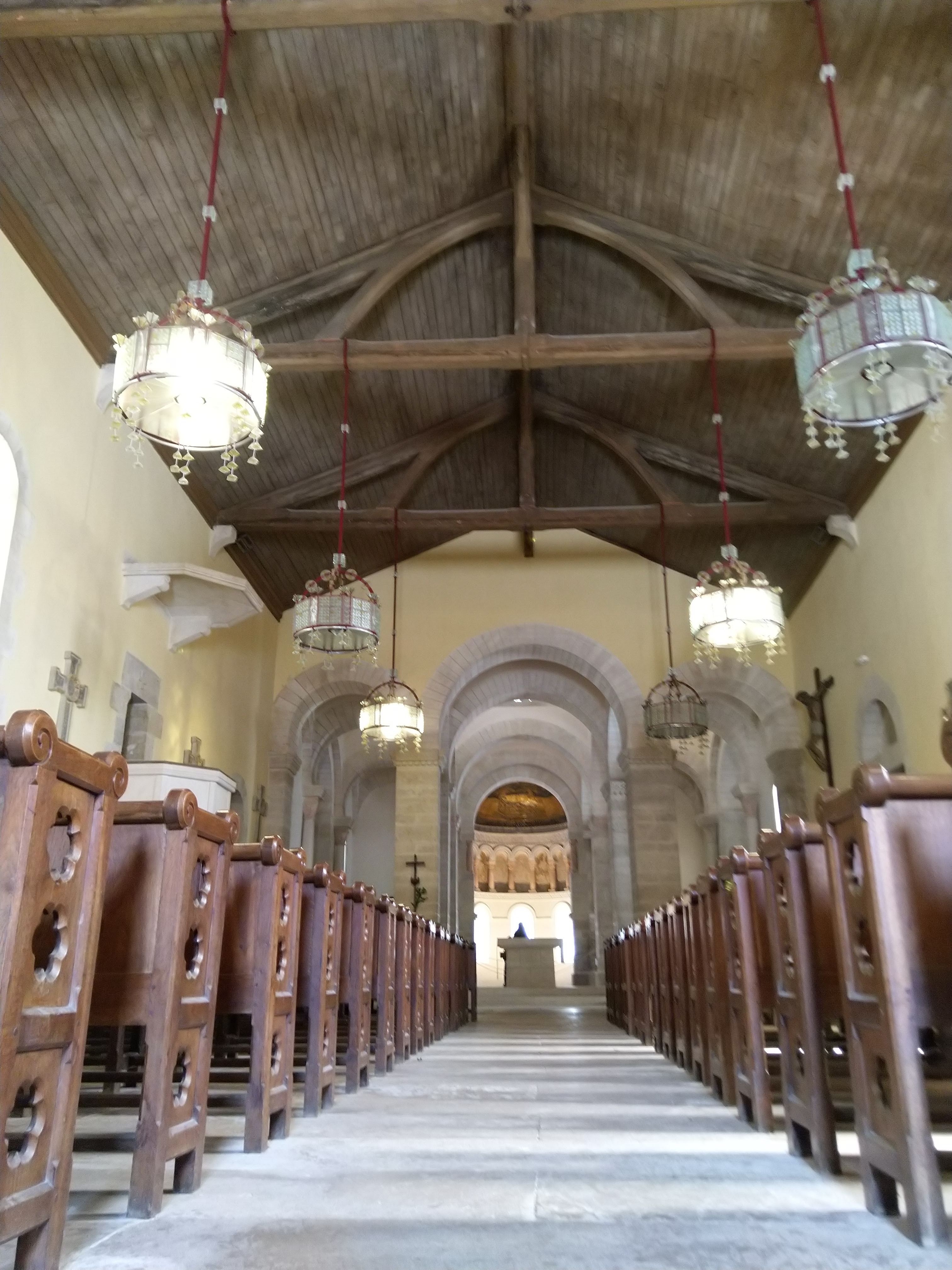 Eglise époque de Charlemagne, magnifique à l'intérieur comme l'extérieur petit sentier qui donne sur des jardins et bancs pour se poser. Vraiment à faire