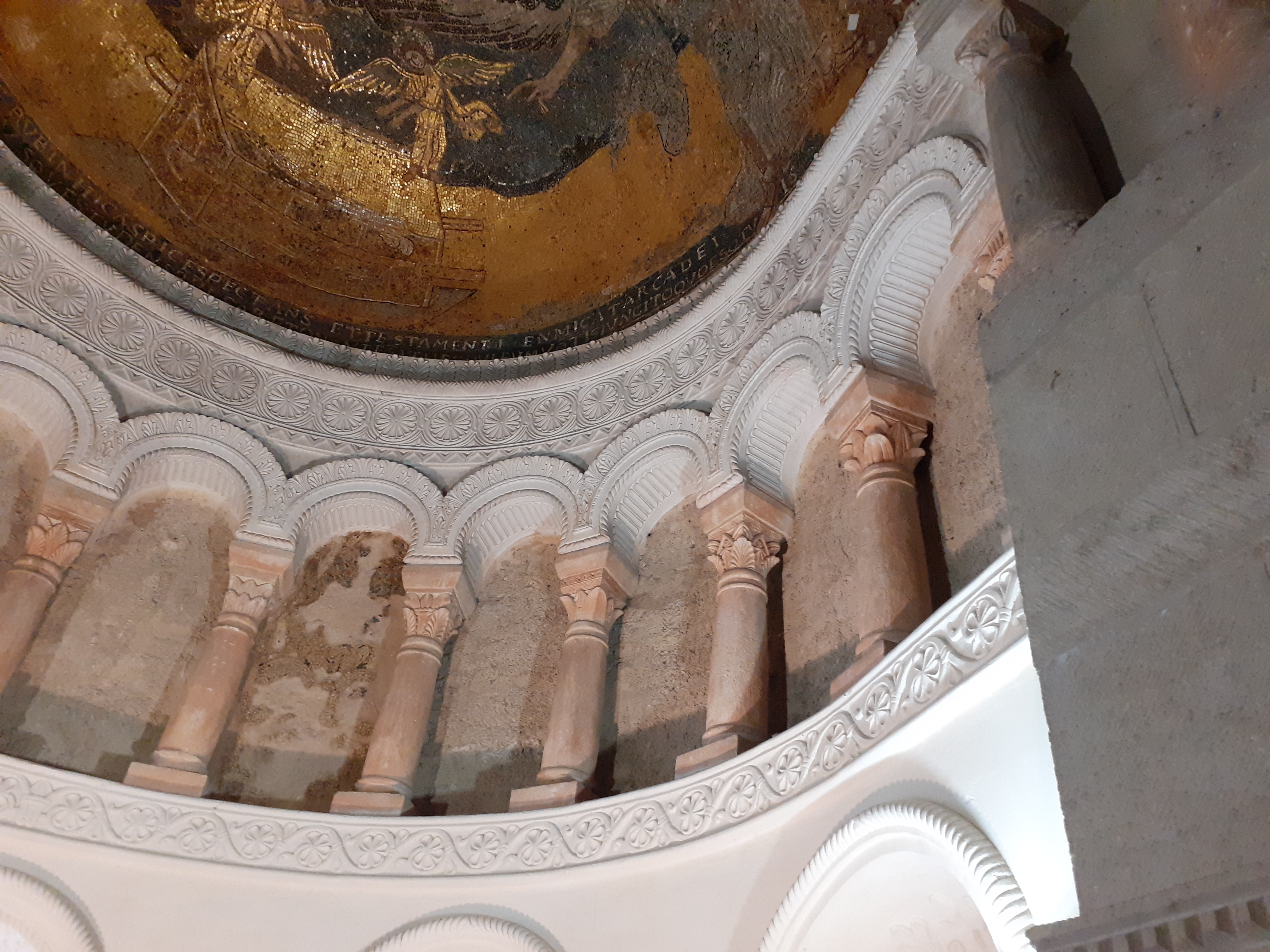 Magnifique exemple de l’architecture carolingienne Cet oratoire montre les restes de mosaïques d’inspiration byzantine Vaut le detour