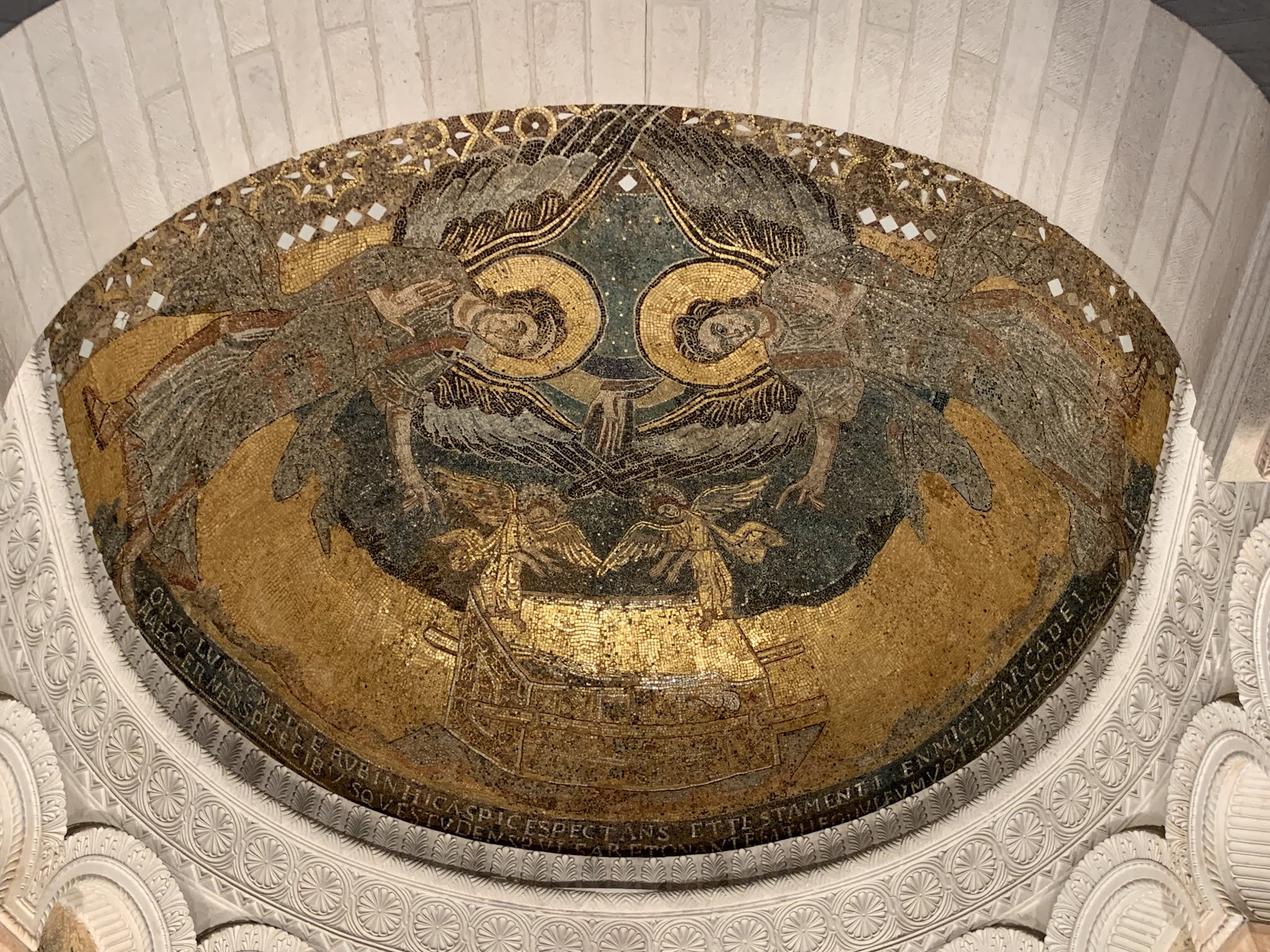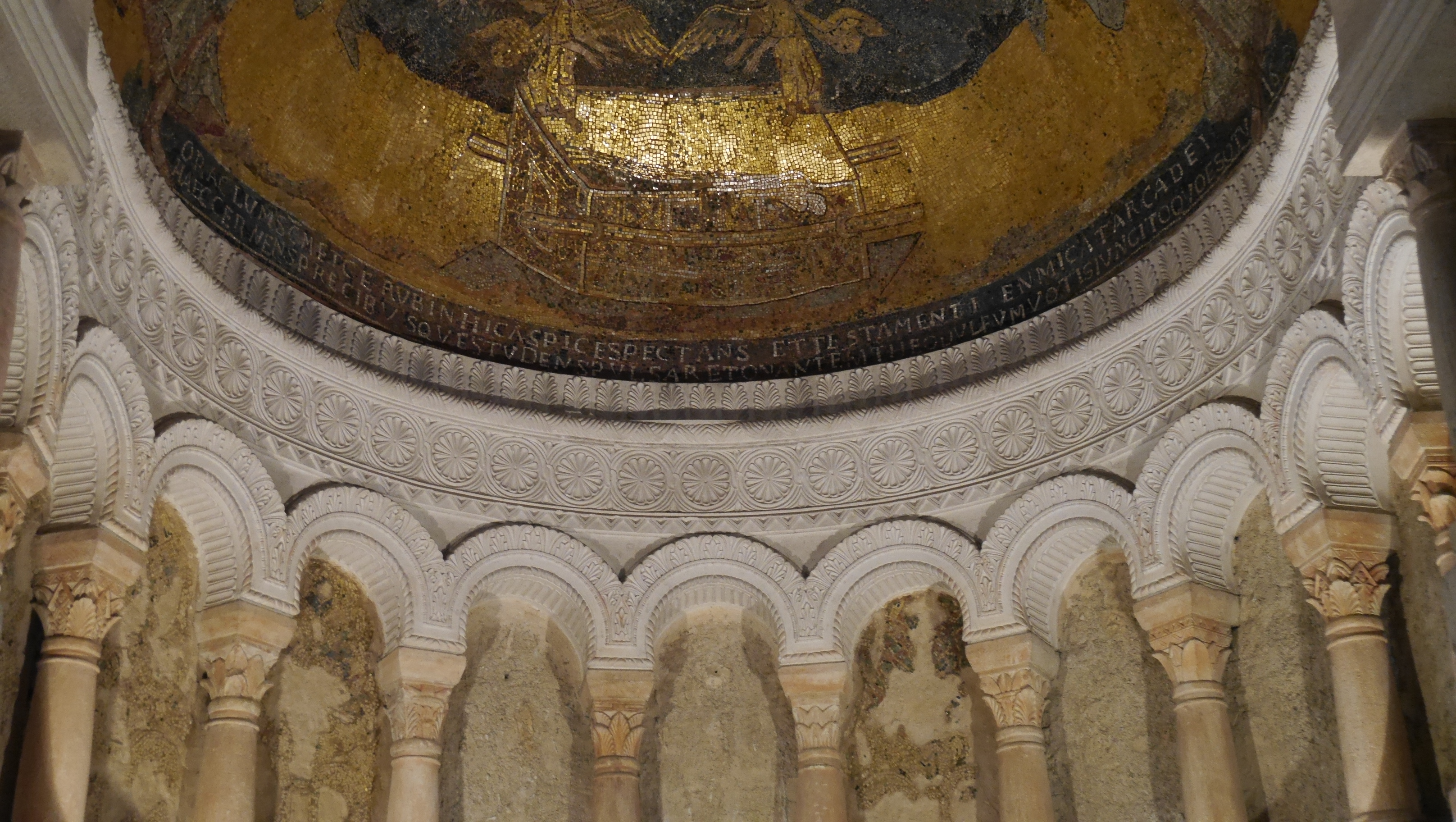 Sa voute en mosaïque (executée vers 806) est composée de milliers de cuves de verres . Entrée gratuite