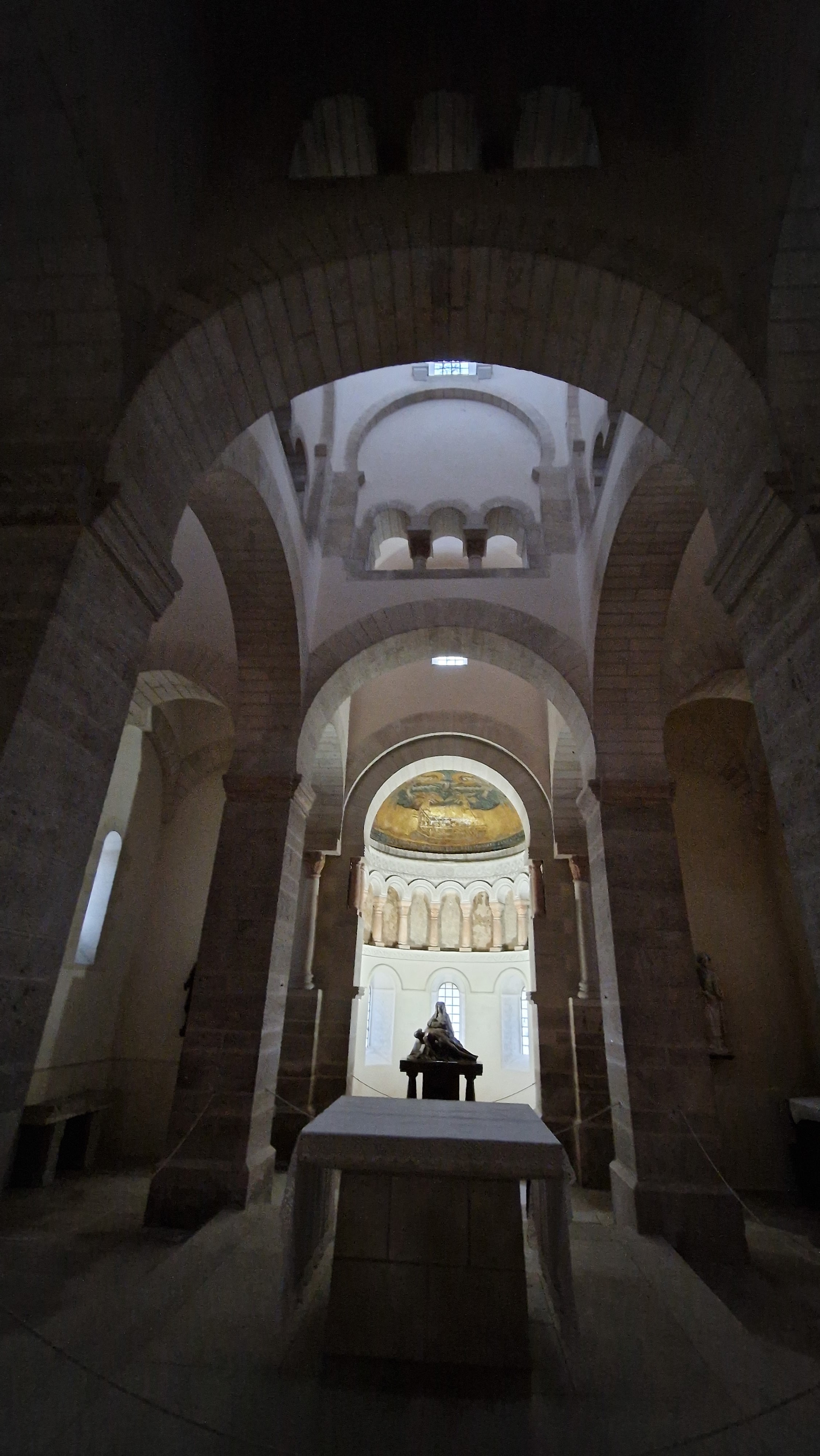 Outre l'exceptionnelle mosaïque absolument merveilleuse et rare, il convient d'admirer la disposition du fond de la nef qui est la partie d'époque carolingienne. Je ne m'attendais pas à trouver quelque chose d'aussi exceptionnel alors que je passais par hasard par là. J'inscrirais maintenant si je rédigeais un guide: vaut largement le détour. Cela fait parti des heureuses surprises que nous réservent les routes de France.