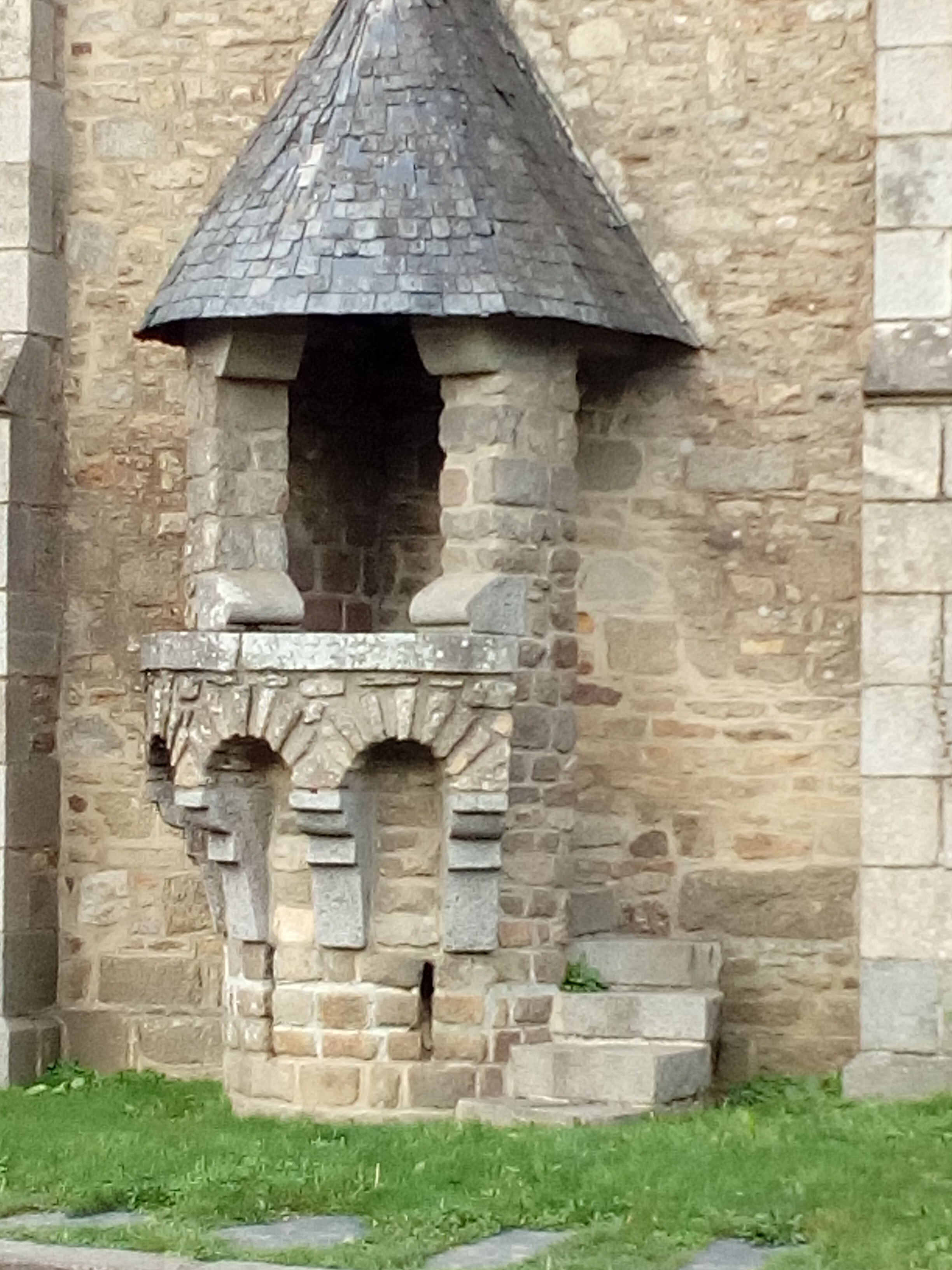 On peut remarquer la chaire qui se trouve a l extérieur de l église , elle est taillé dans le granit et surmontée d un toit en ardoises.
