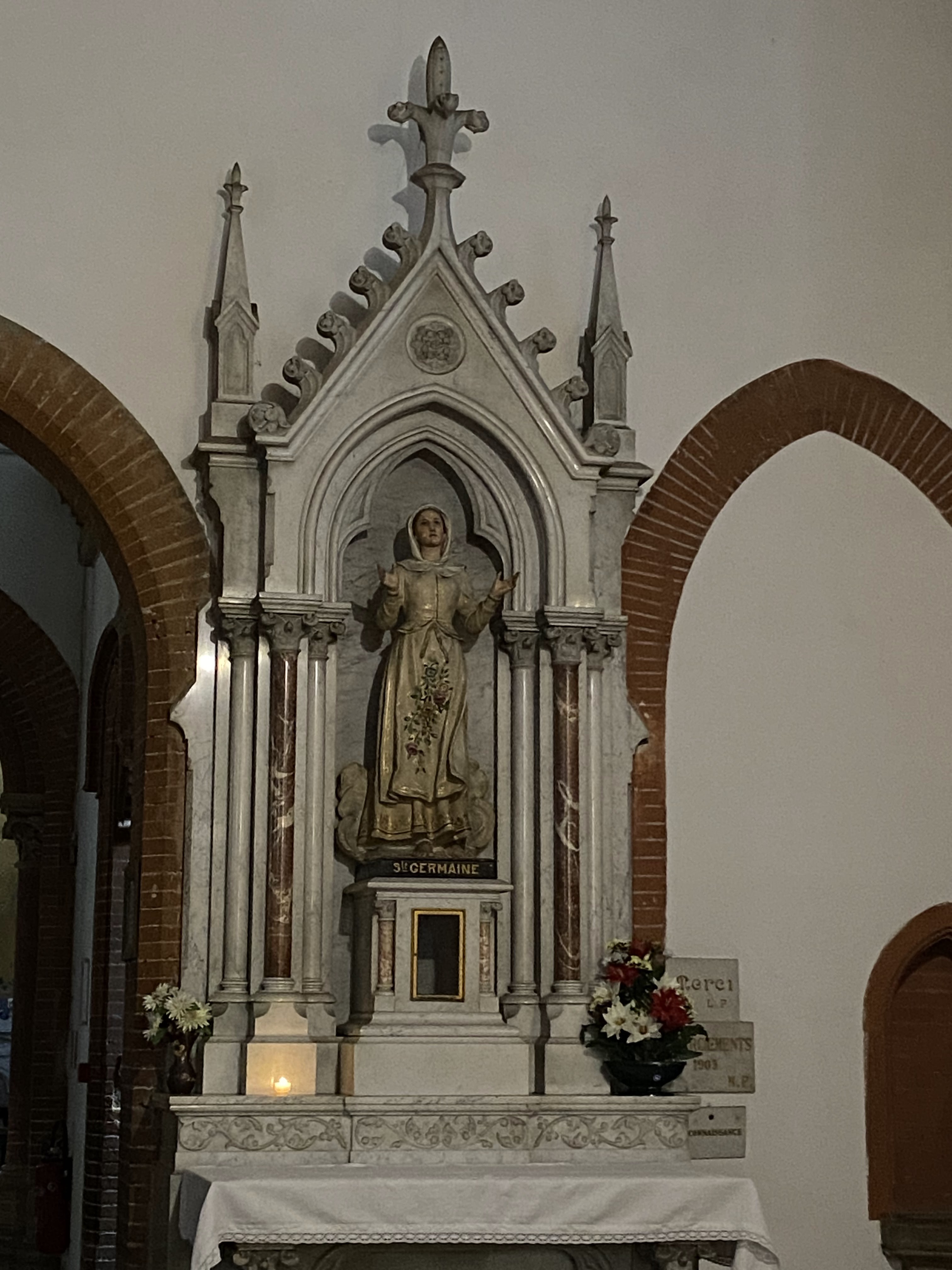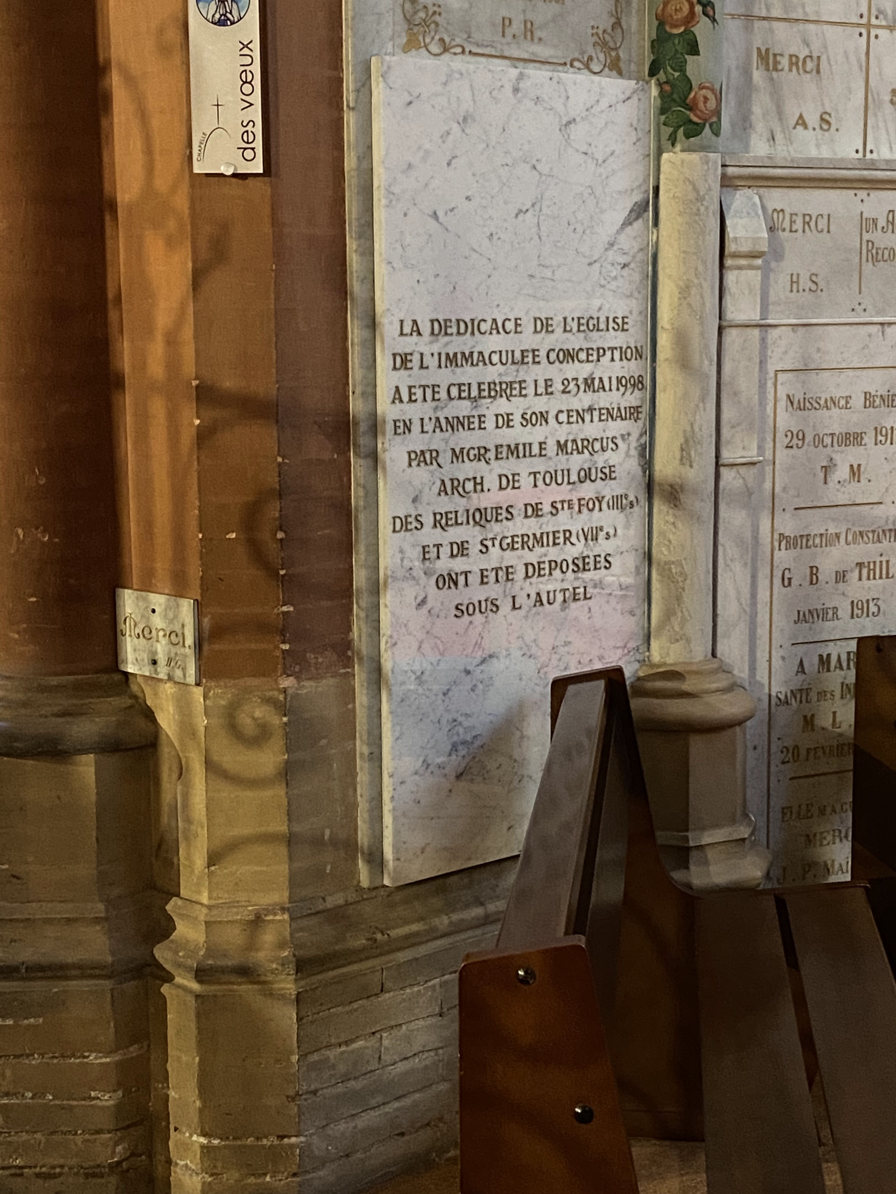 Une église simple mais vaste, sereine, joliment décorée , avec, sur la placette, une reconsitution en terre cuite de l'apparition de l'Immaculée conception à Bernadette Soubirous(d'où le nom de l'église, bâtie elle aussi en 1858); et surtout, pour le peu que jai vu, une paroisse et une communauté très dynamiques, pleines d'allant et d'initiative.