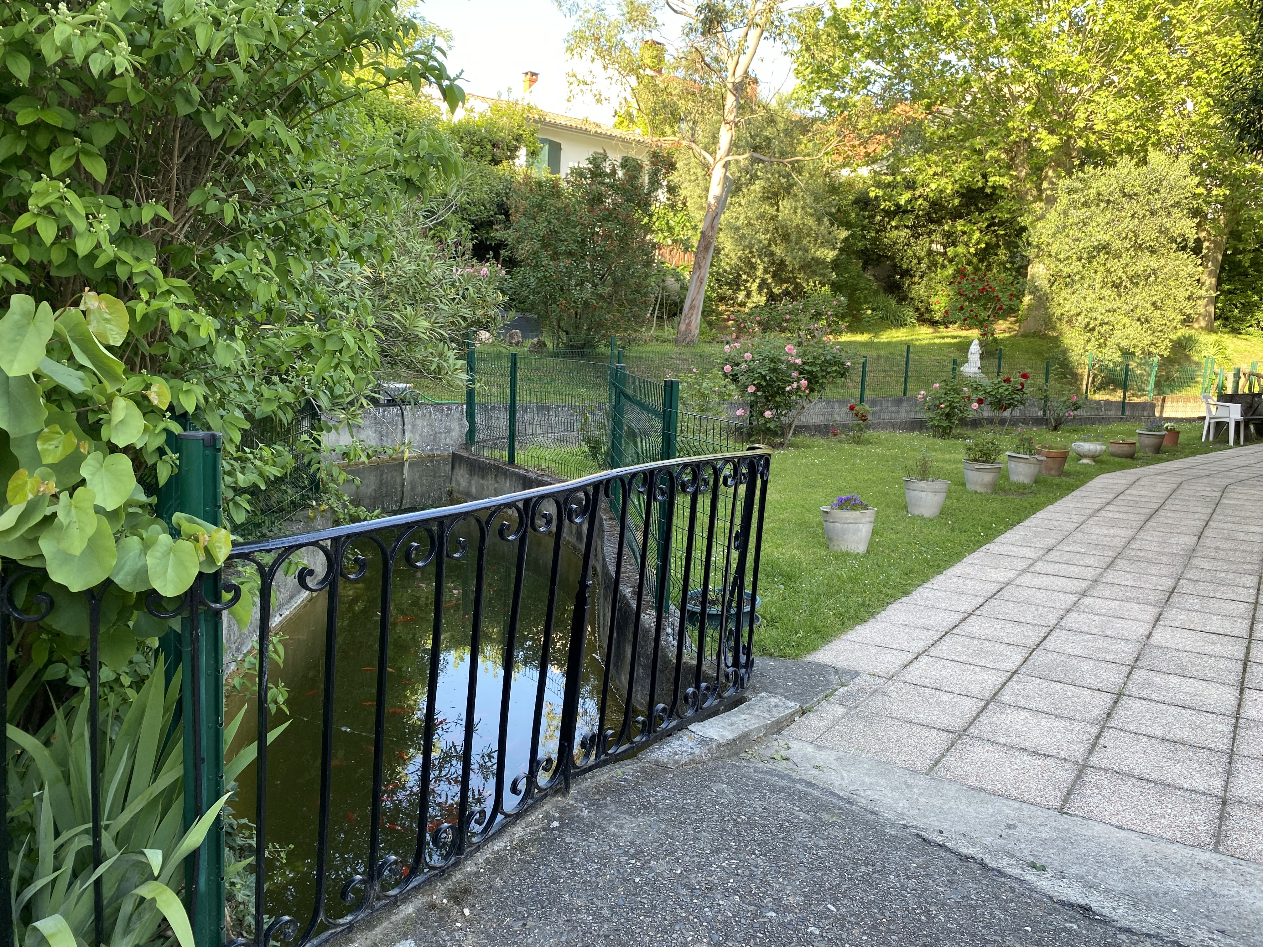 Très joli jardin entourée de nature, traversé par un joli étang à poissons ! Je recommande vivement !