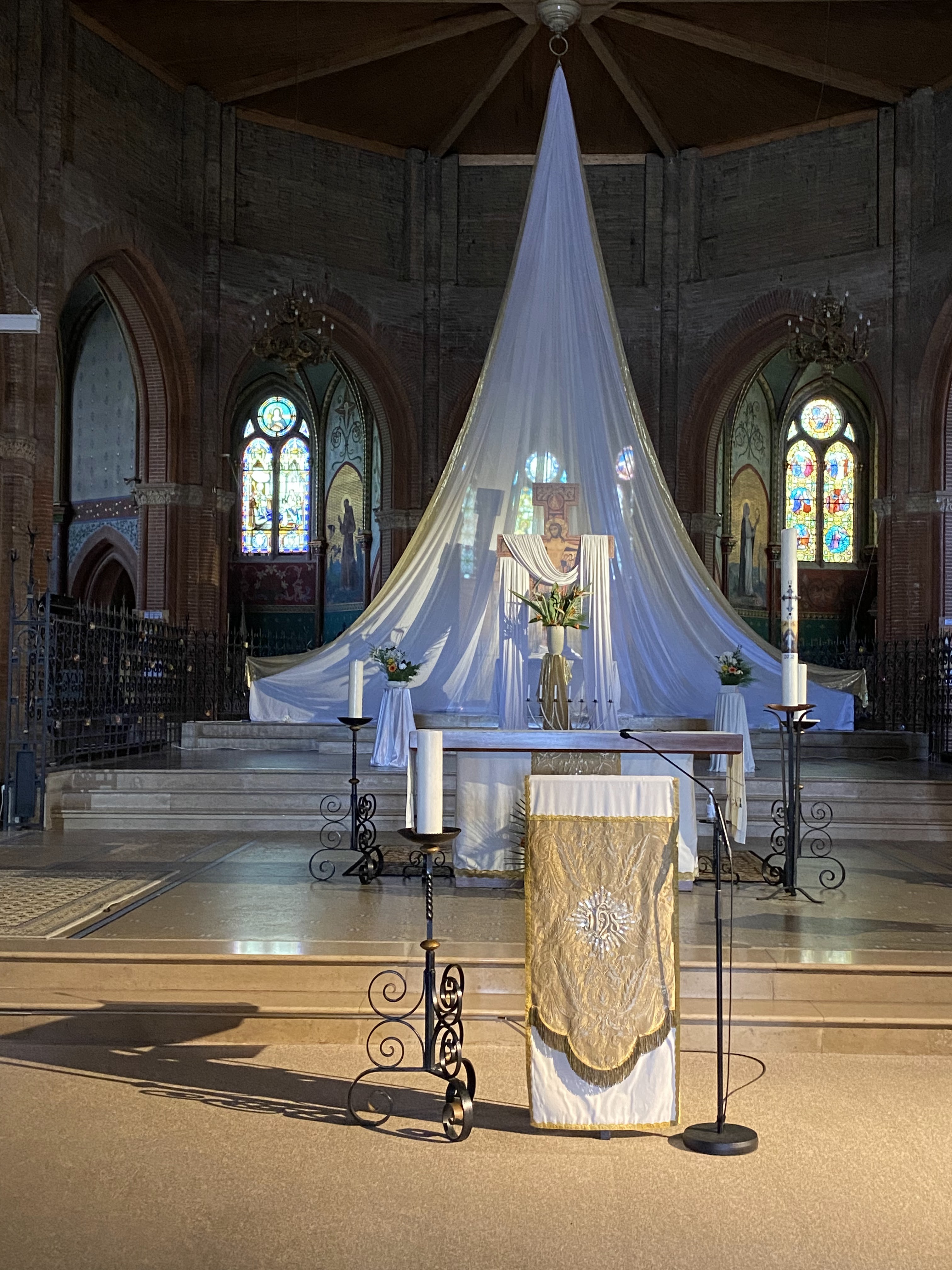 Je ne la connaissais pas, je l'ai découverte à la veillée Pascale, très belle messe menée avec ferveur,joie,entraîn . Très belle énergie de la chorale qui apporte une connotation jeune à l'ensemble. Magnifique édifice où la beauté des lieux entraîne dans la profondeur de la spiritualité. Je reviendrai la voir à la lueur du jour. PS ,je ne sais pas comment s'appelle le prêtre qui a mis autant de ferveur et d'humour dans la prêche mais grâce à lui ,j'ai eu envie d'échanger le fond de mon cœur avec un homme d'Eglise, ce que je n'ai pas pu faire depuis plusieurs décennies. Merci 🙏🙏