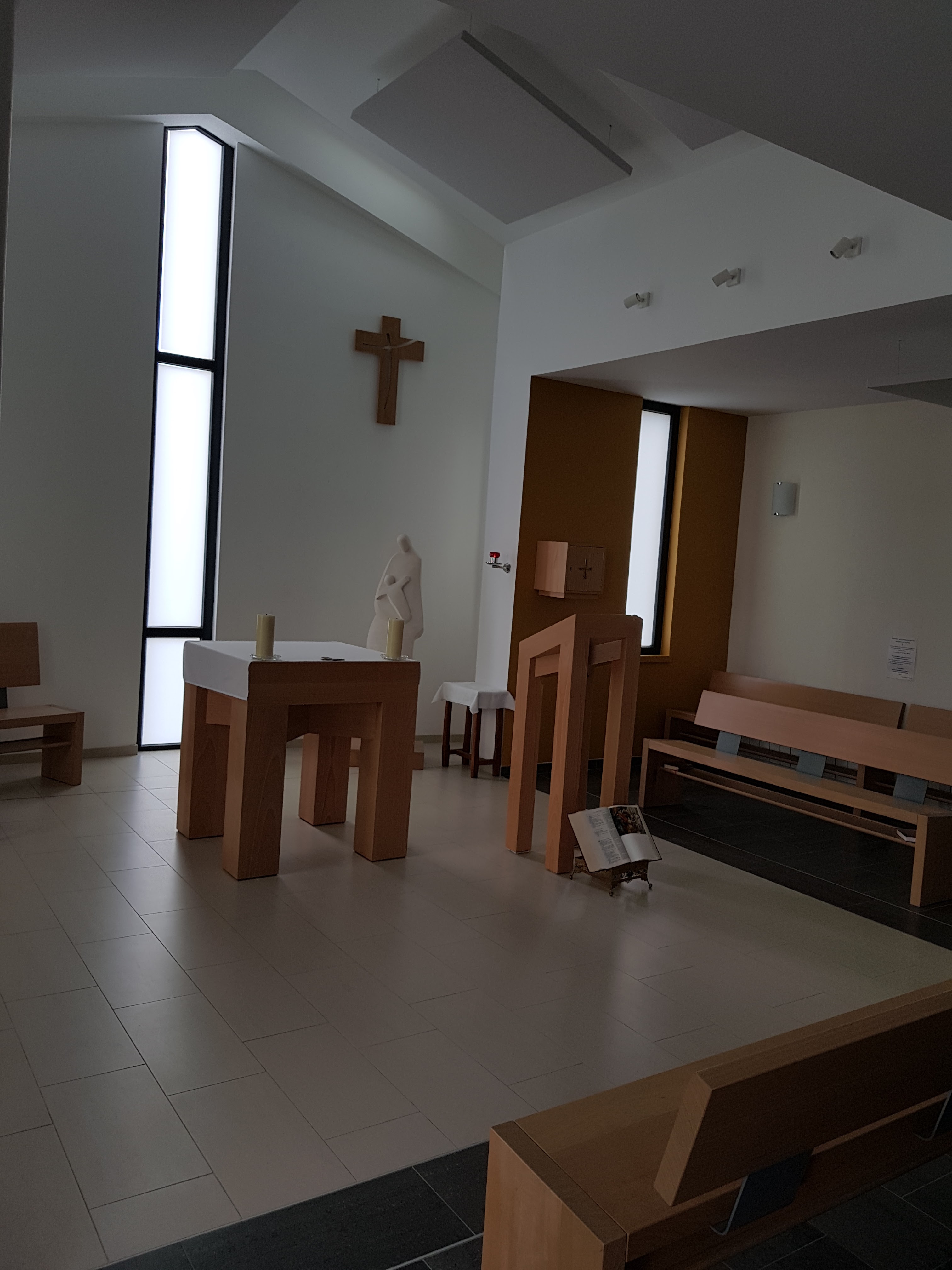 Belle chapelle pour messe, moderne mais priante