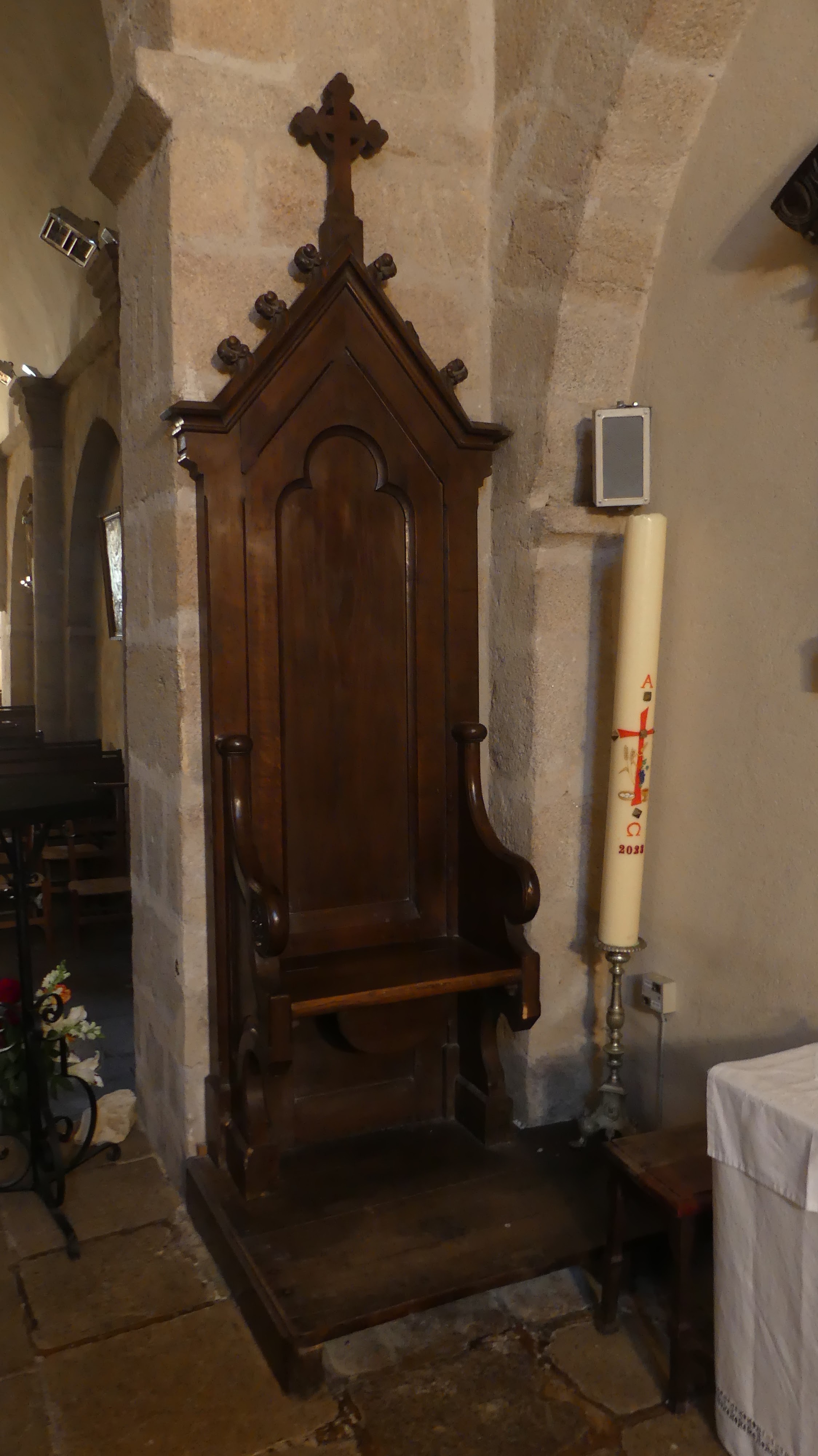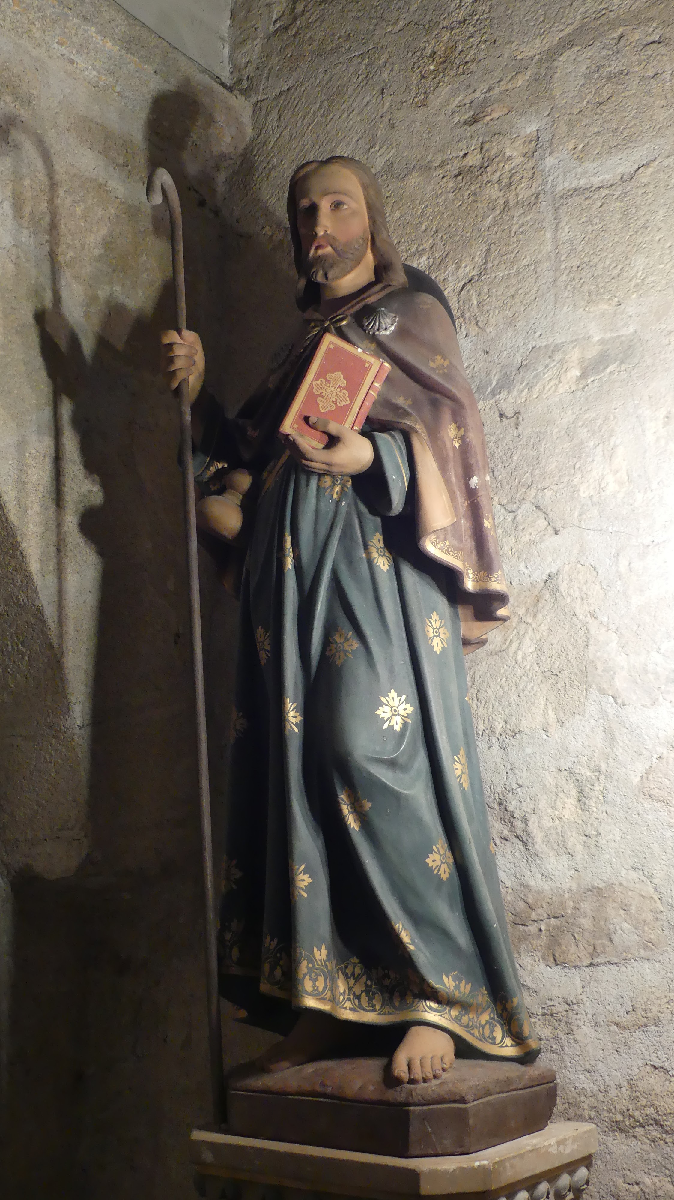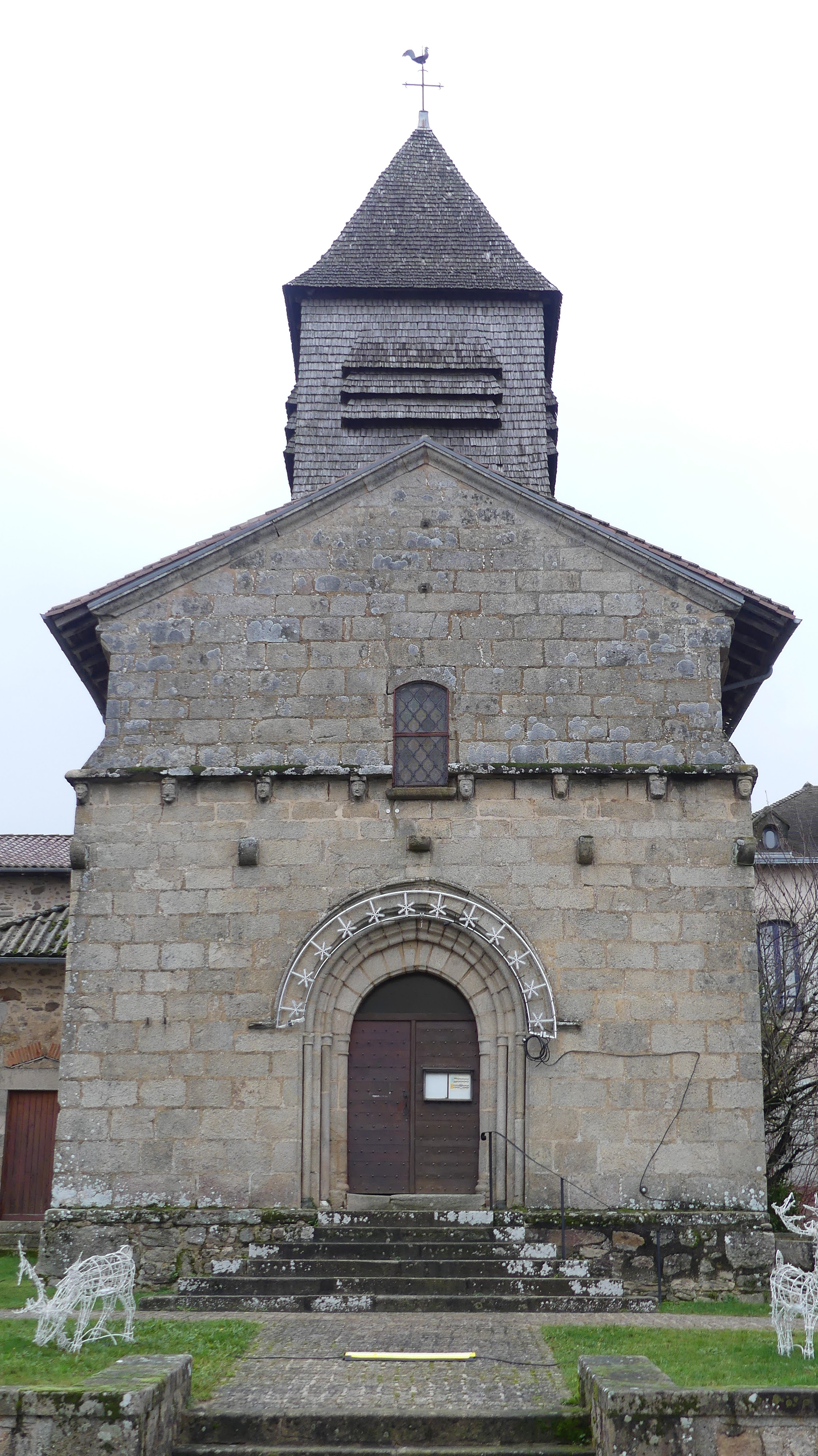 Son clocher de forme carré est recouvert de bardeaux en bois de chataigne. Sur la face principale au desus de la porte d'entrée apparait une ligne de visages scupltés. L'intérieur est très sombre, cepandant vous pouvez utiliser les lampes mis à diposition. Sur la droite, une petite chapelle est vouée au culte de la vierge Marie. L'autel tout en pierres comporte une fresque représentant le repas du Christ Jésus entourés de ses apôtres. Sur le côté, une niche fermée par une solide porte en fer contienant une relique.