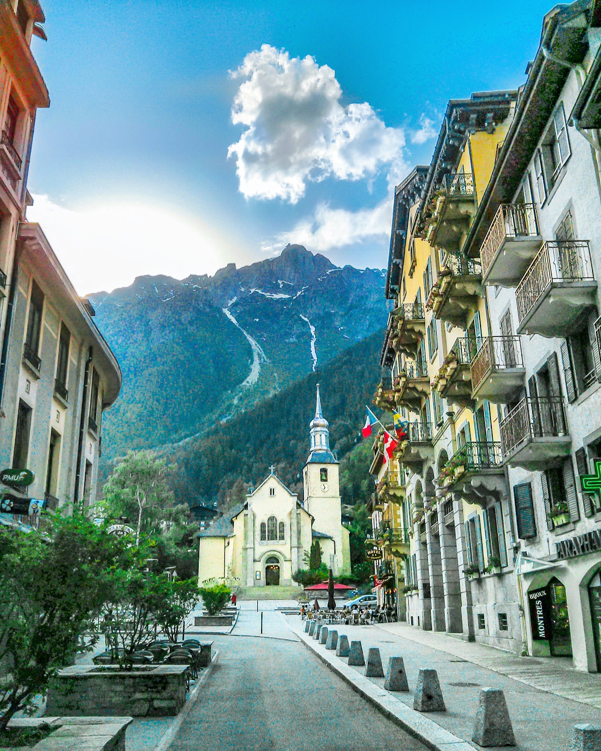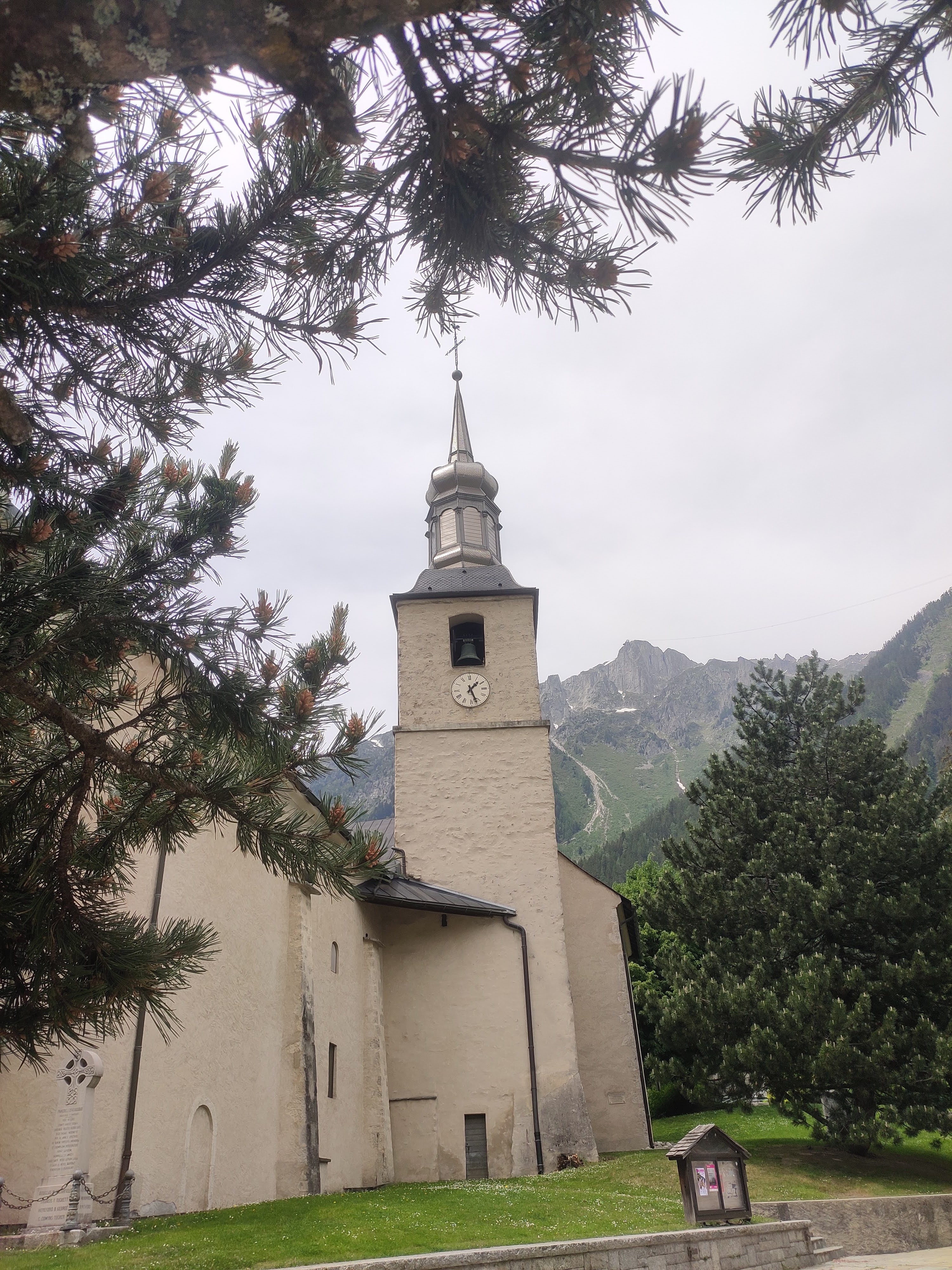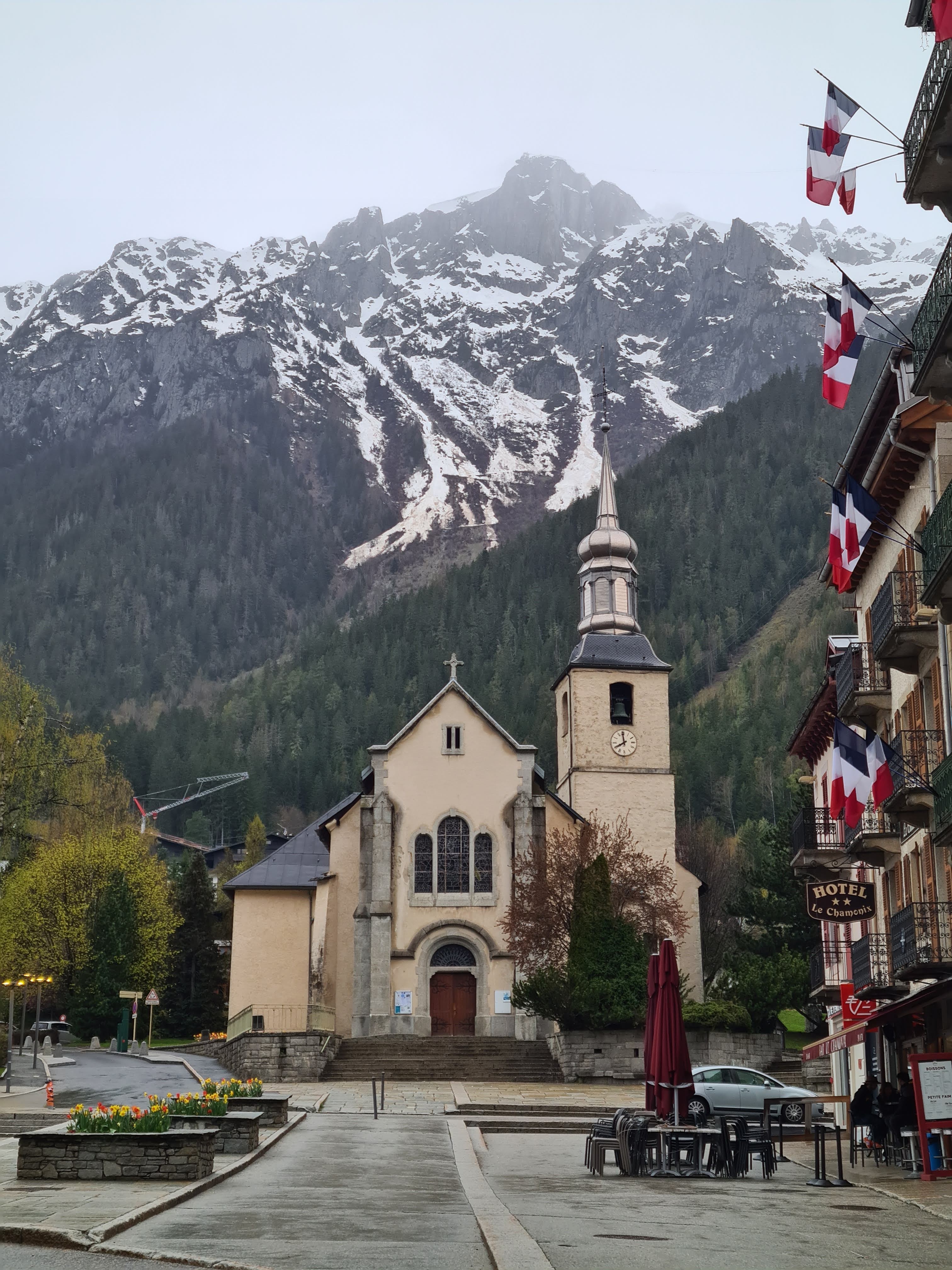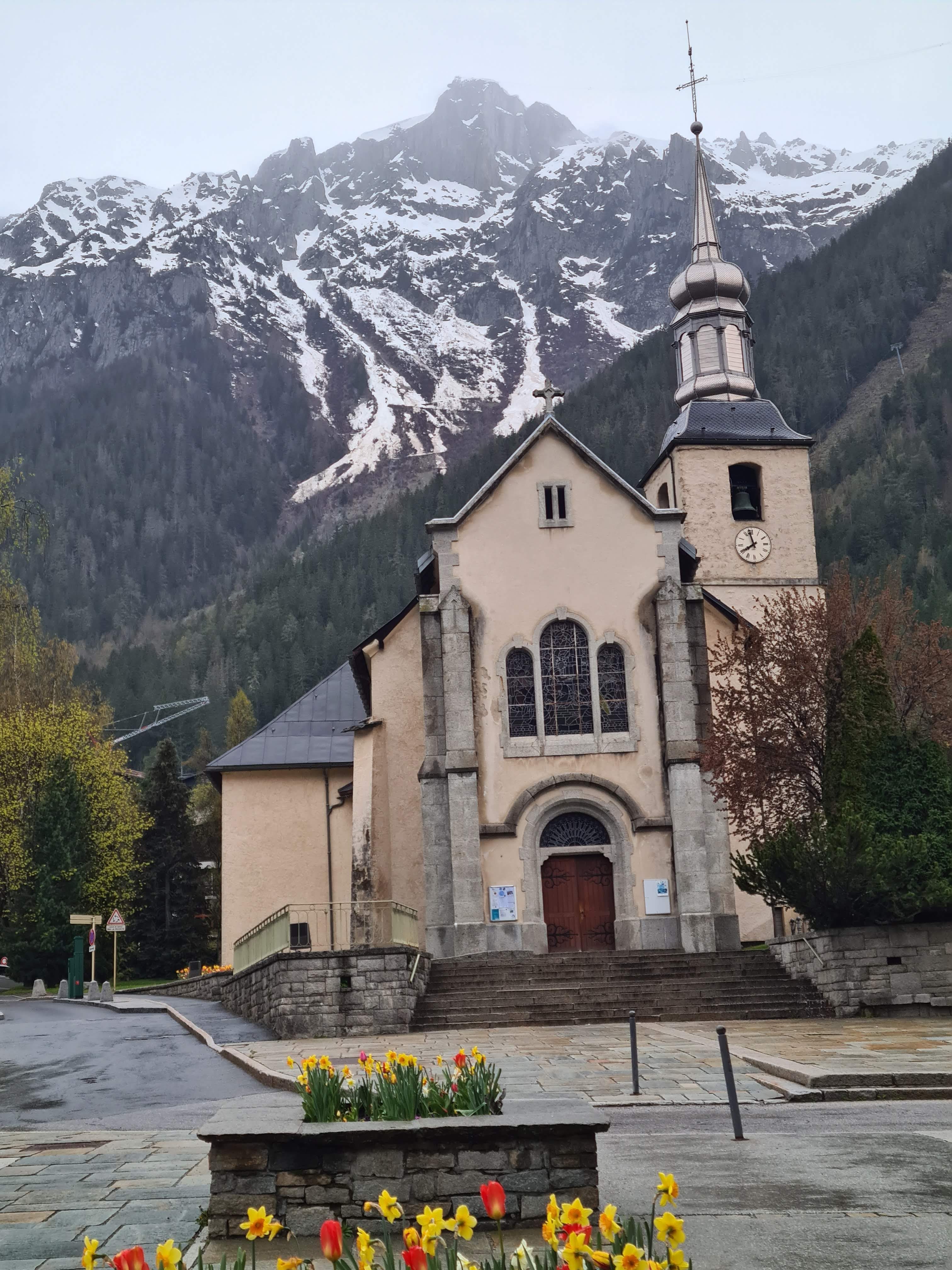 Ma place préférée dans Chamonix, la place de l’église avec cette vue imprenable sur les cimes et le Mont Blanc, à deux pas de chez moi. L’intérieur de l’église semble avoir été restauré et bien entretenu. Ses cloches rythment l’ambiance de Chamonix. J’adore !