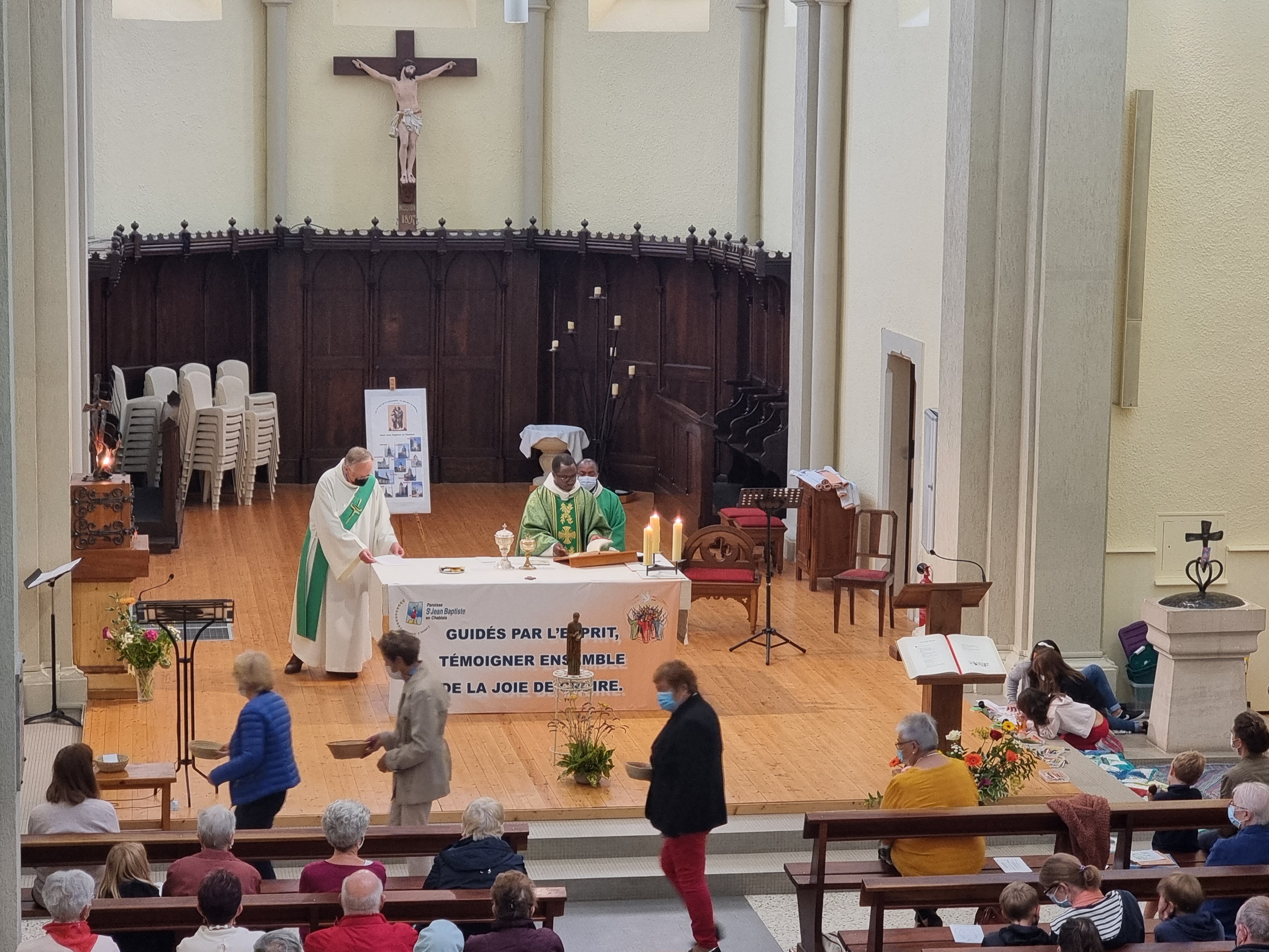 Belle église rénovée très simplement. Peut accueillir beaucoup de monde.chorale présente à chaque office. Ce dimanche à l'occasion du changement de prêtre, un groupe est venu animer qq minutes dans un rythme entraînant