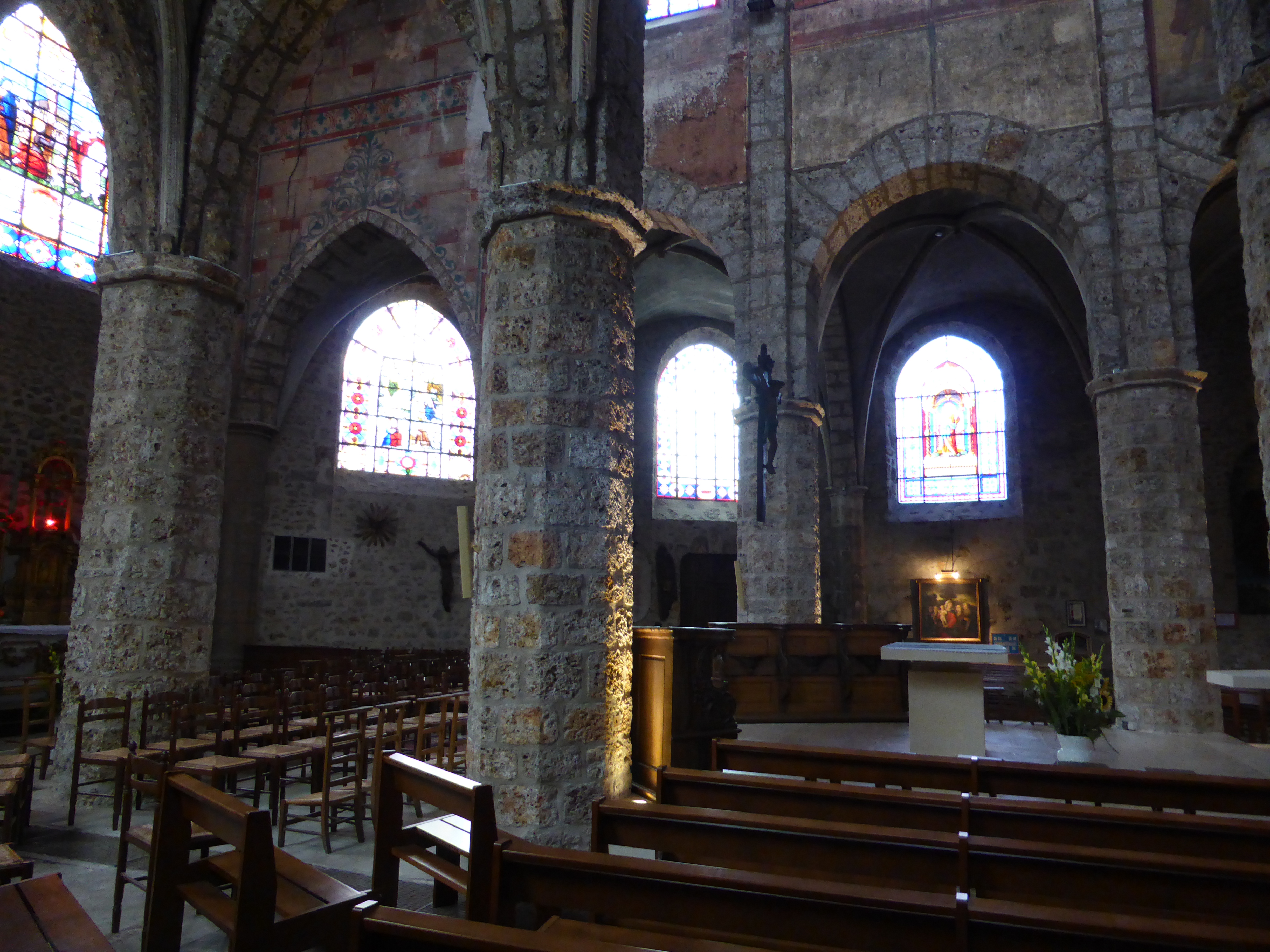 Très belle église romane, beaux vitraux et fresques
