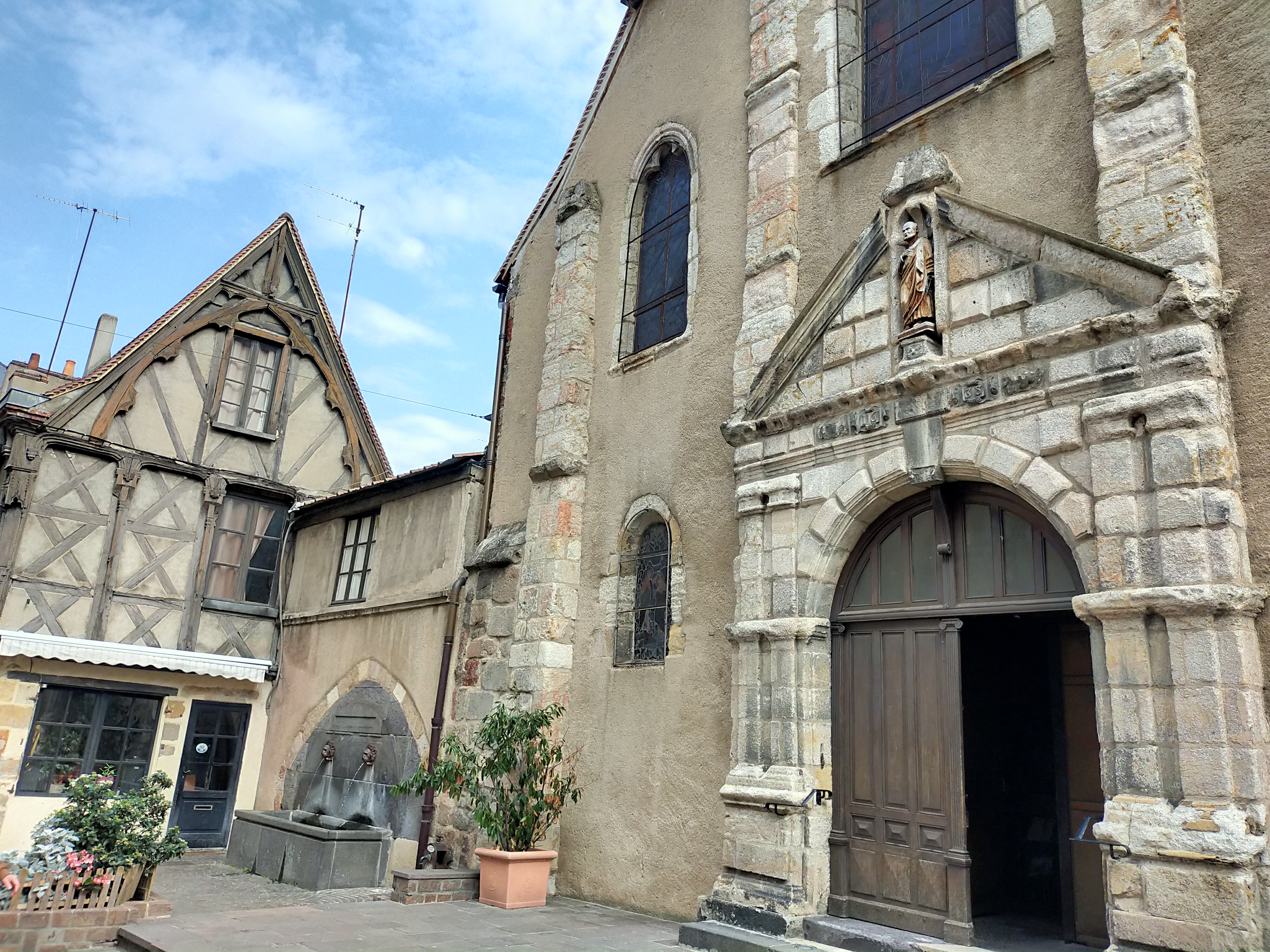 J'ai adoré cette église, habité par un étrange ressenti comme si elle était habitée ou imprégnée par la présence des fidèles. Une église sombre mais qui m'a impressionné tant elle est propice à la méditation ou la prière. Elle contient beaucoup de jolies choses. Une croix en pierre du 14ème siècle, plusieurs sculptures anciennes et de magnifiques vitraux. Mélange de styles roman et gothique, cet édifice, situé dans le quartier médiéval de la ville, est entouré de maison à pans de bois, de fontaines, etc... à visiter impérativement.