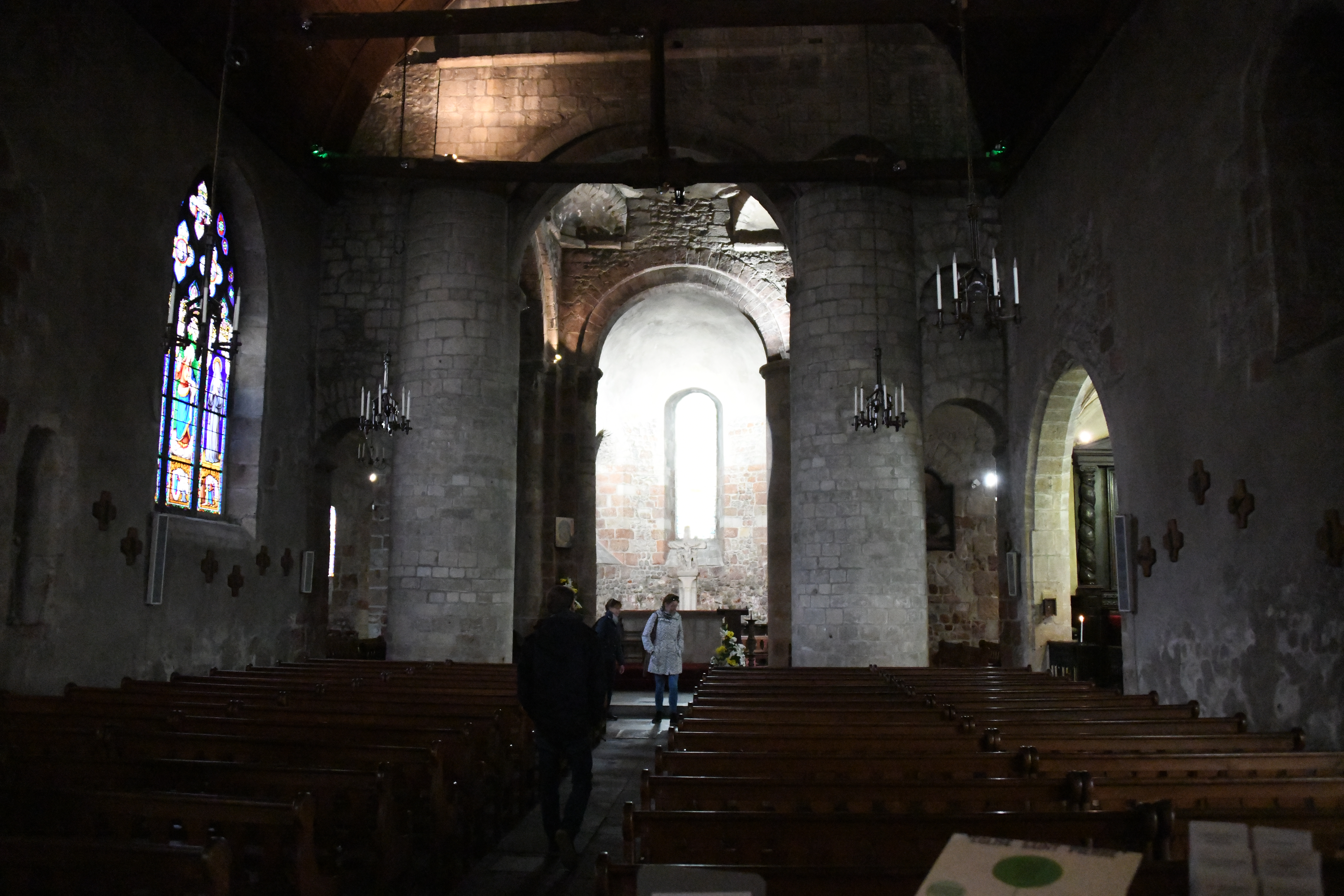 Très belle église de pierre avec plafond en bois. Beaux vitraux plus ou moins anciens.
