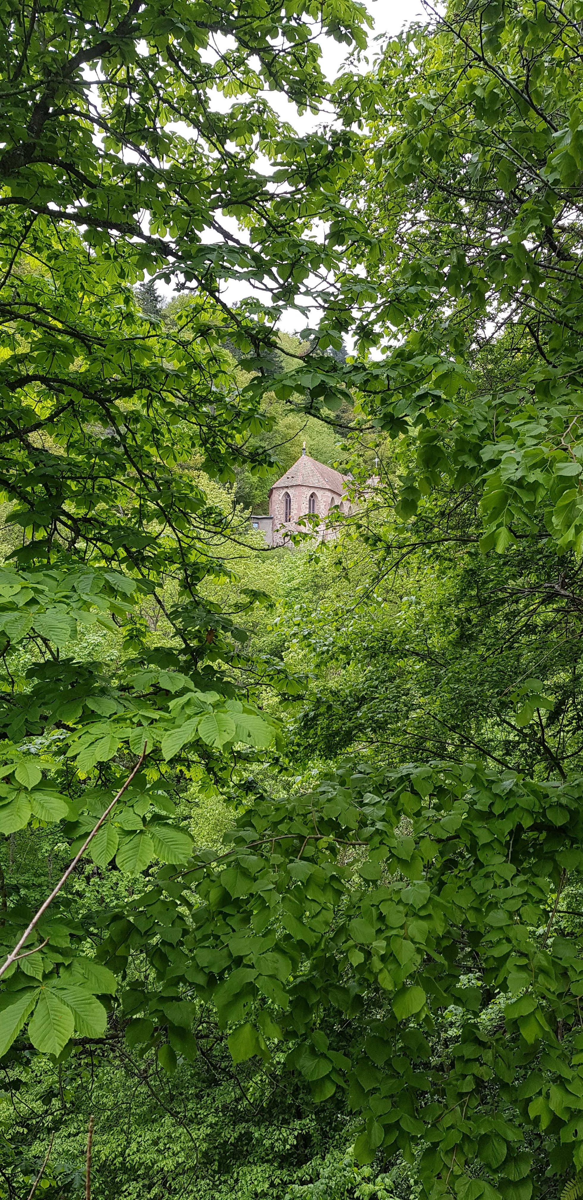 Calme, très jolie église du XIII siècle, en pleine forêt avec un peit ruisseau qui gargouille et des vues de grandes beautés tout au long des 12 stations du Christ