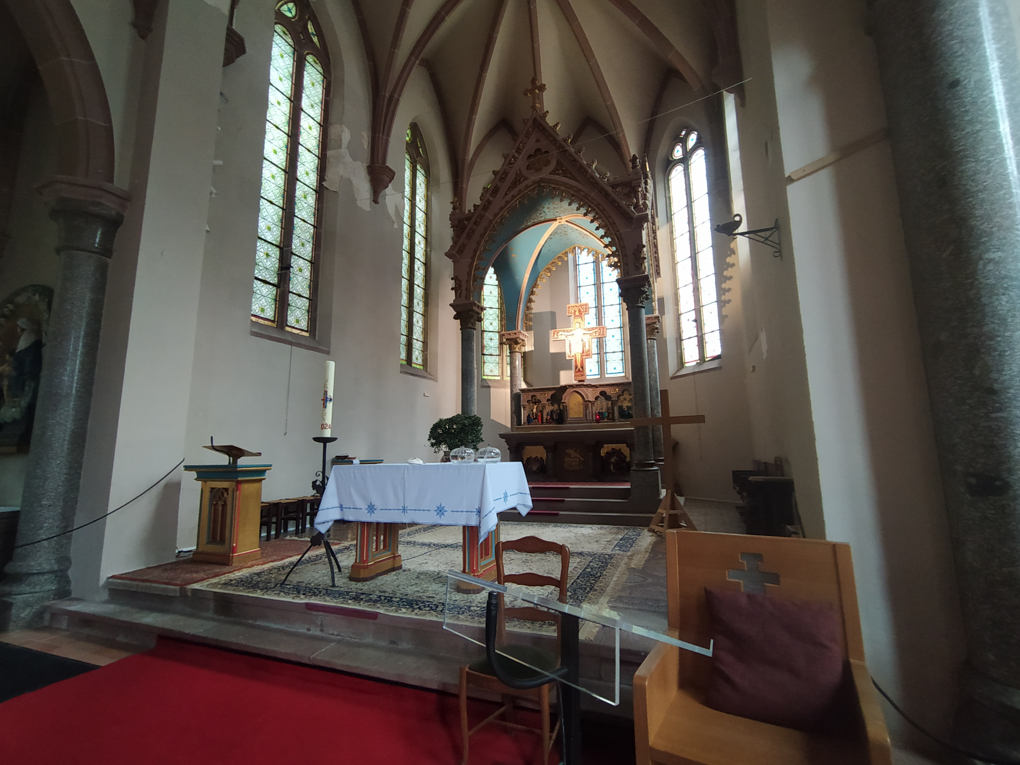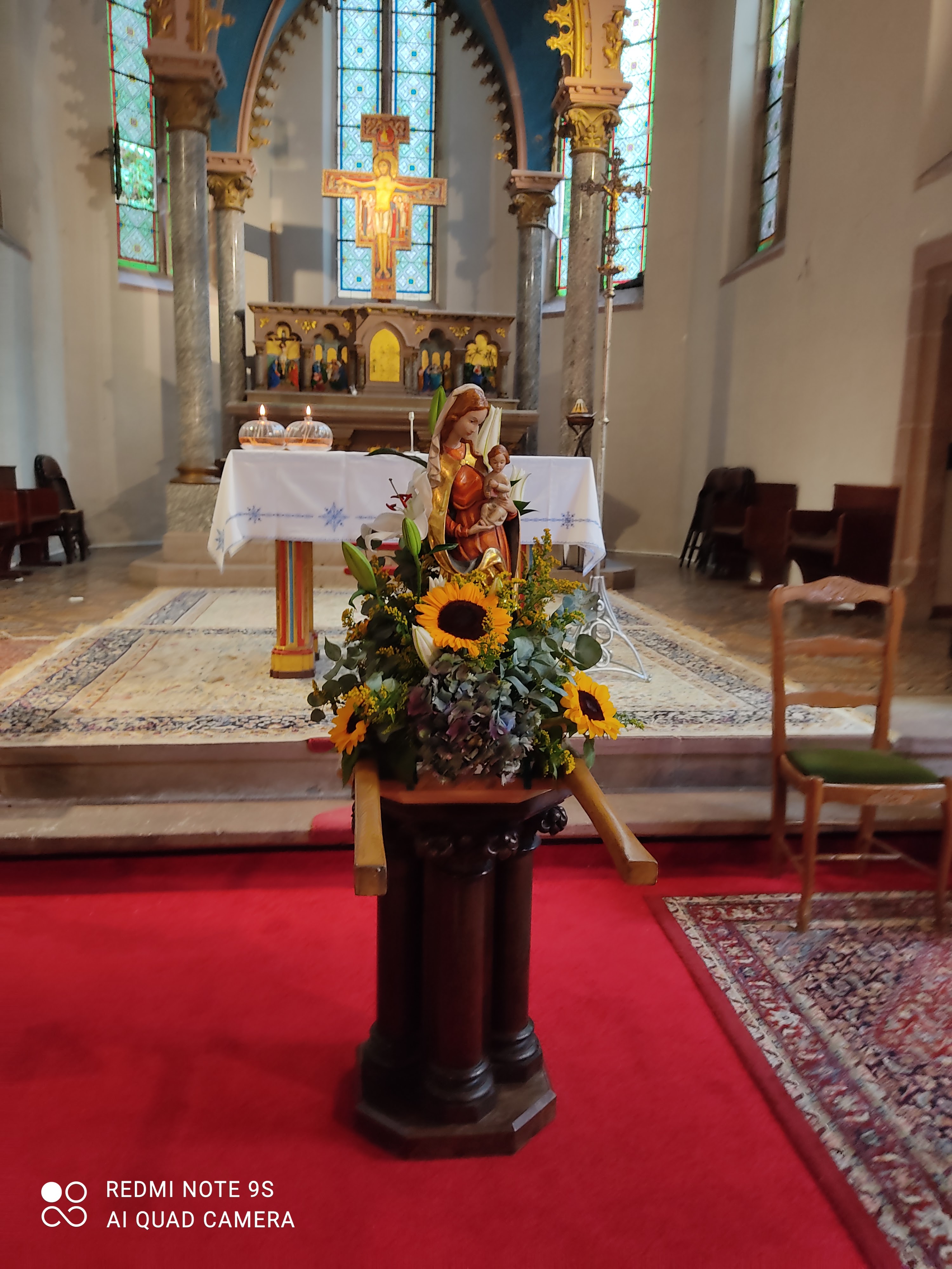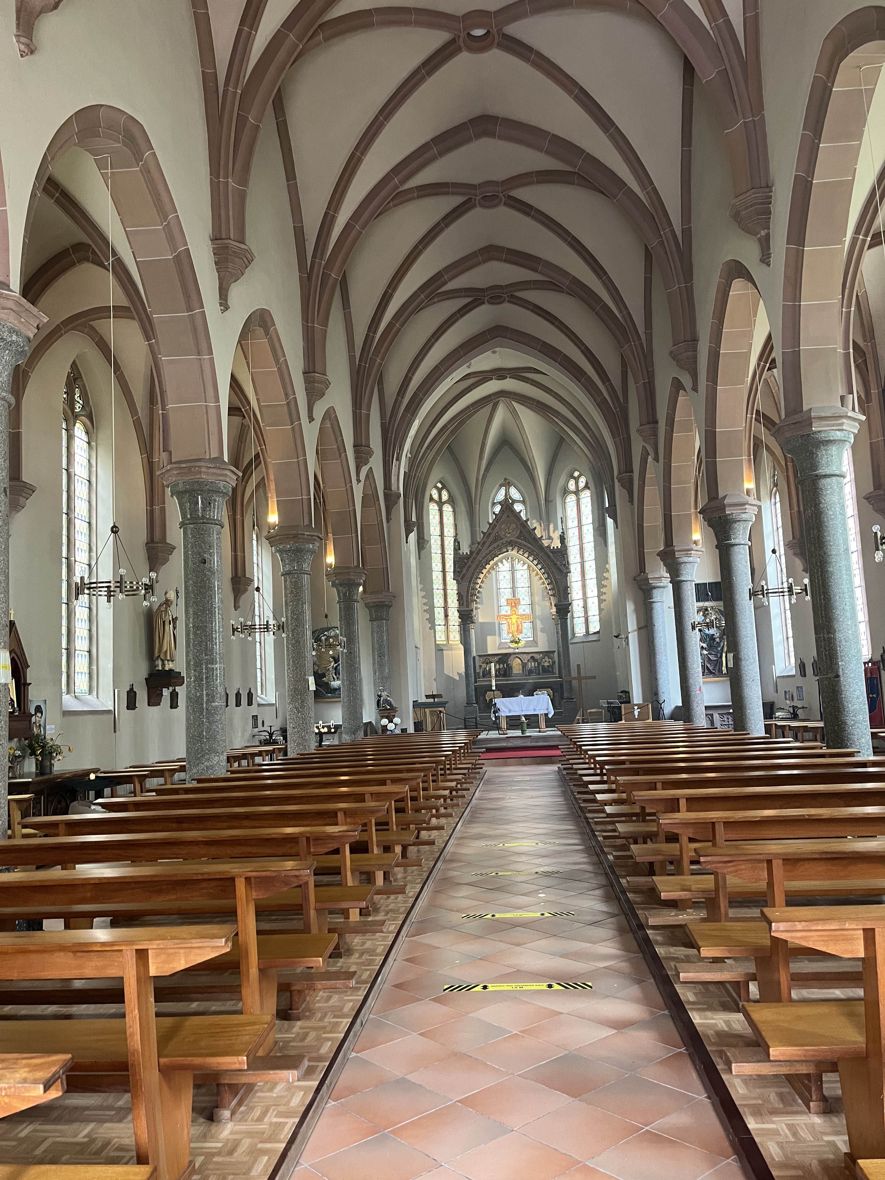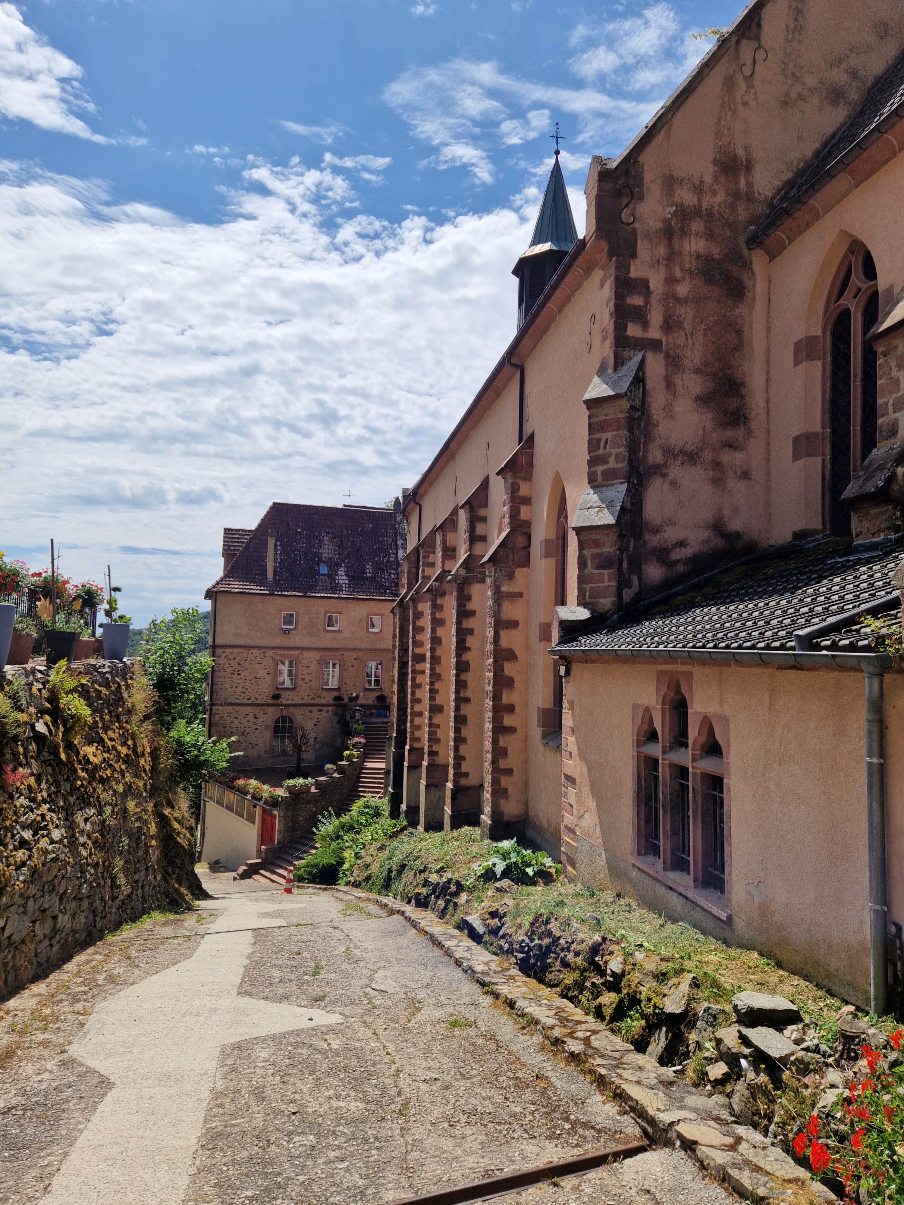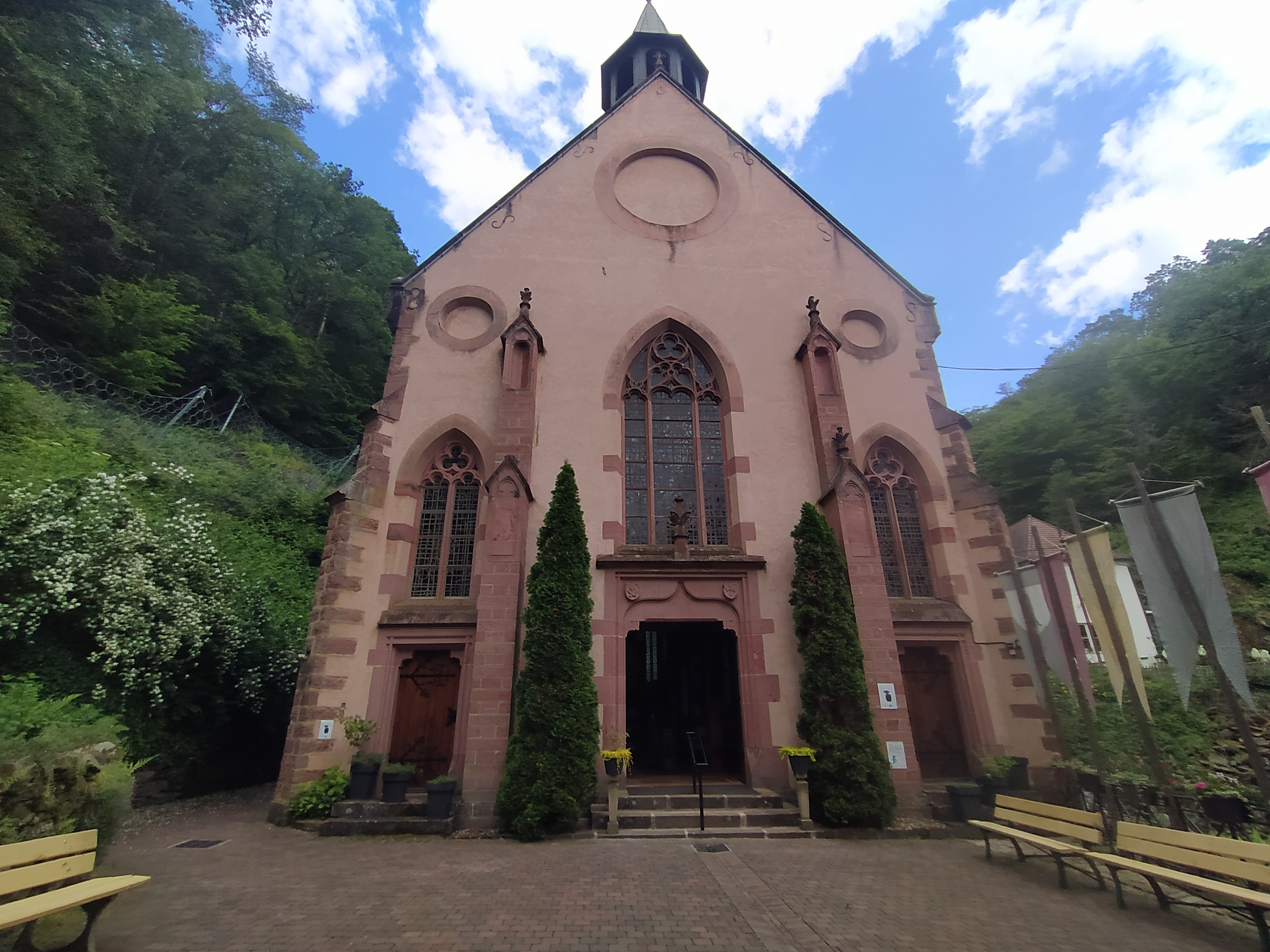 C'était une belle promenade depuis Ribeauville. Il y a environ 2500 mètres à parcourir. Il y a une certaine différence de hauteur, donc c'est une montée. C'est pourquoi il faut environ 40 minutes pour parcourir cette distance. On marche majoritairement à l'ombre et ce jour-là il faisait 30 degrés, mais c'était quand même agréable. L'église est une belle destination d'excursion et il n'y a pas d'entrée. S'il s'agit d'un service religieux, n'oubliez pas d'apporter de l'argent à laisser dans la collecte à l'église. Il y a aussi un petit musée avec des statues de Jésus sur la croix. C'était agréable de lire à ce sujet. Quand j'étais là-bas, du 5 au 18 août, la cafétéria était fermée.