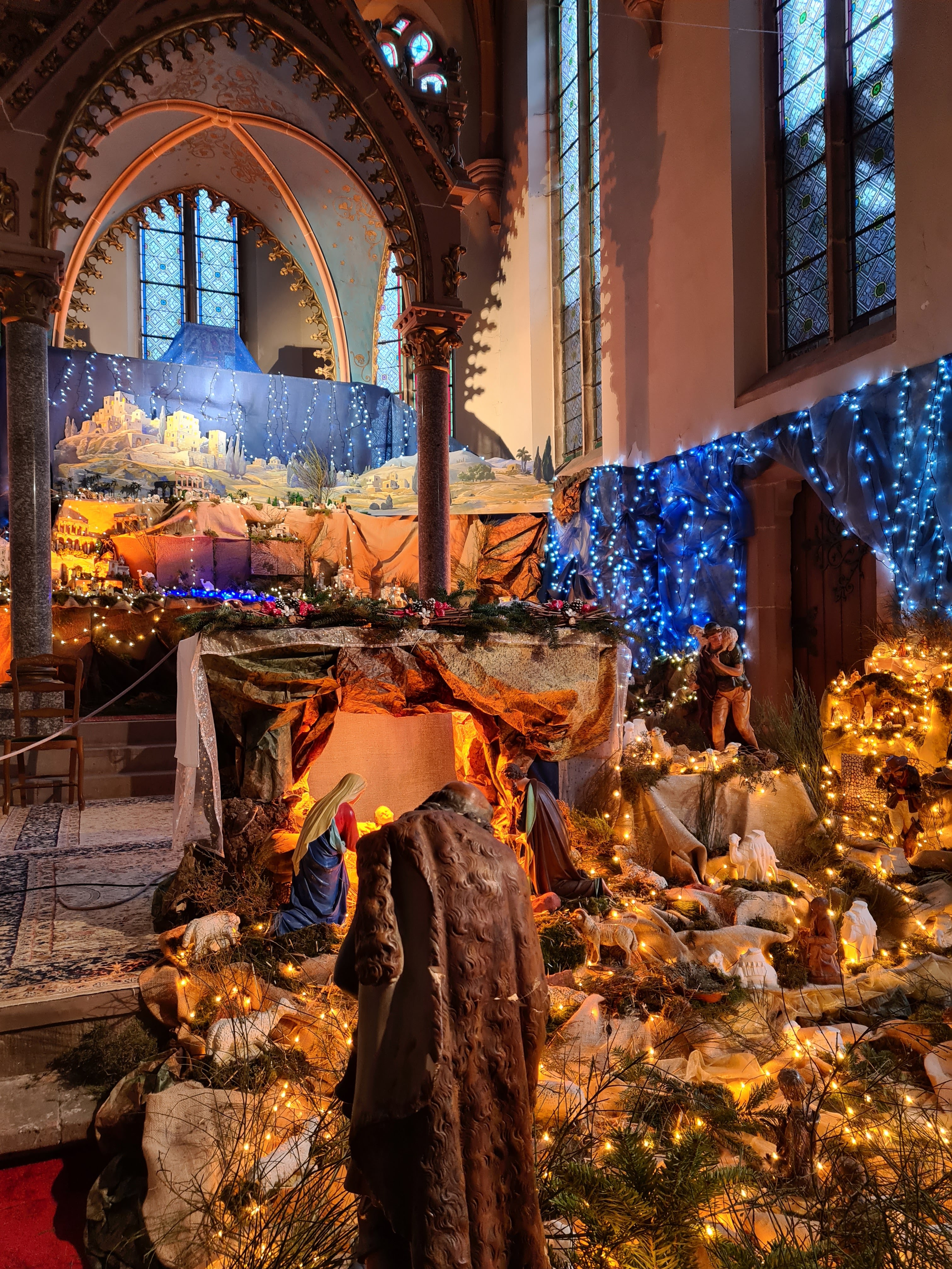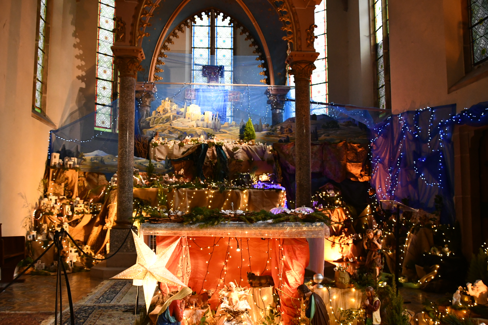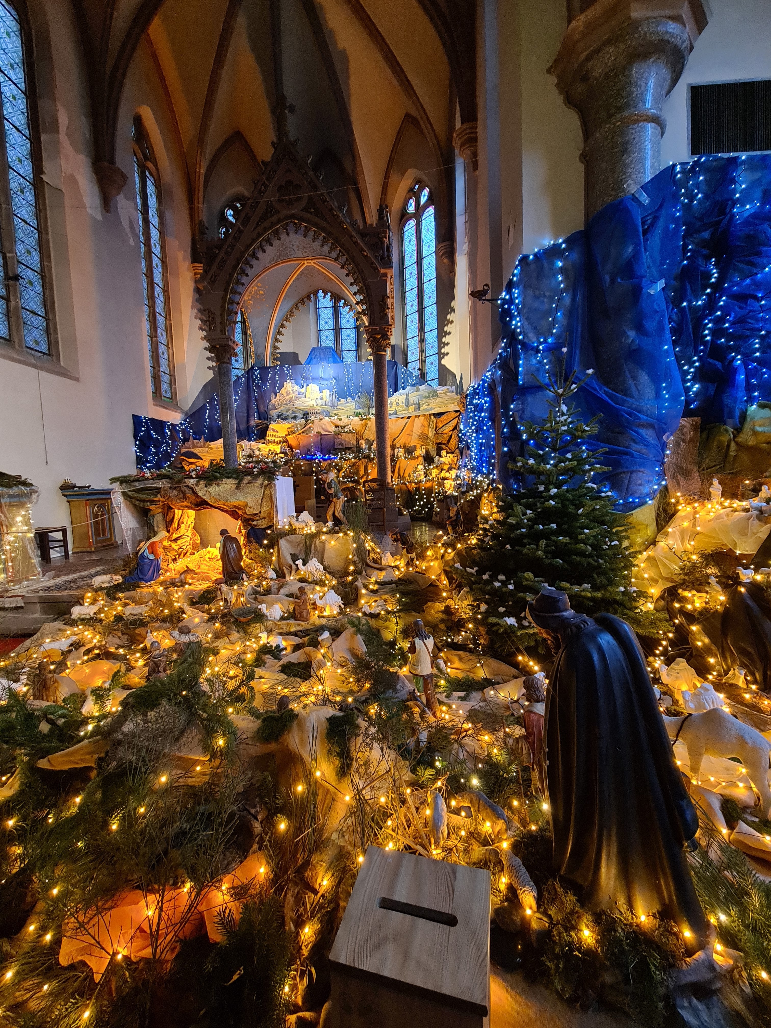 Pour les randonneurs en partant de ribeauvillé vers le premier château Girsberg et ensuite vers le château de Saint_Ulrich et la descente vers Notre Dame de Dusenbach. Magnifique crèche de Noël.
