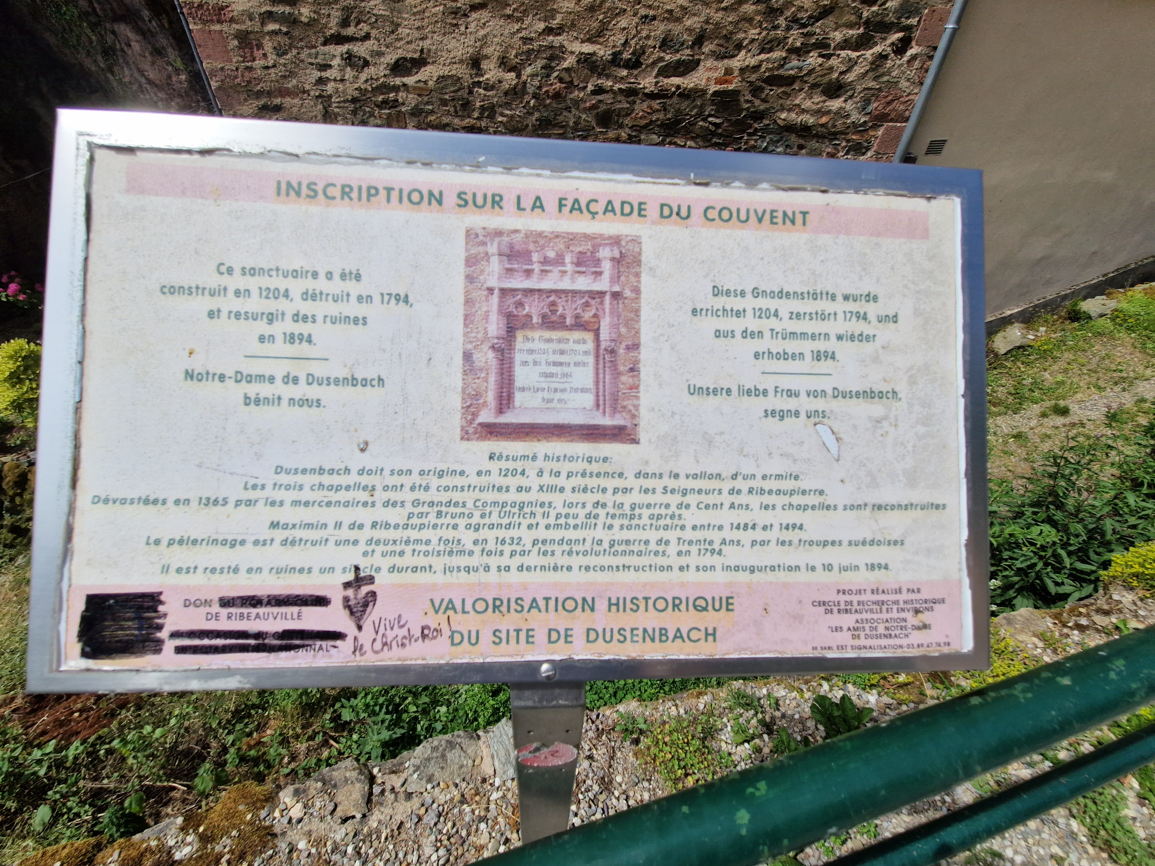 Je suis allé marcher dans ce coin . Le but c'était la visite des trois châteaux et en y allant j'ai une belle surprise ne connaissant pas cet endroit . Bref je suis monté par le chemin de croix et je suis arrivé sur notre dame de Dusenbach . Vraiment un bel endroit à visiter . Belle rando . 😁