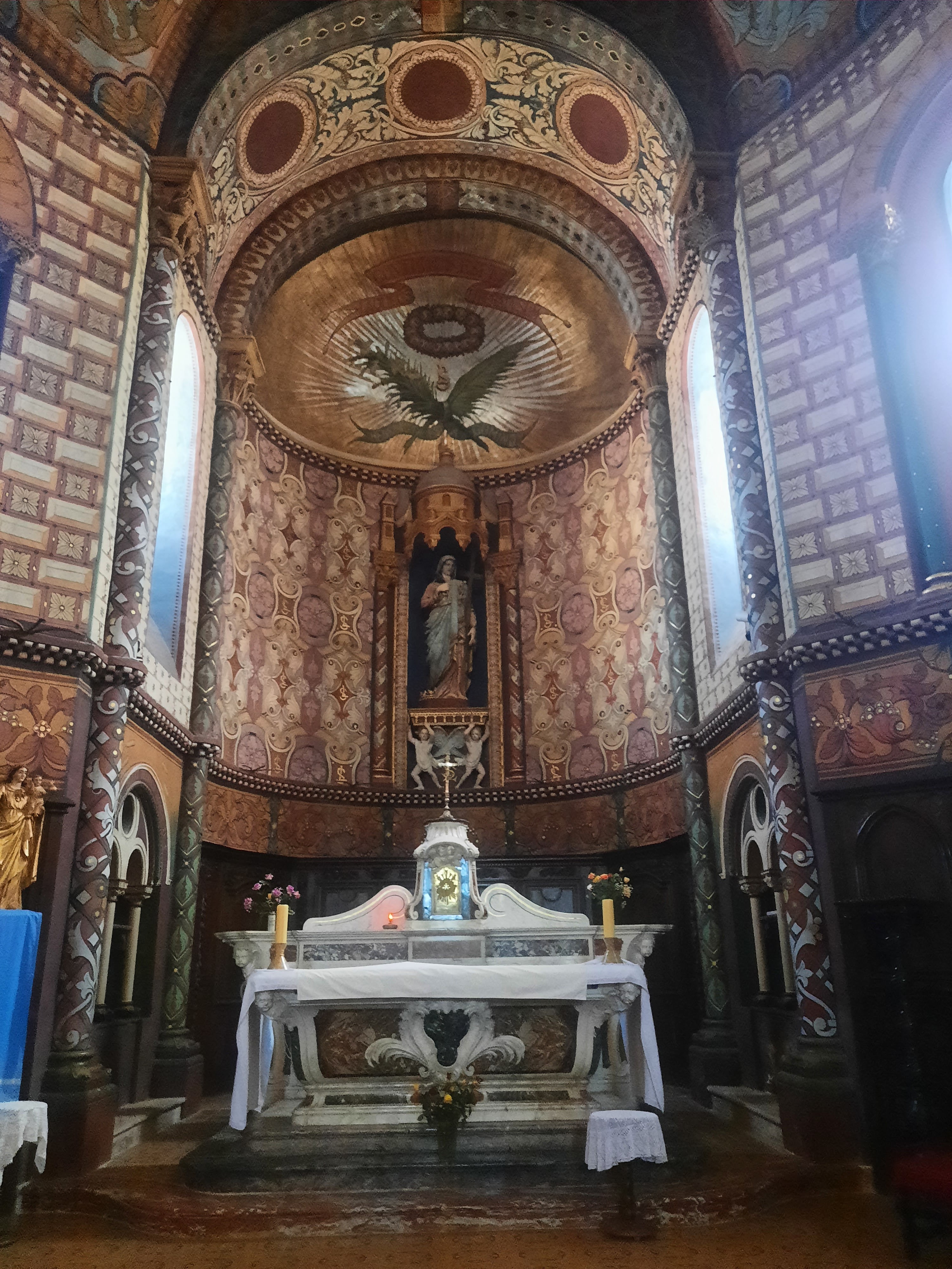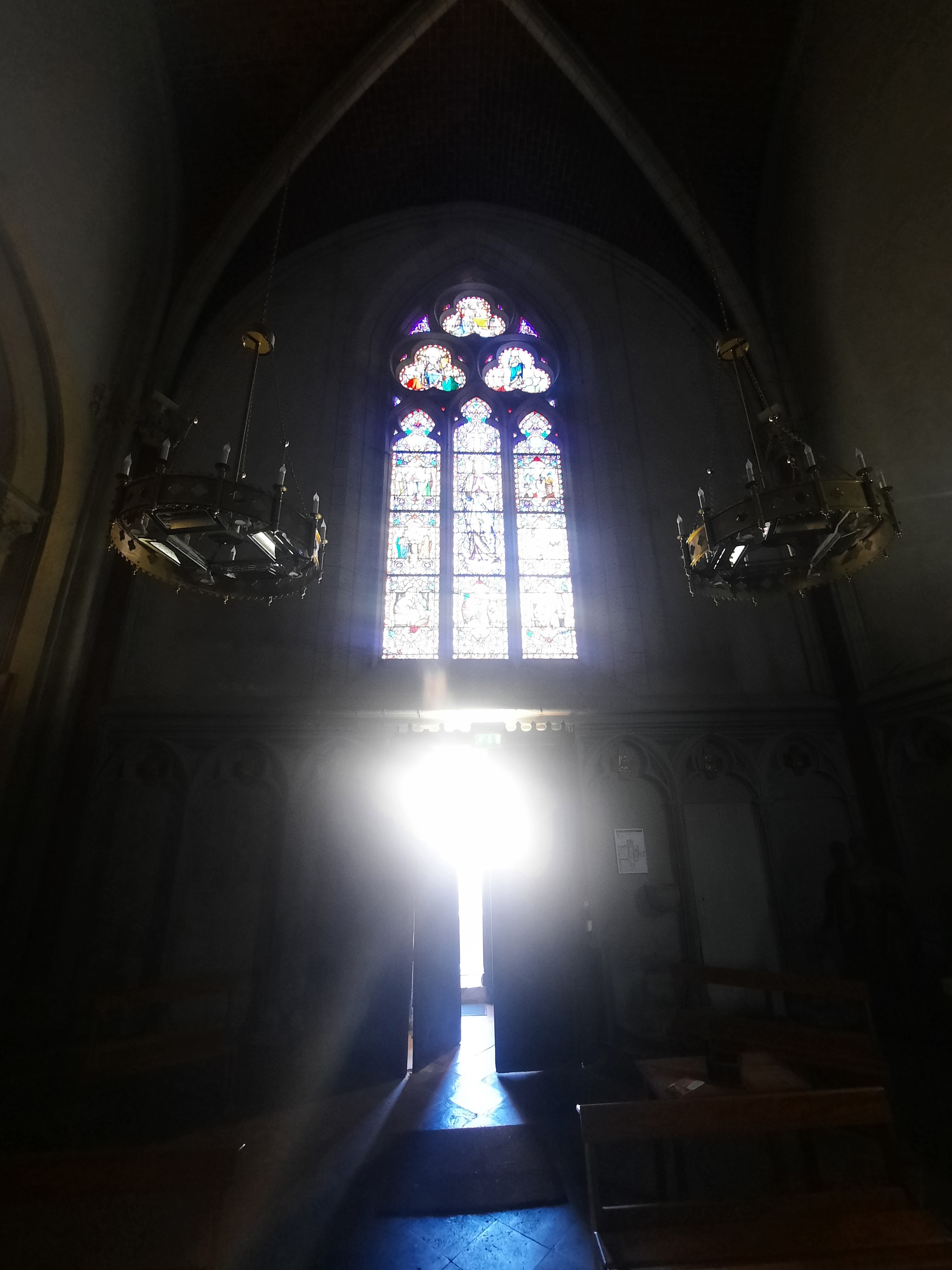 Eglise et presbytère se confondent. Le côté gauche est assez authentique mais petit. Le côté droit, séparé par deux portes, est une pièce et une église plus grande, mais très nue. Quelques canapés mais rien d'autre sur les murs. Un beau vitrail.