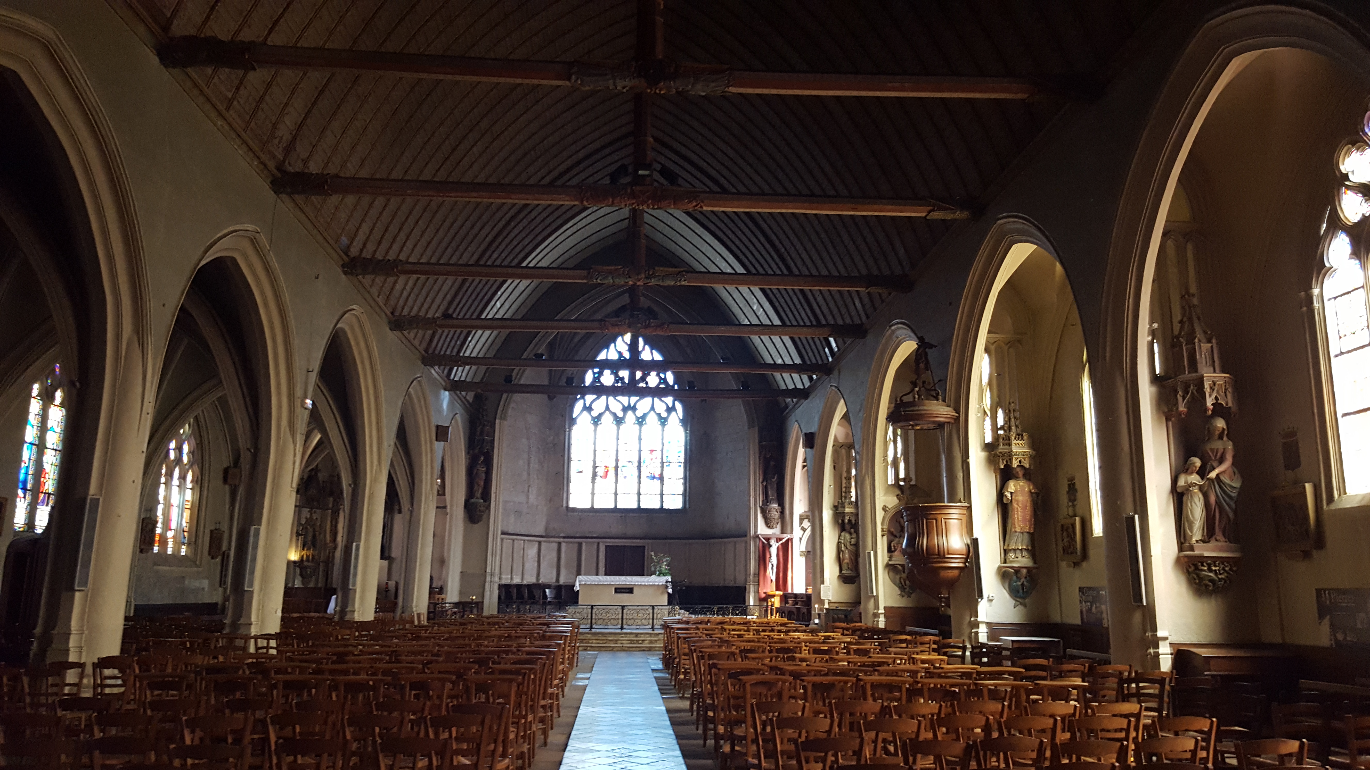 Belle église. Plafond et poutres à voir.