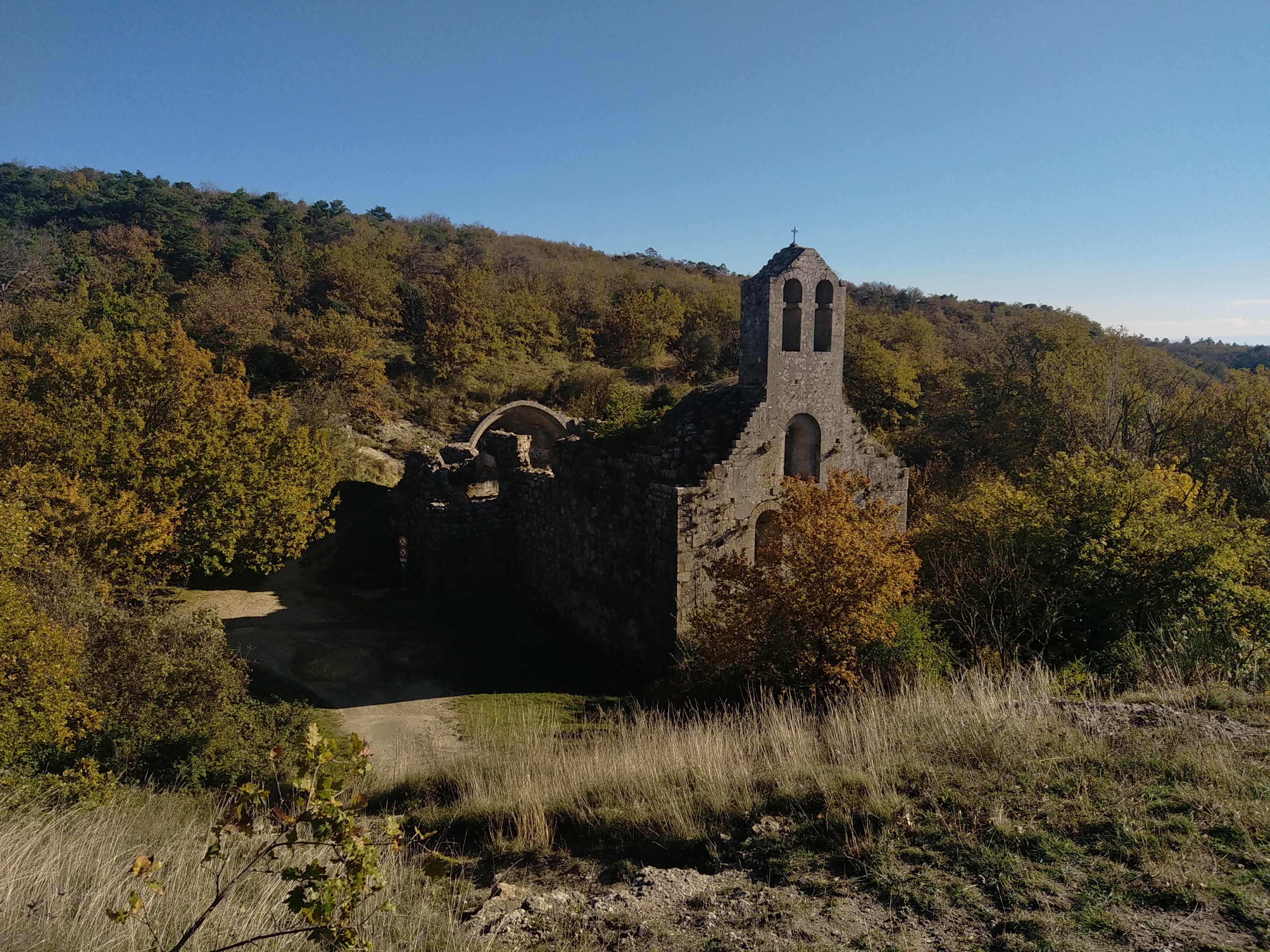 Église abandonnée au milieu des maquis, le mistral souffle et on peut entendre des fantômes si on tend l'oreille (ils attaquent les arènes PGo). Très belle vue via l'autre route attention à la circulation.