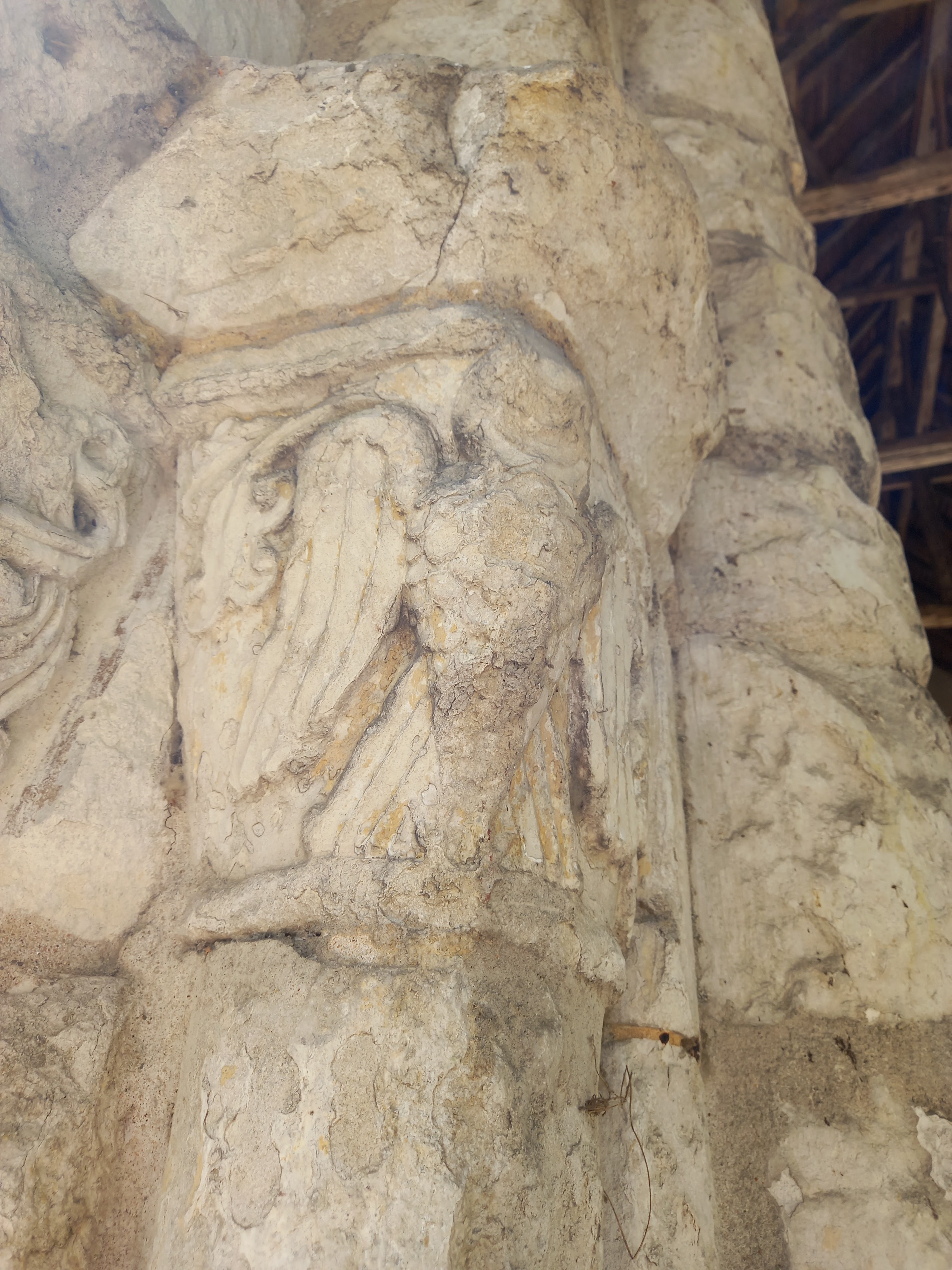 Magnifique édifice où l'on peut voir encore de nombreux détails en façade et la charpente apparente