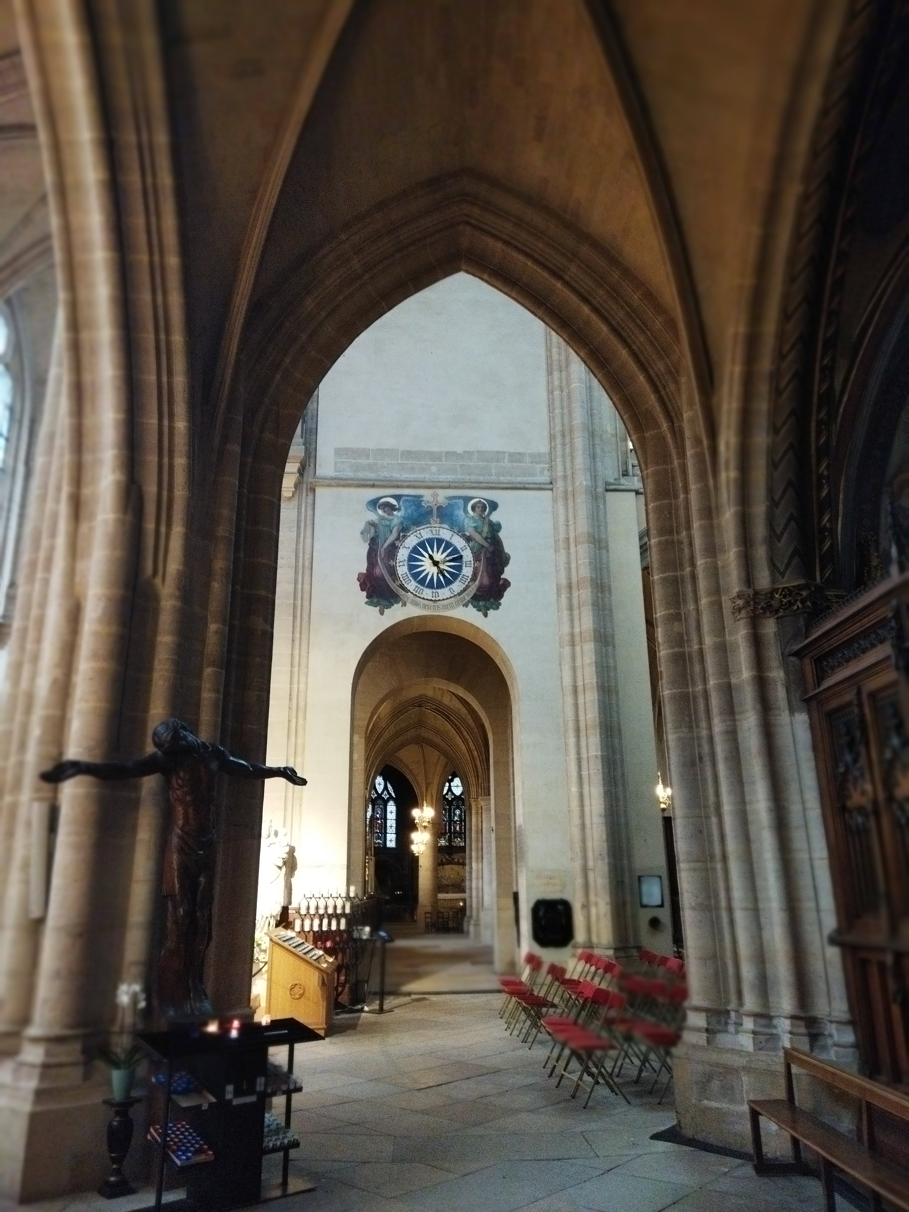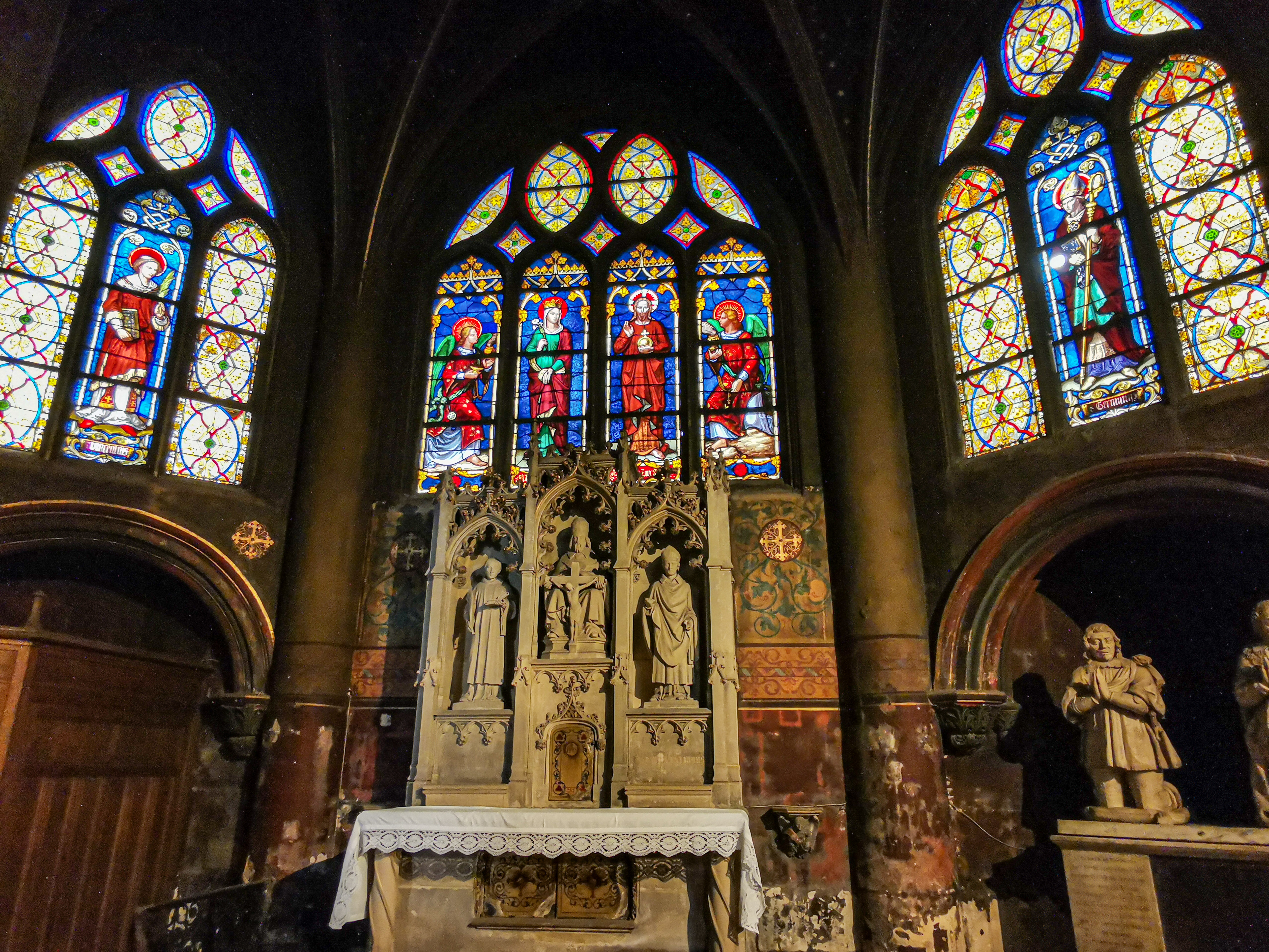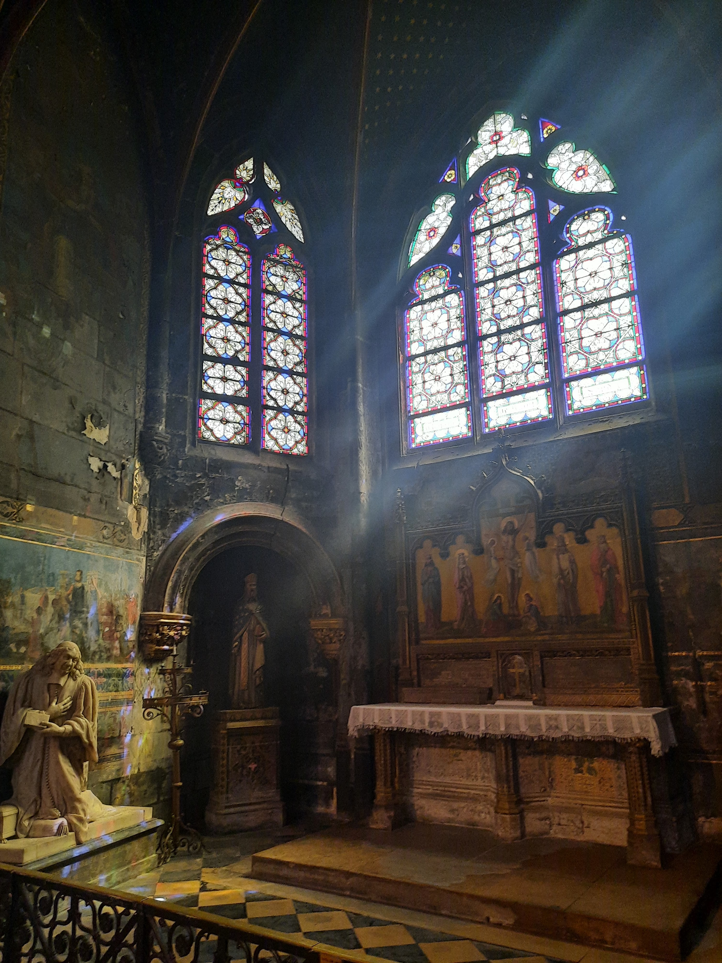 Au fond de cette ancienne église, des traces du passé lointain de Paris, et une atmosphère mystérieuse dans les alcôves dédiées à la prière et au recueillement.