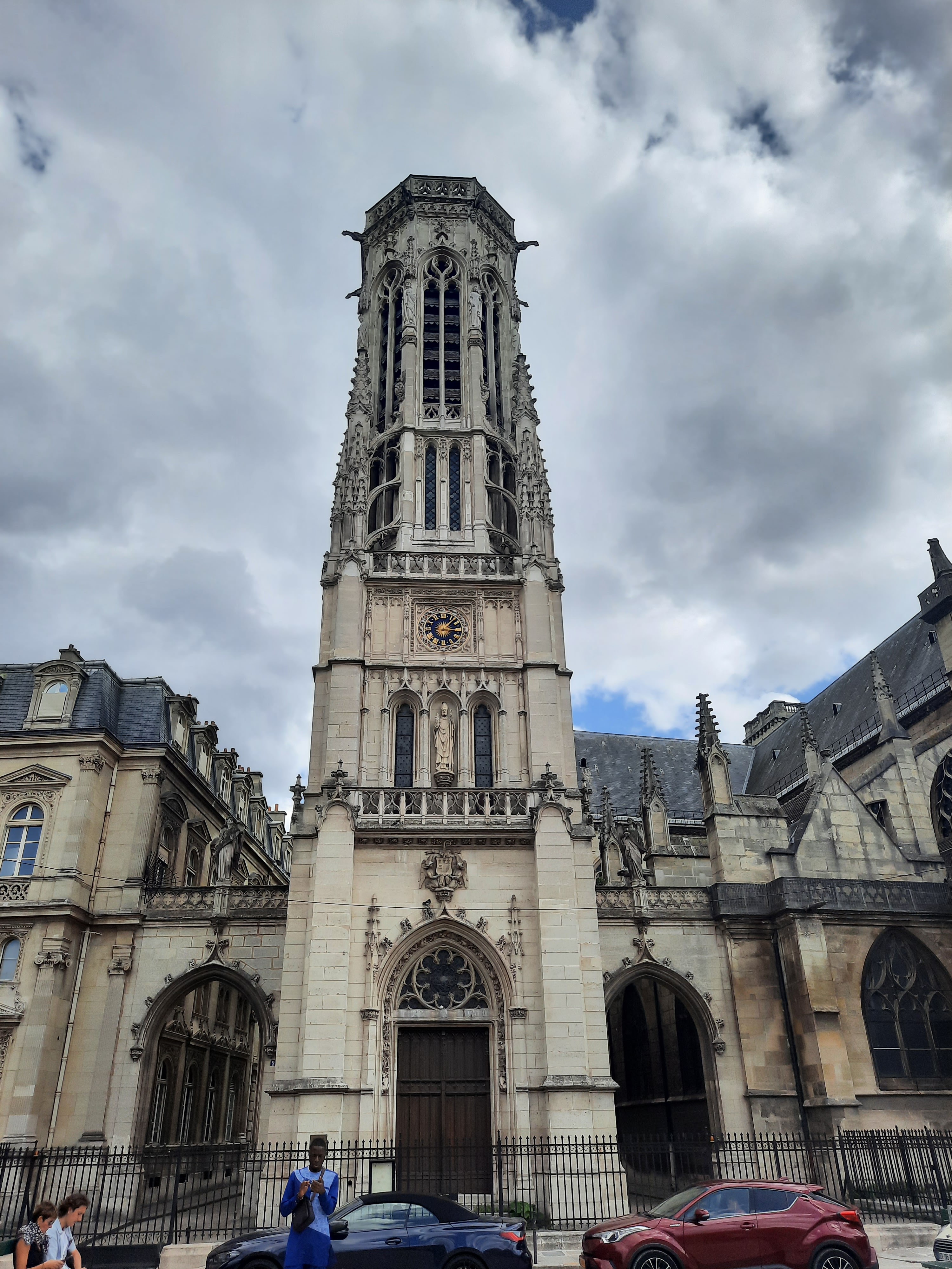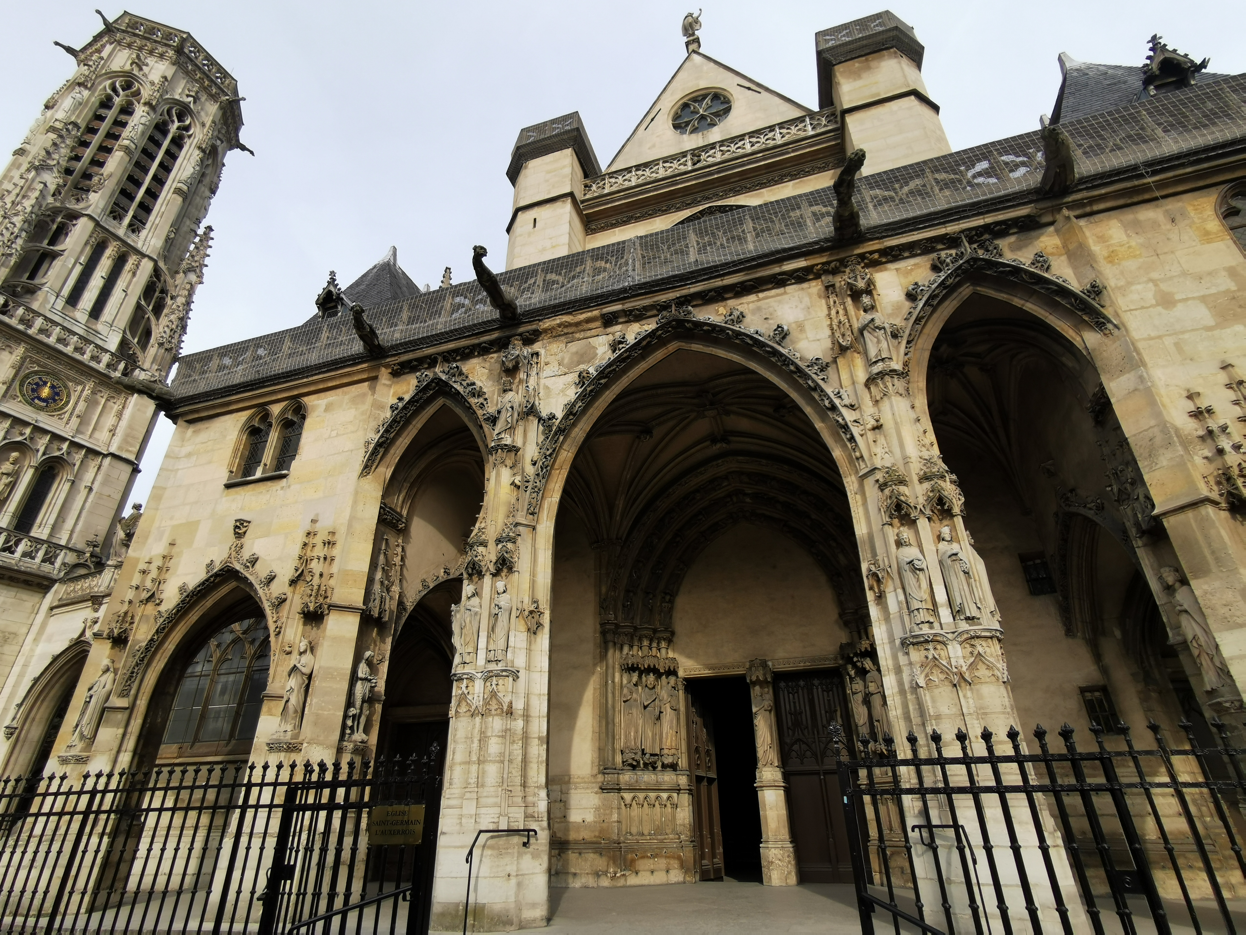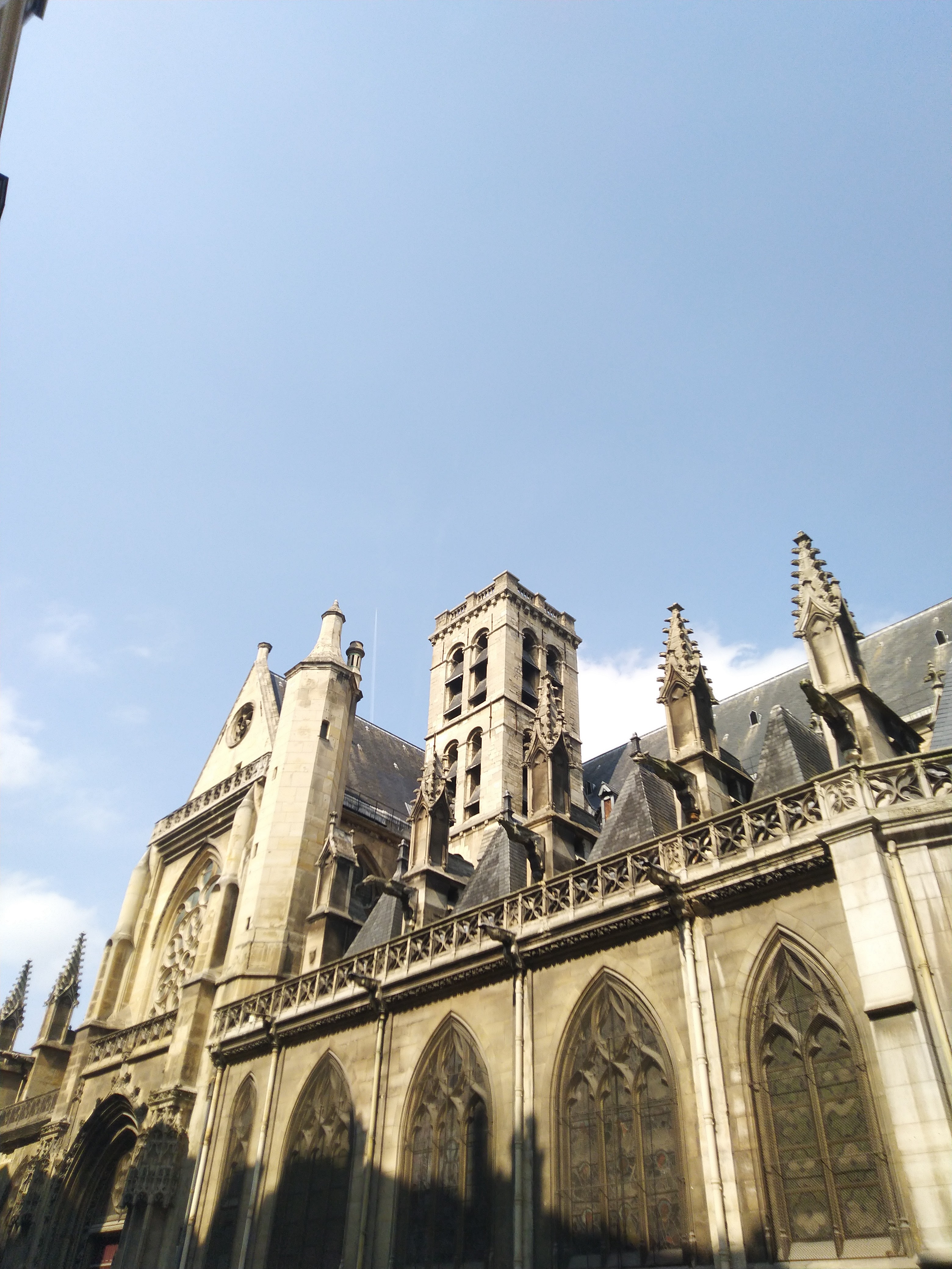 Eglise catholique gothique flamboyant nef de près de 20 m de hauteur etc... avec une tour de style roman. un beffroi. un style baroque .cette église est située place du Louvre dans l alignement du Musée du Louvre côté sud est .