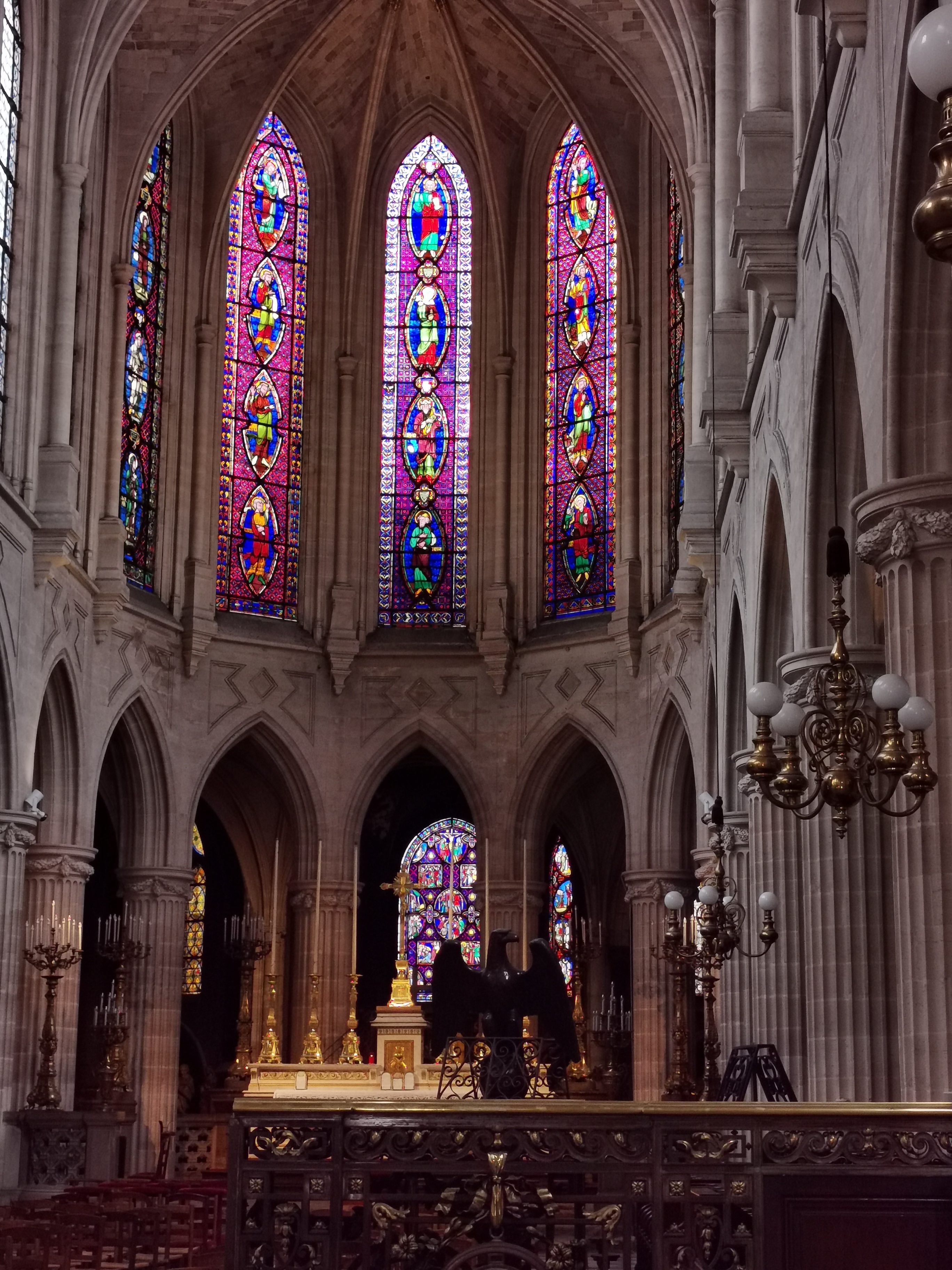 Somptueux vitraux, magnifique chœur, voûtes, et gargouilles..